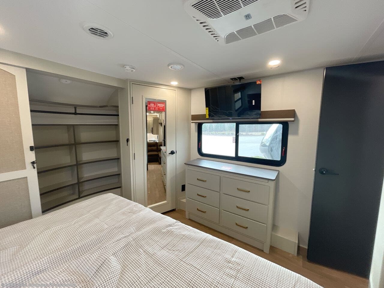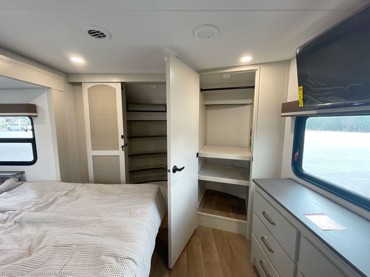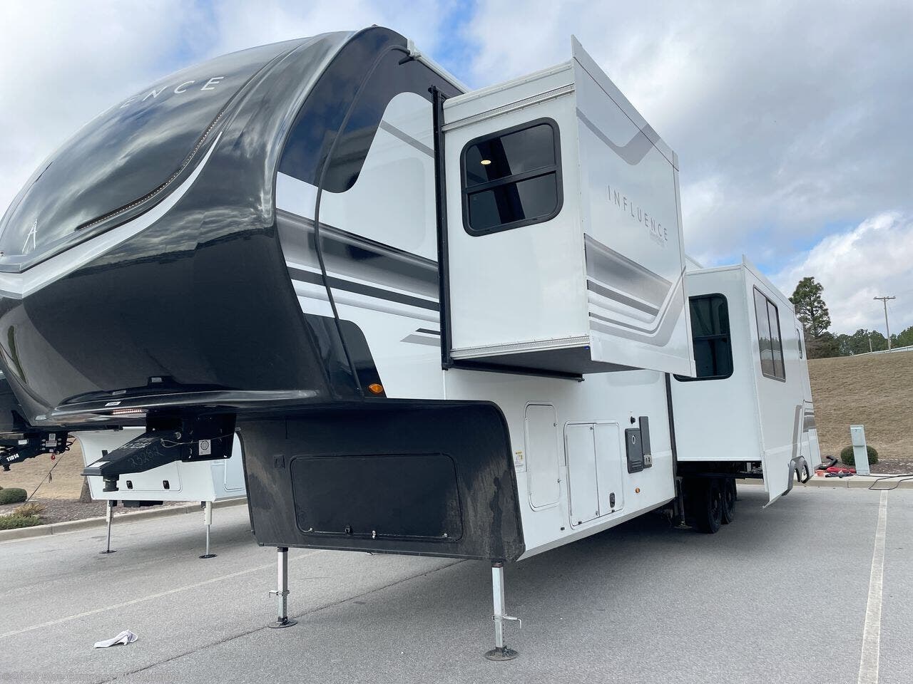 Any Grand Design Influence fifth wheel features five-sided aluminum cage construction with a walk-on roof and a fully enclosed underbelly with heated tanks and storage for all weather camping. For peace of mind, the MORryde CRE3000 Suspension system will provide safe and smooth towing, and the 101" widebody construction offers all the room you need and that is before multiple slides are fully engaged. You will appreciate the Keyed-Alike locks, slam-latch baggage doors with magnetic door catches, exterior security light, and SolidStep entry steps. On the inside, Congoleum flooring, premium roller shades for privacy, a hallway handrail for safety, and nightstands with USB ports to keep all of your electronics fully charged. You will also love the on demand tankless water heater when showering, plus the added heat and ambiance from an electric fireplace, and so much more!
