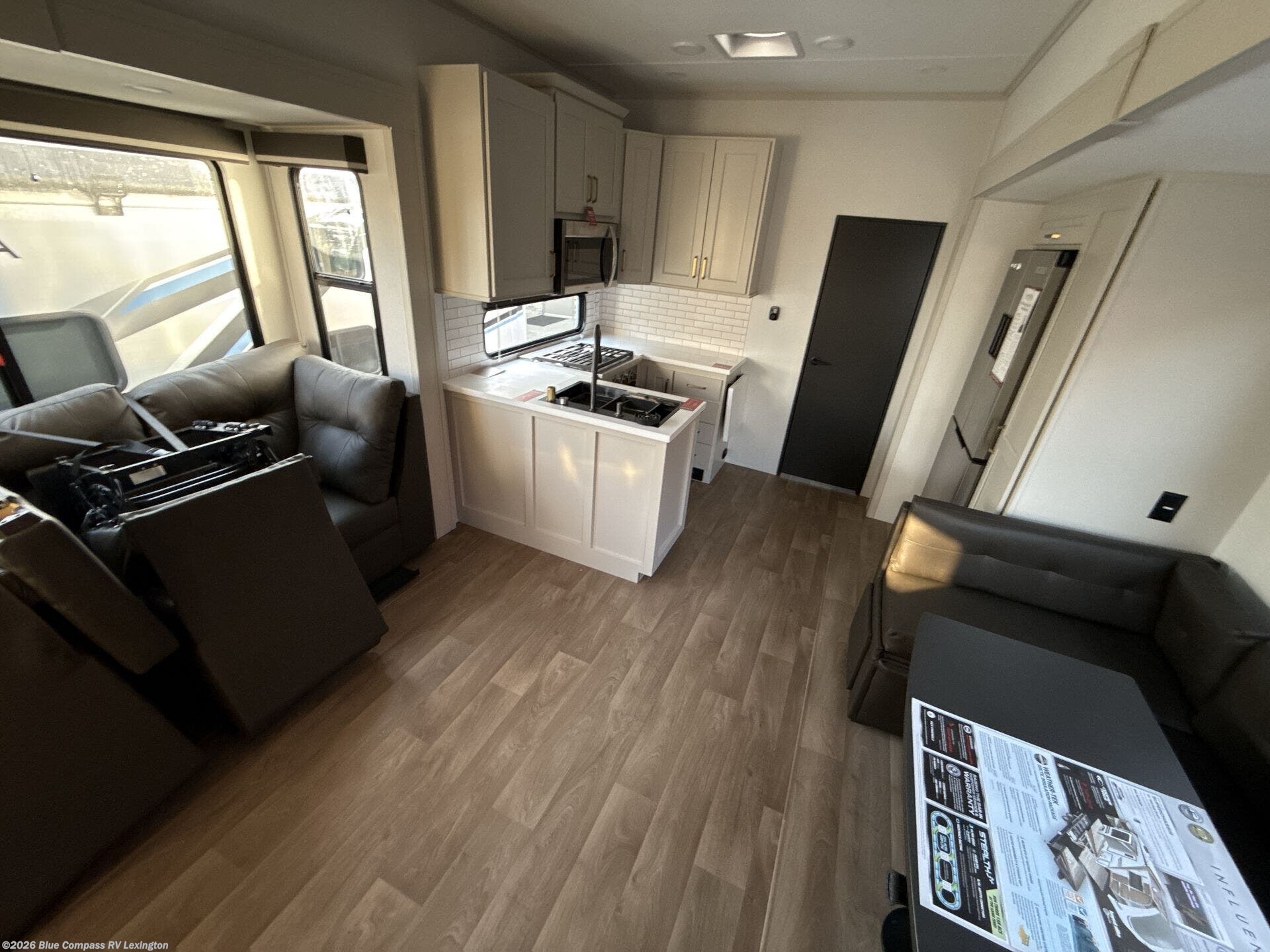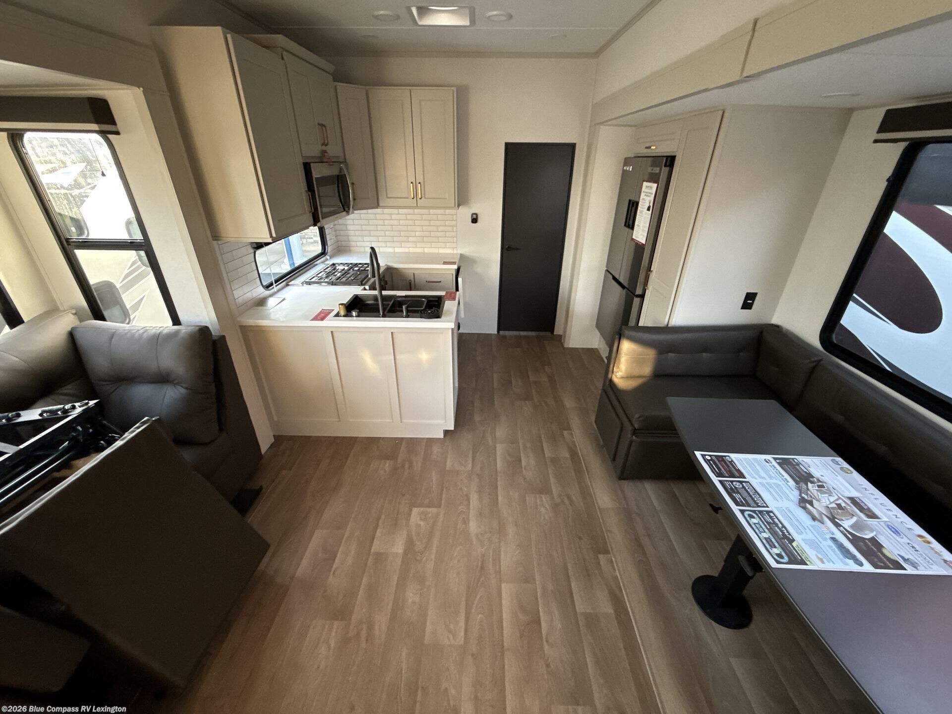 Any Grand Design Influence fifth wheel features five-sided aluminum cage construction with a walk-on roof and a fully enclosed underbelly with heated tanks and storage for all weather camping. For peace of mind, the MORryde CRE3000 Suspension system will provide safe and smooth towing, and the 101" widebody construction offers all the room you need and that is before multiple slides are fully engaged. You will appreciate the Keyed-Alike locks, slam-latch baggage doors with magnetic door catches, exterior security light, and SolidStep entry steps. On the inside, Congoleum flooring, premium roller shades for privacy, a hallway handrail for safety, and nightstands with USB ports to keep all of your electronics fully charged. You will also love the on demand tankless water heater when showering, plus the added heat and ambiance from an electric fireplace, and so much more!