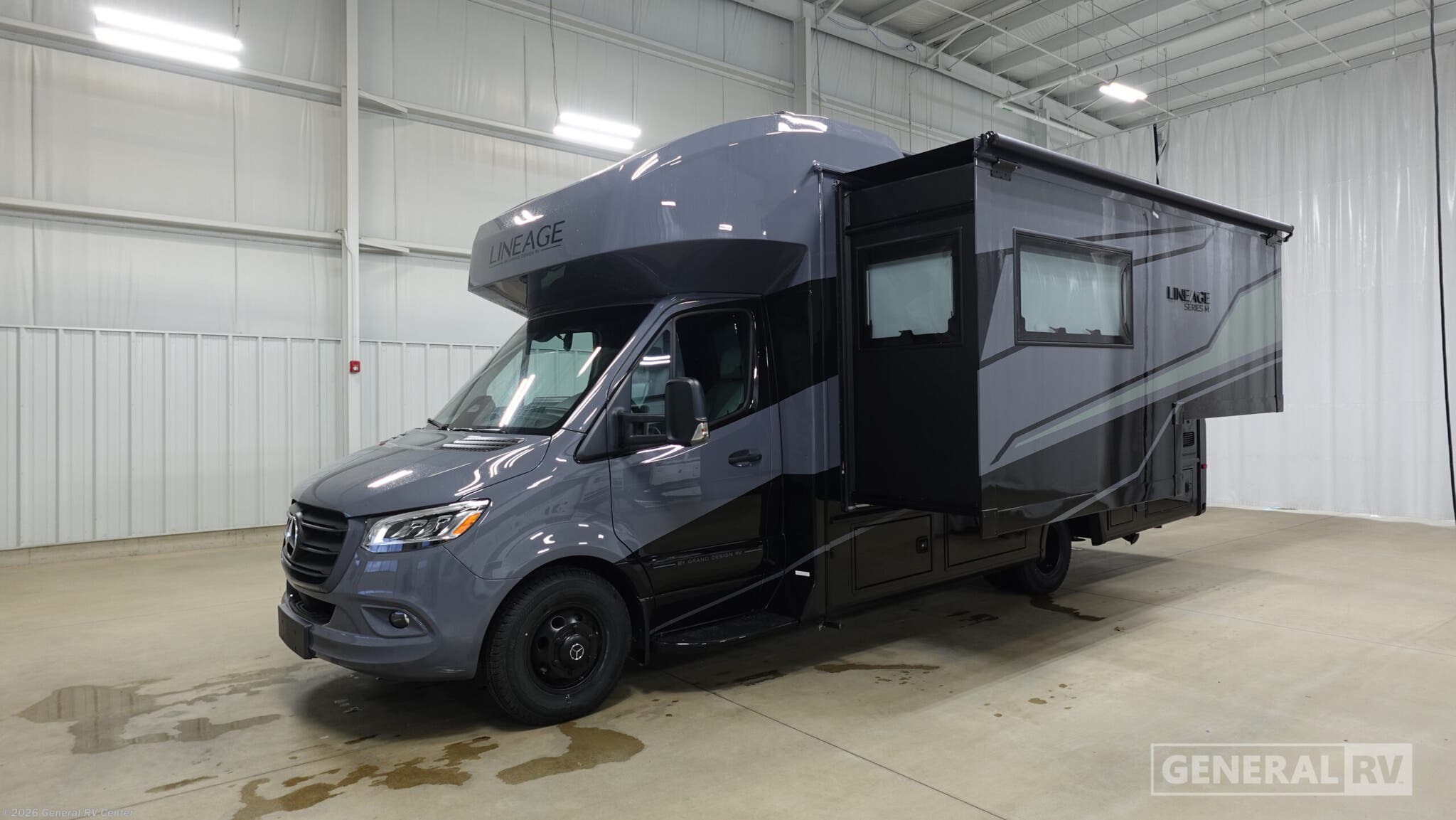 **Grand Design Lineage Series M Class C diesel motorhome 25FW highlights:** - Full-Wall Slide - 16' Awning - Full Bath - Power Theater Seating - Pantry Head to your local state park or across the states in this spacious coach. Once you arrive at your destination, you can prepare a meal with the full kitchen amenities, including a cooktop, microwave oven, and a refrigerator. The power theater seating provides a place to relax, or you can choose the optional booth dinette if you need additional sleeping space. A full bath will let you clean up after a day outdoors, and the 70" x 80" king bed within the full-wall slide is sure to bring comfort. This model also includes a pantry beside the theater seats for snacks and a bedroom wardrobe to keep your clothes wrinkle-free! Grand Design's first motorized coach, the Lineage Series M is coming to you with luxurious features at a great value. This Class C diesel motorhome sits on a Mercedes-Benz sprinter chassis for quality and performance you can trust. True to Grand Design's foundation, the Lineage includes interior comforts, durable construction, innovative features, and attention to detail. The Series M Package includes natural teak wood grain, a Lineage Suspension Package, and more. There is also a Blackout Package with black aluminum wheels, a Chromeout Package with chrome aluminum wheels, plus additional packages to enhance your travel experience!