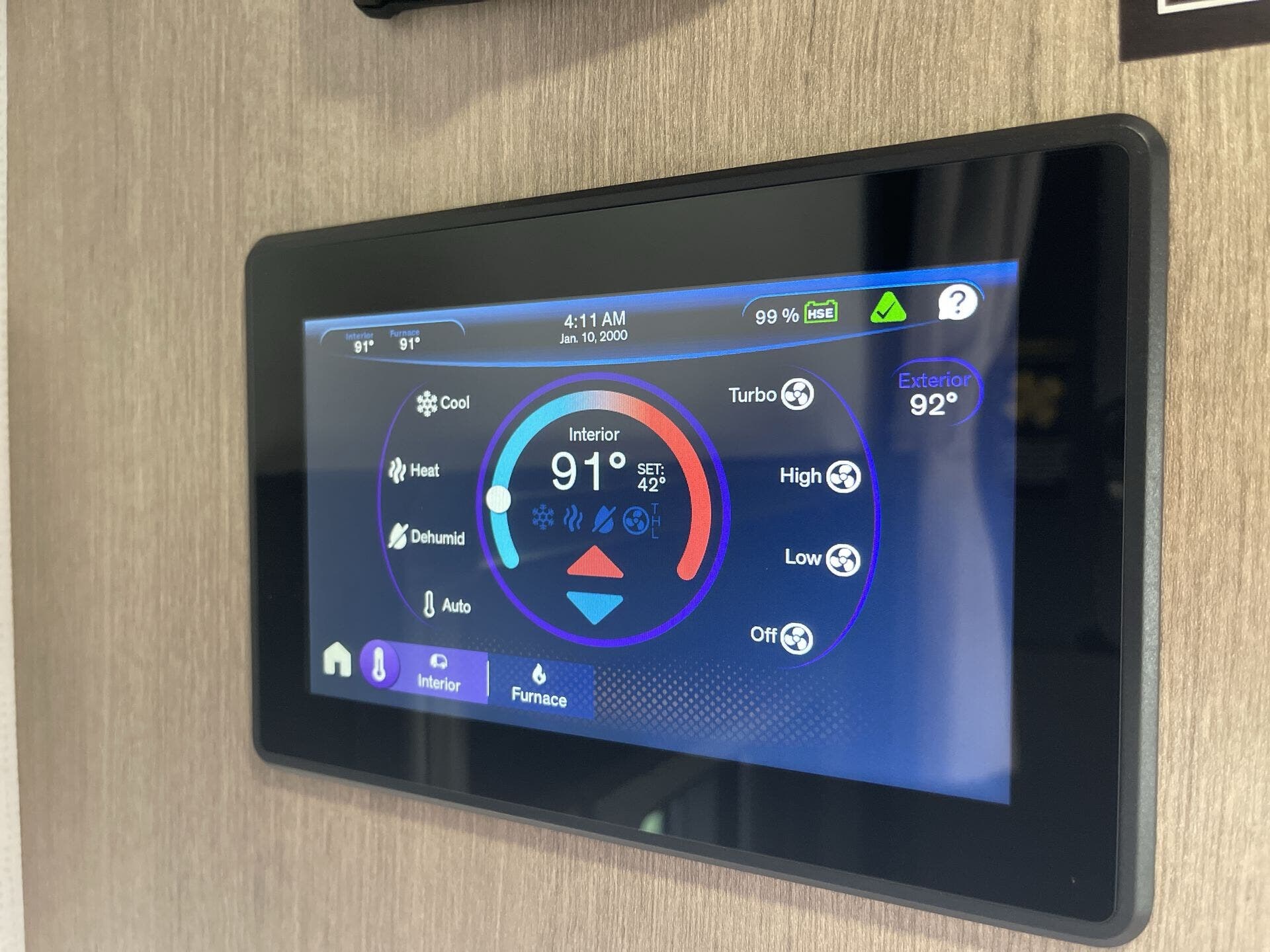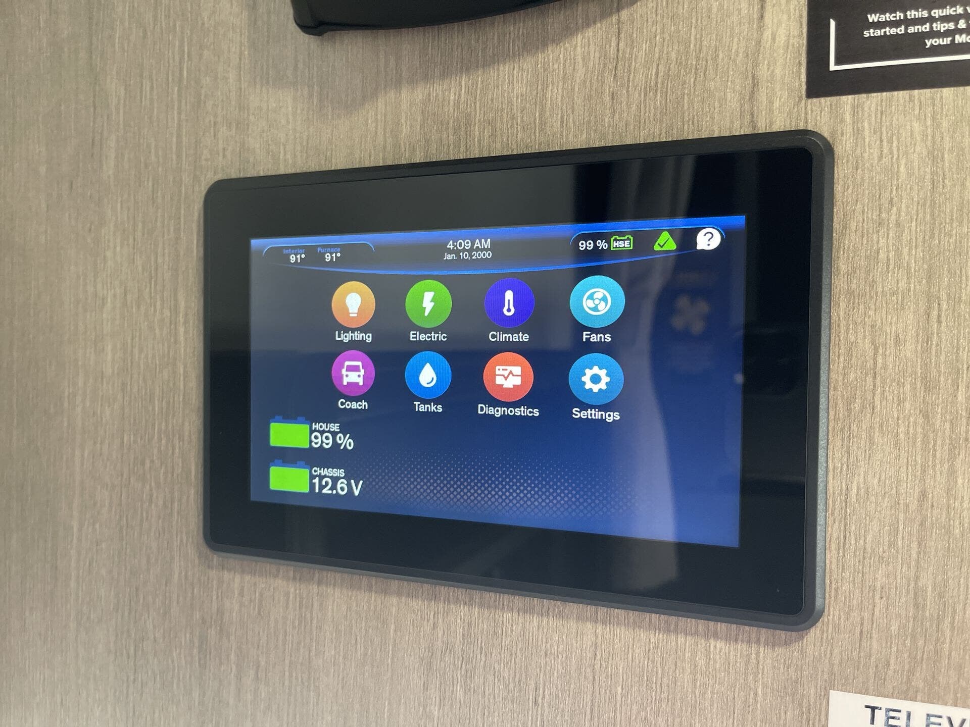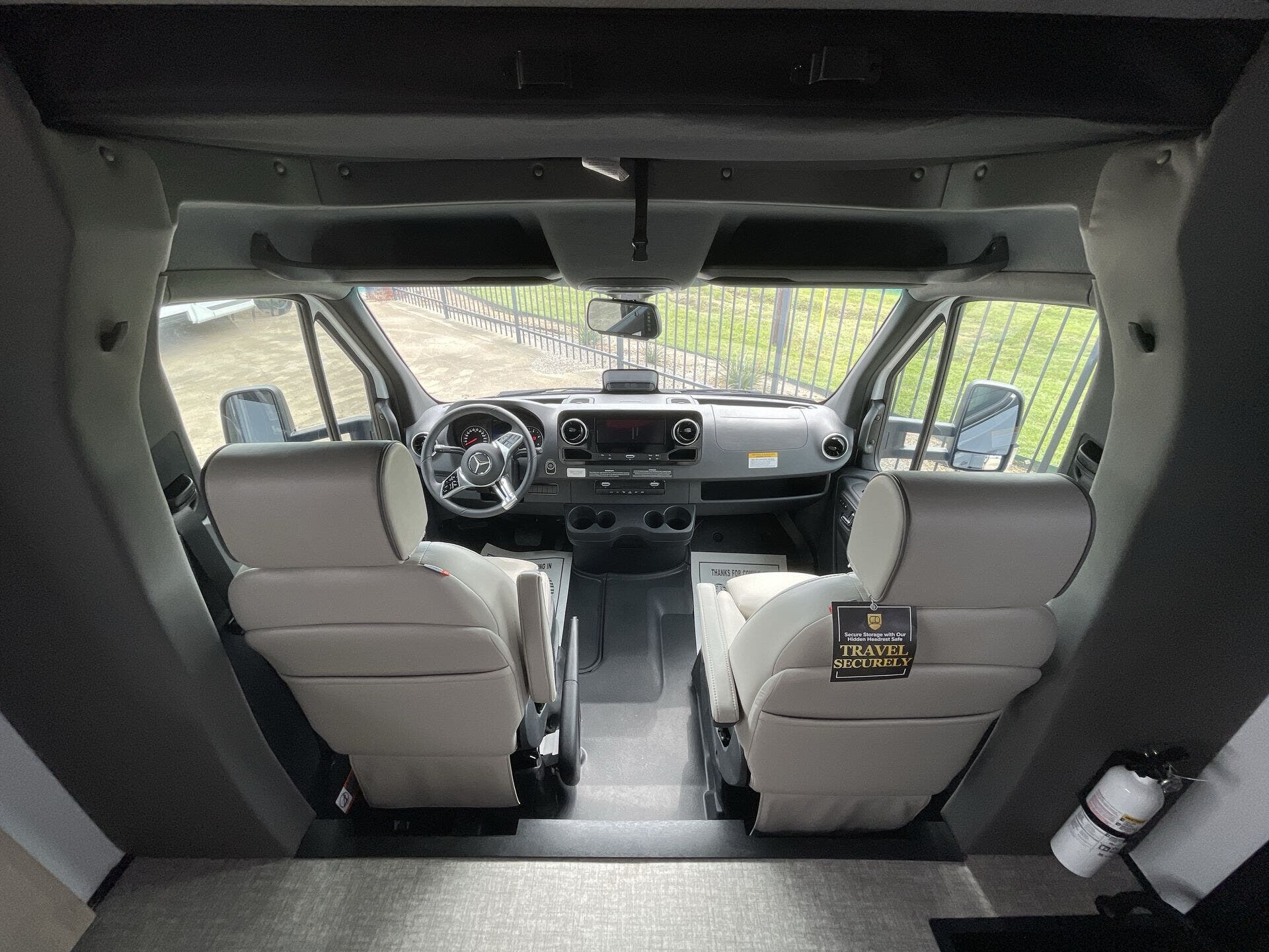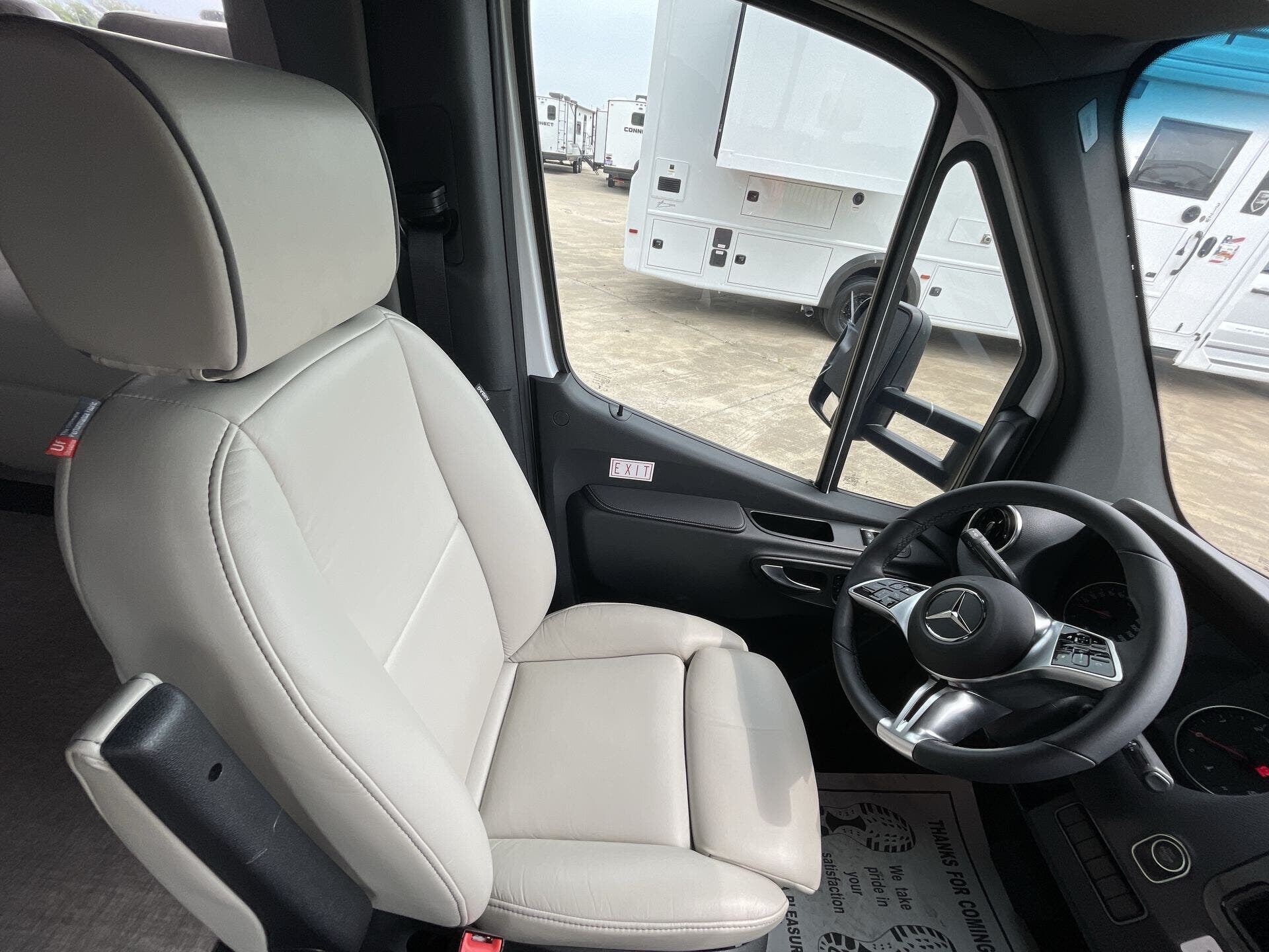 Inside, the Lineage 25TK features a spacious, open-concept layout with a rear kitchen that maximizes counter space and storage. Stainless steel appliances, a deep farmhouse sink, and solid-surface countertops make meal prep a breeze, while the adjacent living area includes theater seating or a tri-fold sofa, a booth dinette, and a full entertainment center for relaxing after a day outdoors. Large panoramic windows flood the interior with natural light, creating a bright and welcoming atmosphere that feels like home.