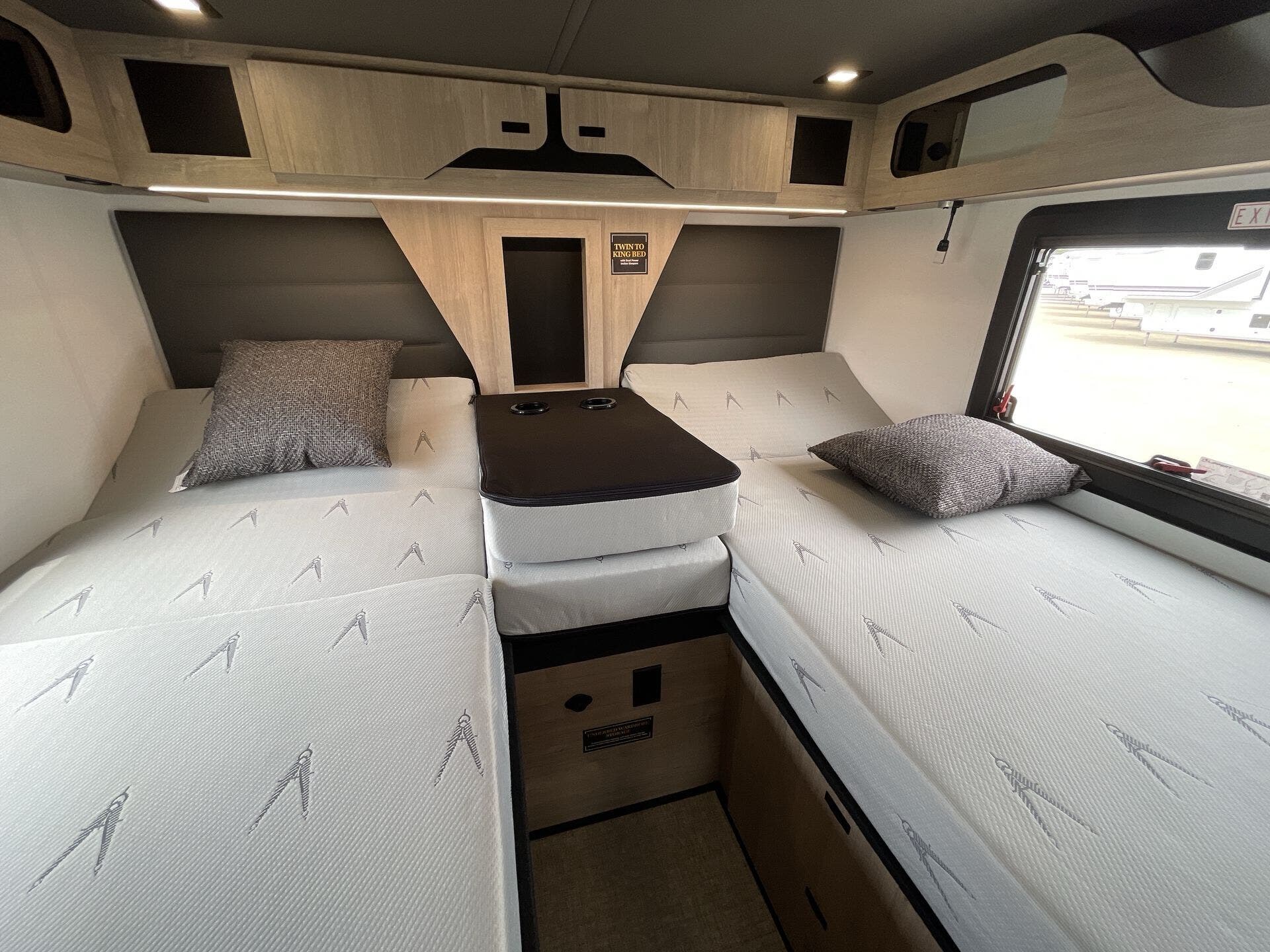 At the front, the private master suite offers a walk-around queen bed with wardrobes and overhead storage, while the bathroom includes a roomy shower, vanity, and linen cabinet for added convenience. Outdoors, you’ll find a power awning with LED lighting, exterior speakers, and pass-through storage for all your gear, plus an optional outdoor kitchen to enhance your camping lifestyle. With its modern design, upscale finishes, and smart layout, the 2026 Grand Design Lineage 25TK is the perfect choice for RVers looking to travel in style and comfort.