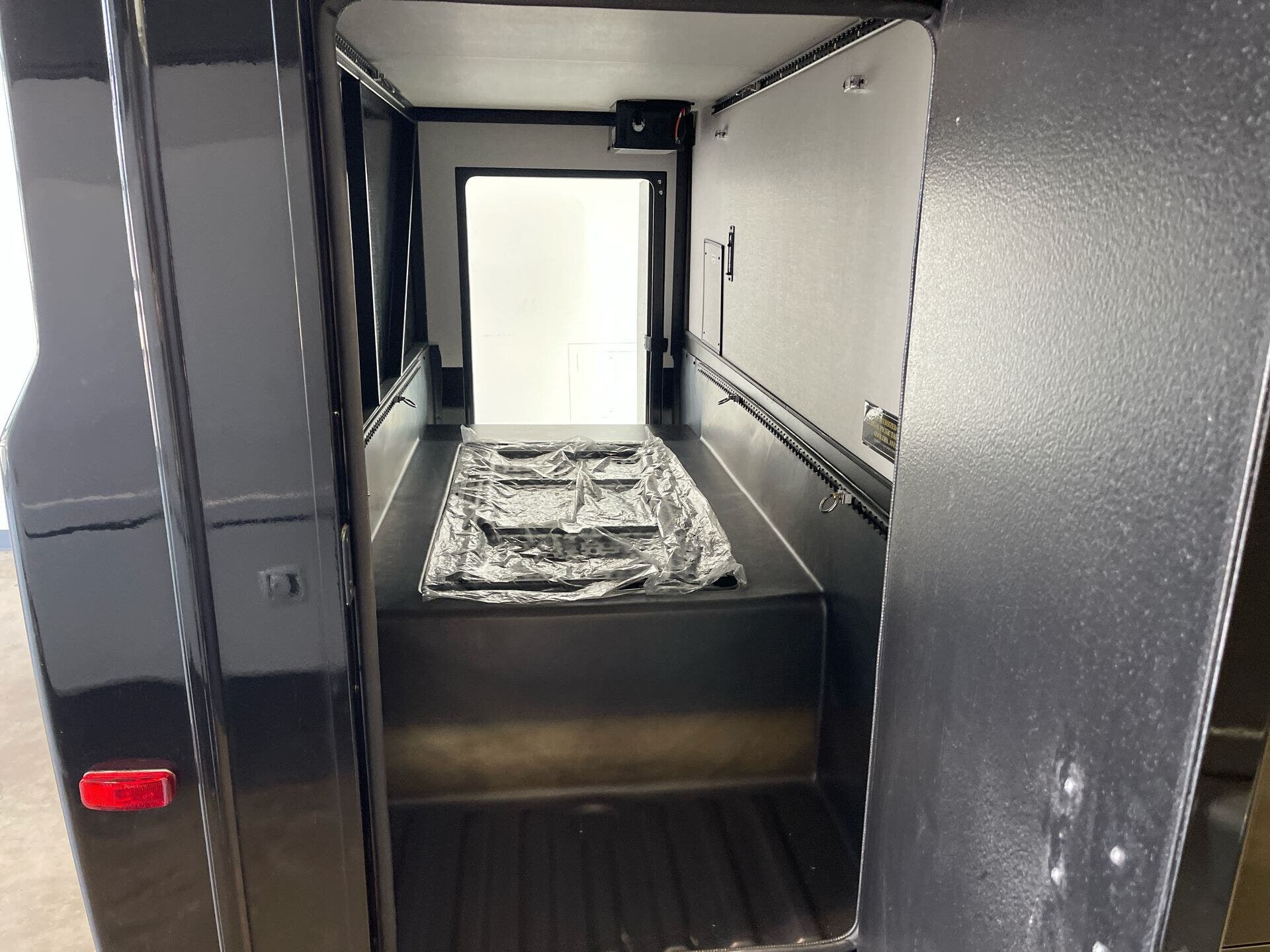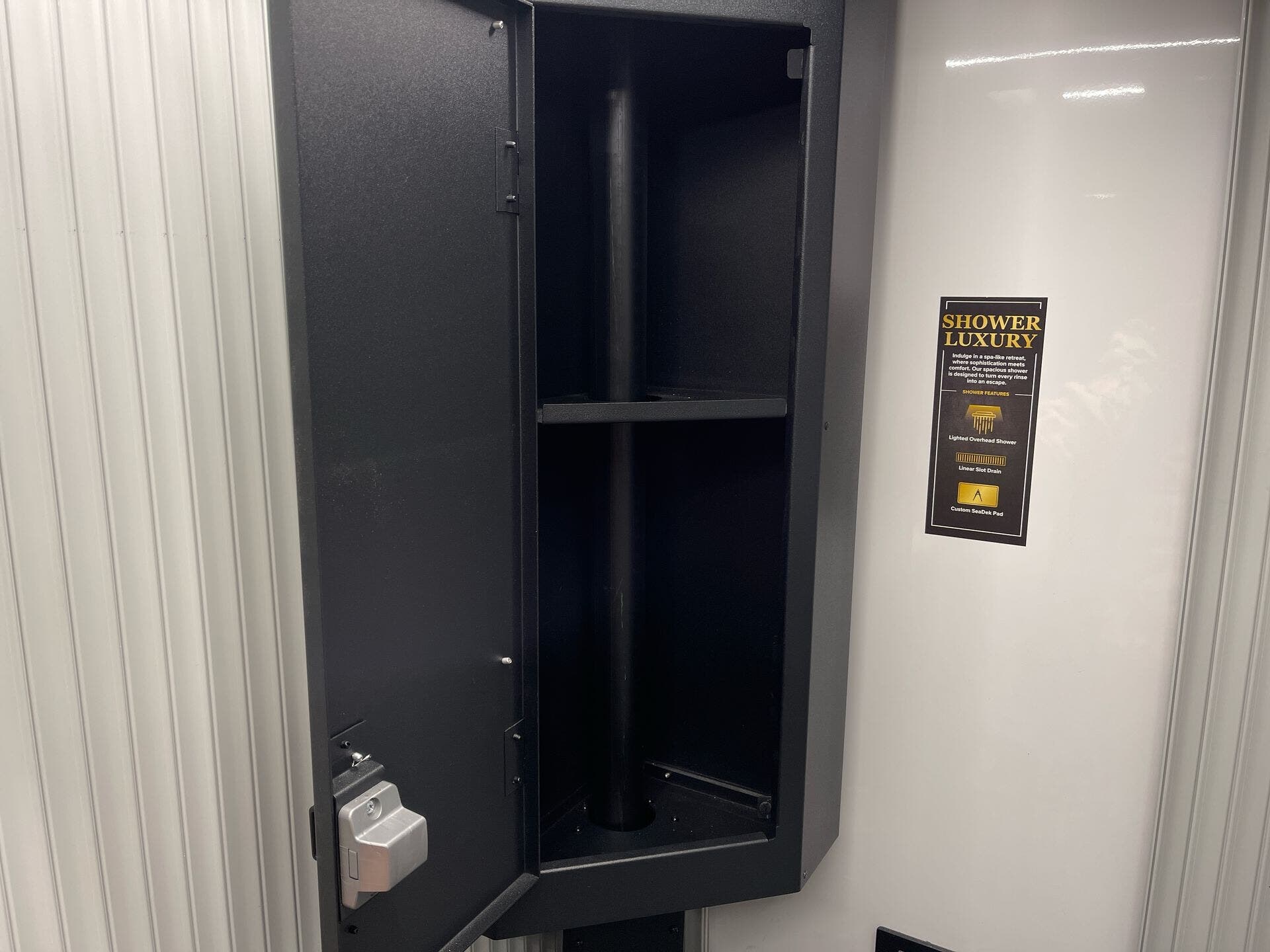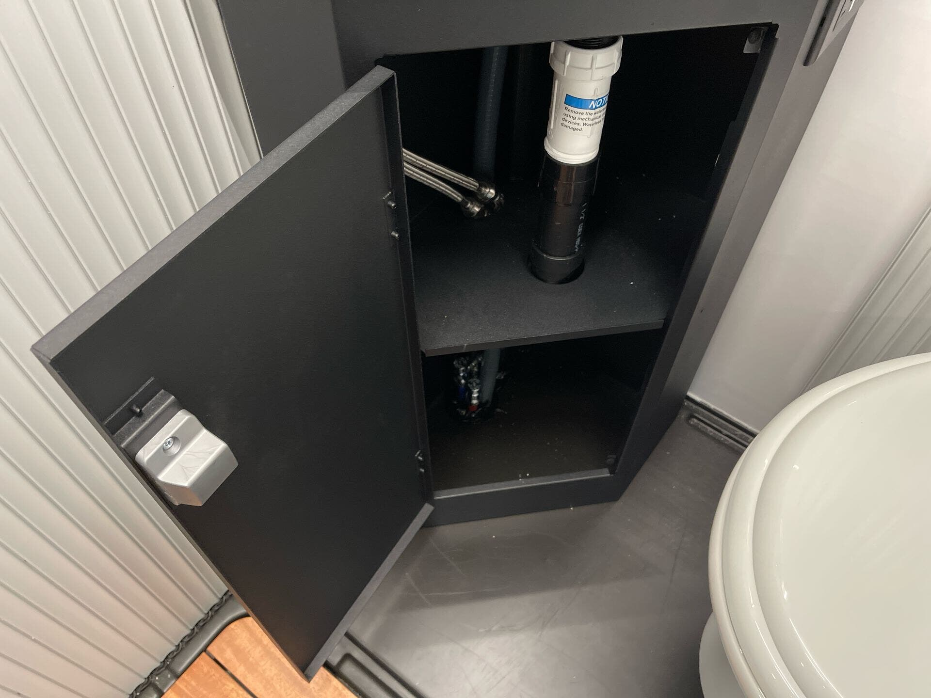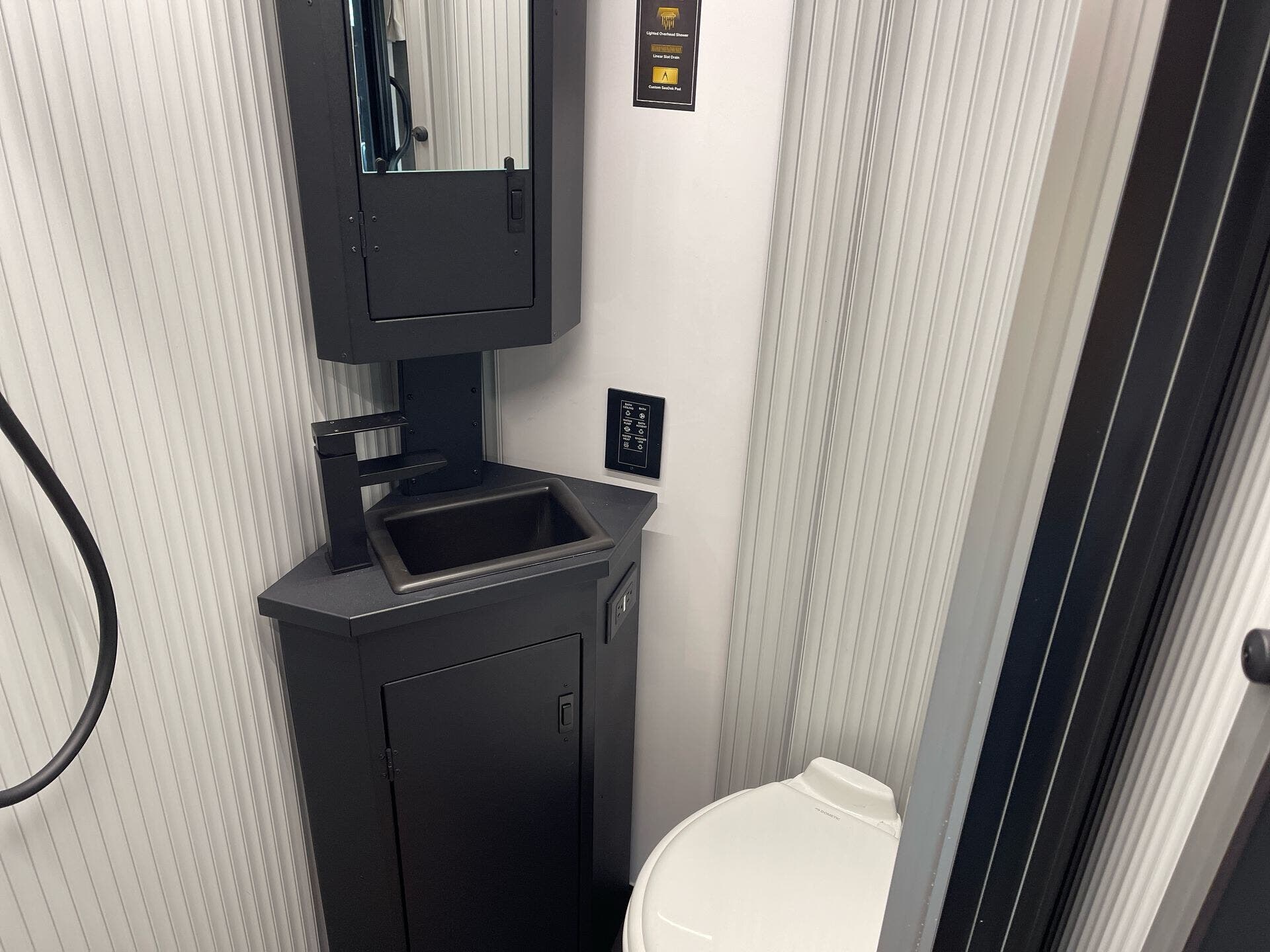 Inside, the flexible sleeping layout features twin power-adjustable 36″ × 80″ and 36″ × 74″ beds that convert into a king-sized bed (70″ × 80″), complete with headboard controls, USB ports, and storage. The bathroom pioneers an AquaHaven “walk-through” wet-dry design that can be used as a rain shower or enclosed dry bath—luxuriously tiled and heated for year-round comfort.
