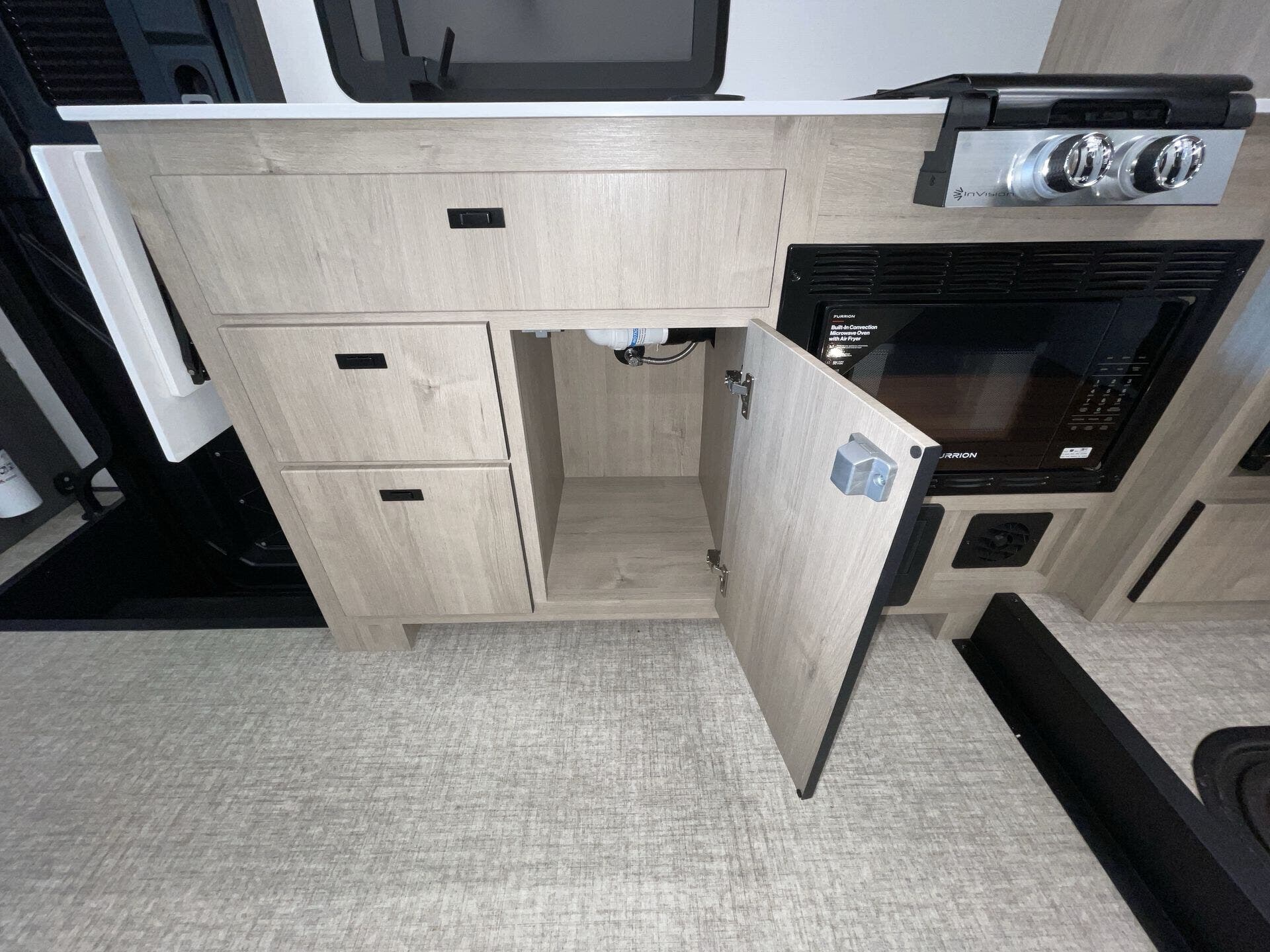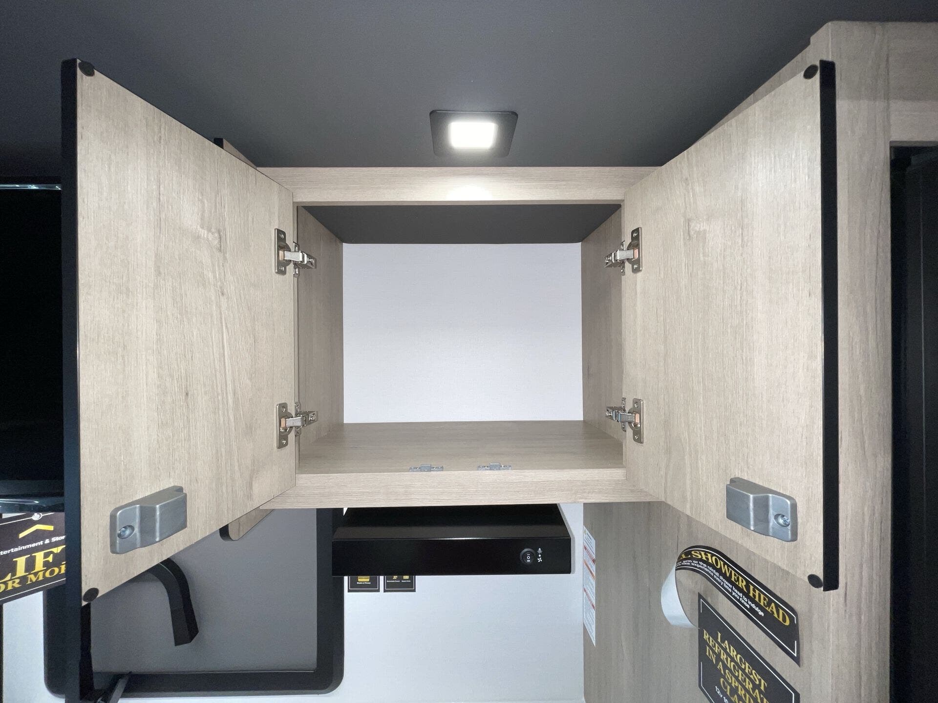 Day/Night Shades, King Size Bed, Kitchen Sink, Medicine Cabinet, Overhead Cabinetry, Pantry, Roof Vents, Shower, Toilet, Wardrobe(s)