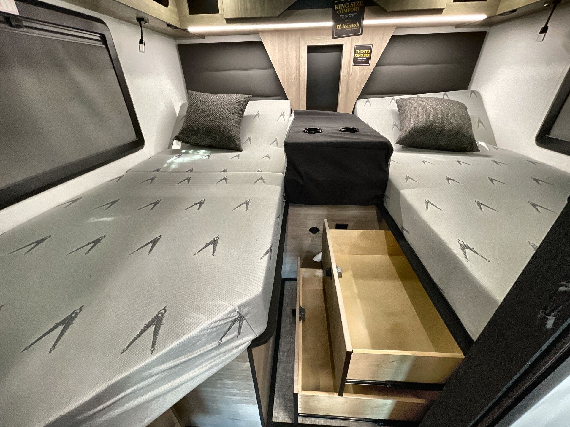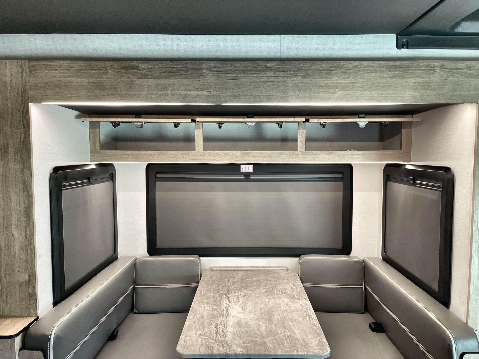 - Floorplan: 25TK with bunk over cab, front dinette, mid bath, rear bedroom
