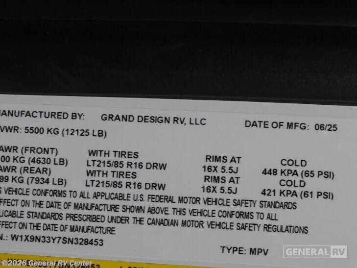 Request More Info on this 2026 Grand Design Lineage 25TK Offered for sale by General RV Center