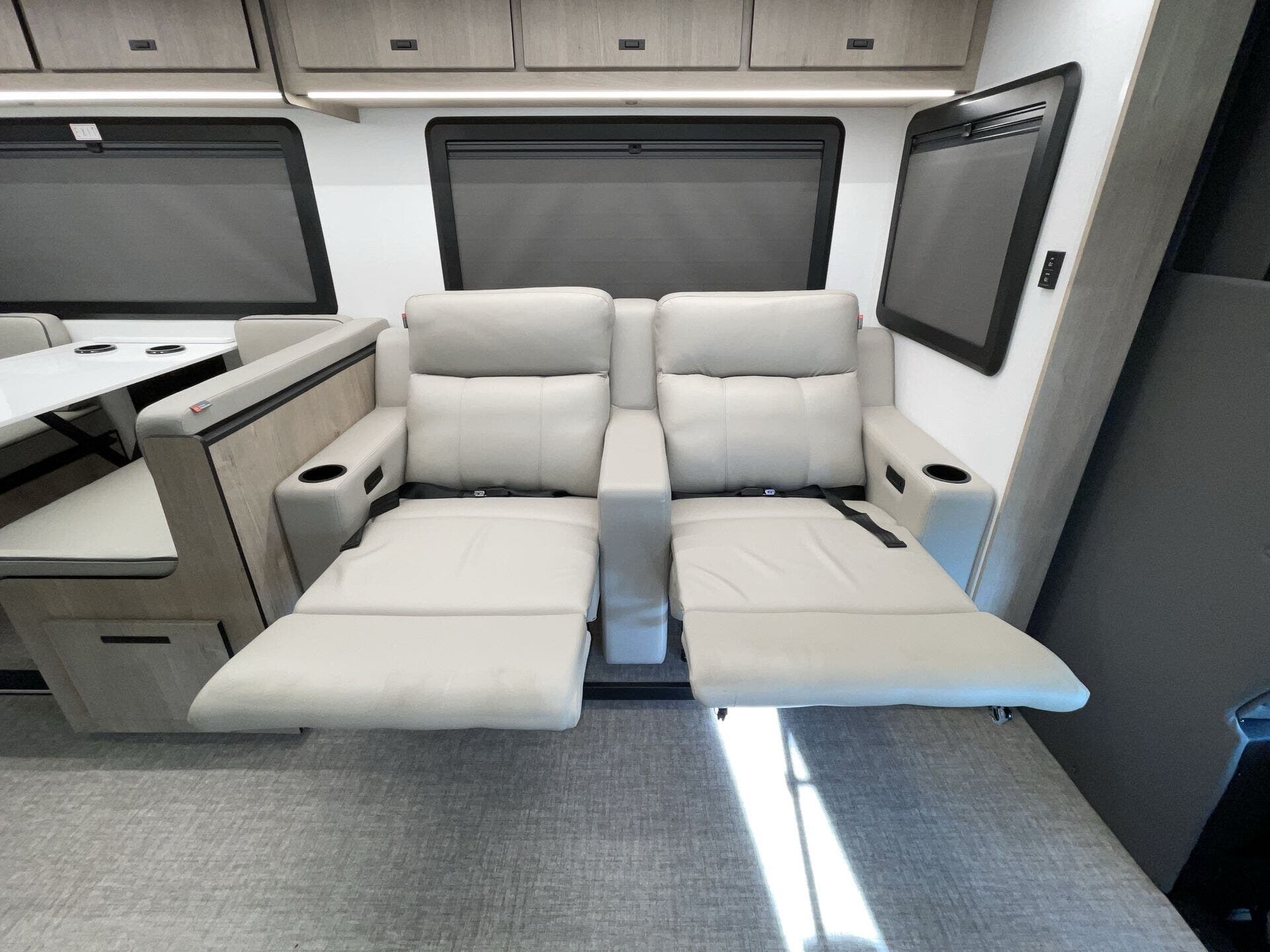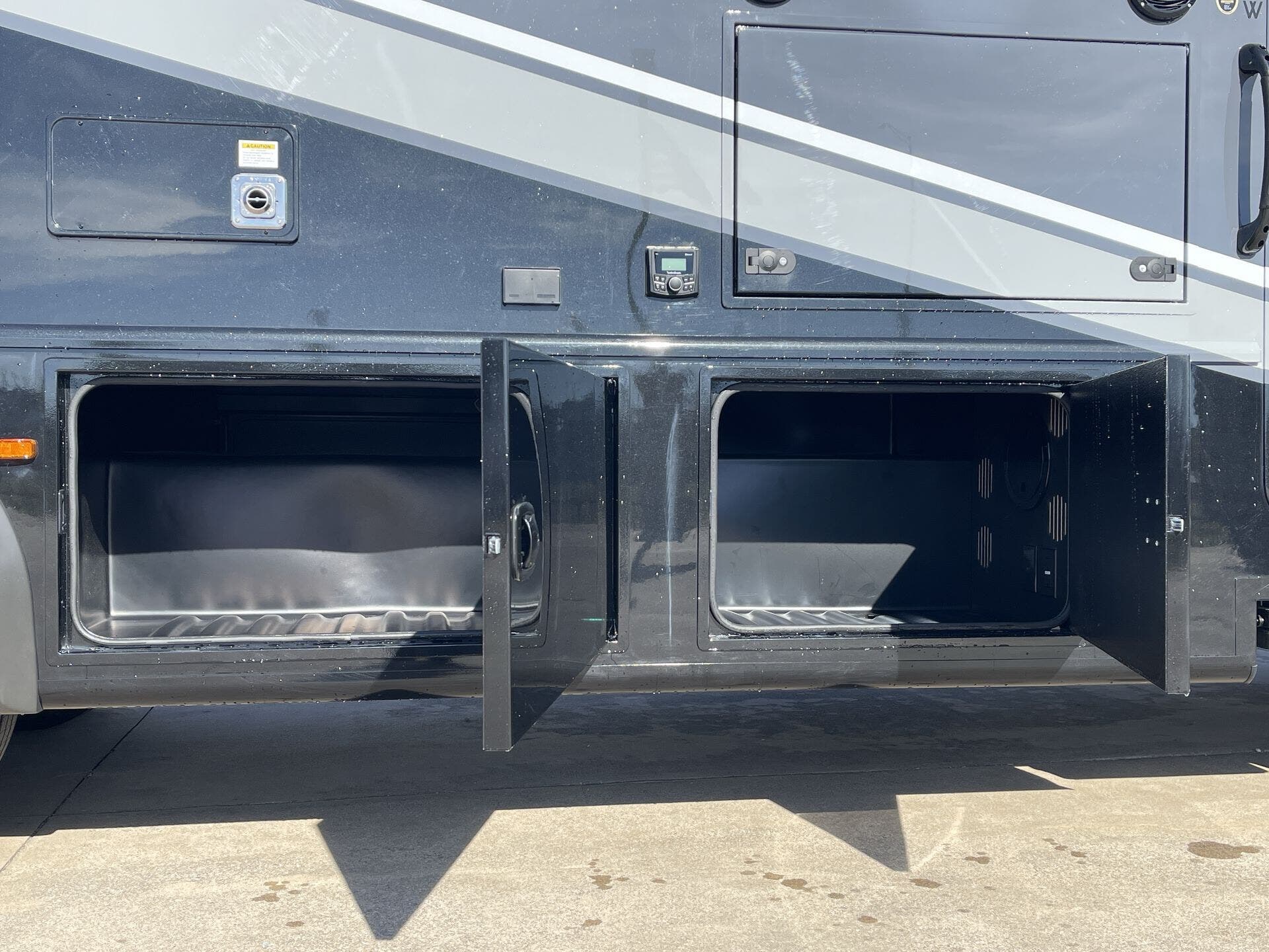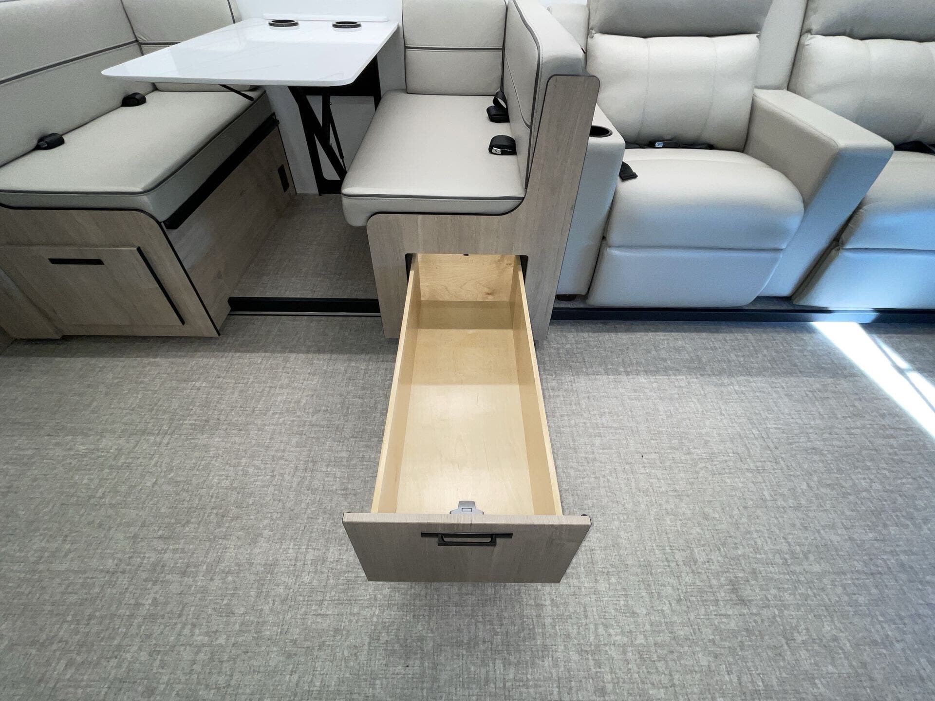 Booth Dinette, Day/Night Shades, Dinette Bed, King Size Bed, Kitchen Sink, Medicine Cabinet, Overhead Cabinetry, Pantry, Power Seats, Roof Vents, Shower, Theater Seating, Toilet, Wardrobe(s), Washer/Dryer Prep