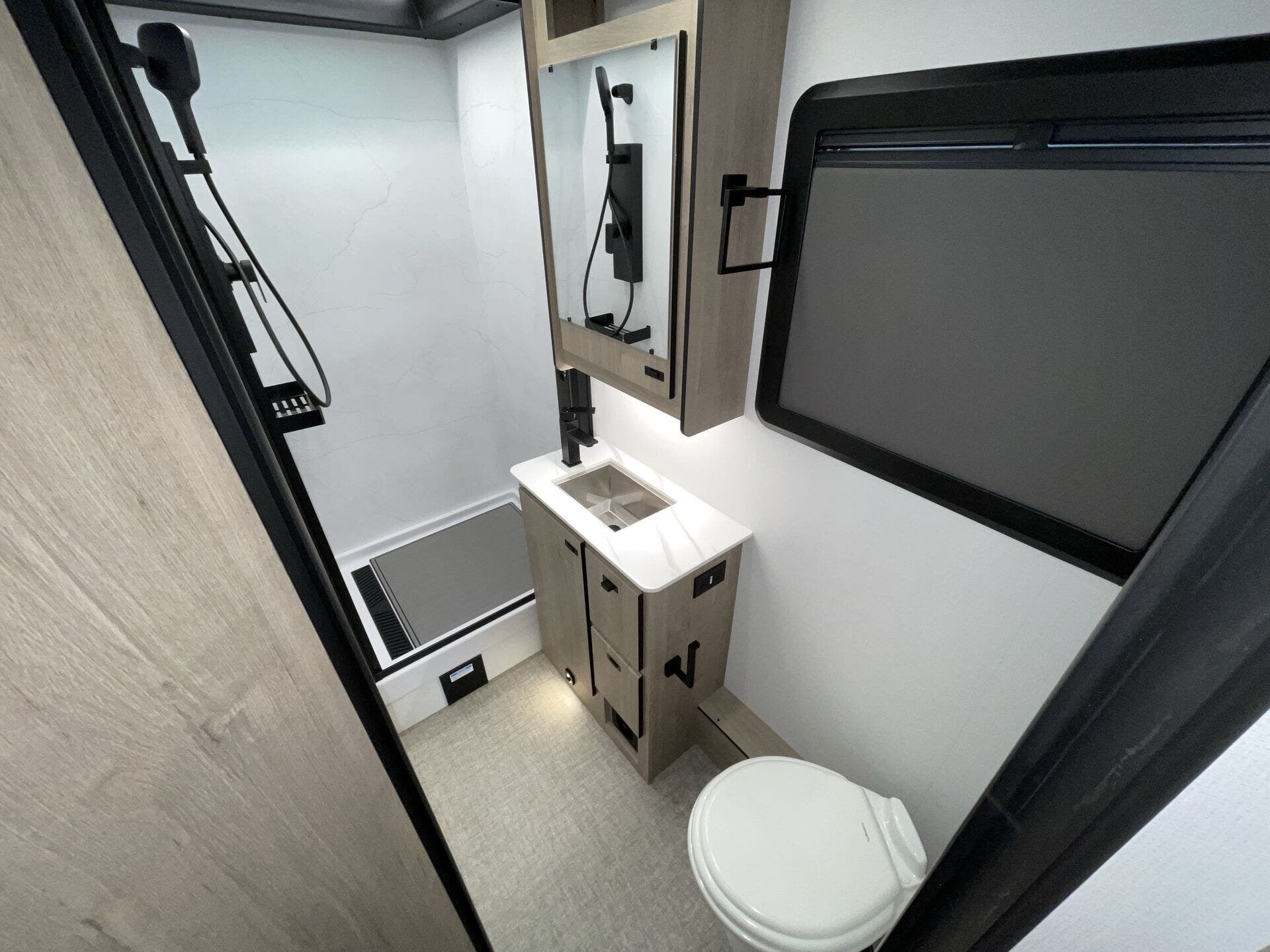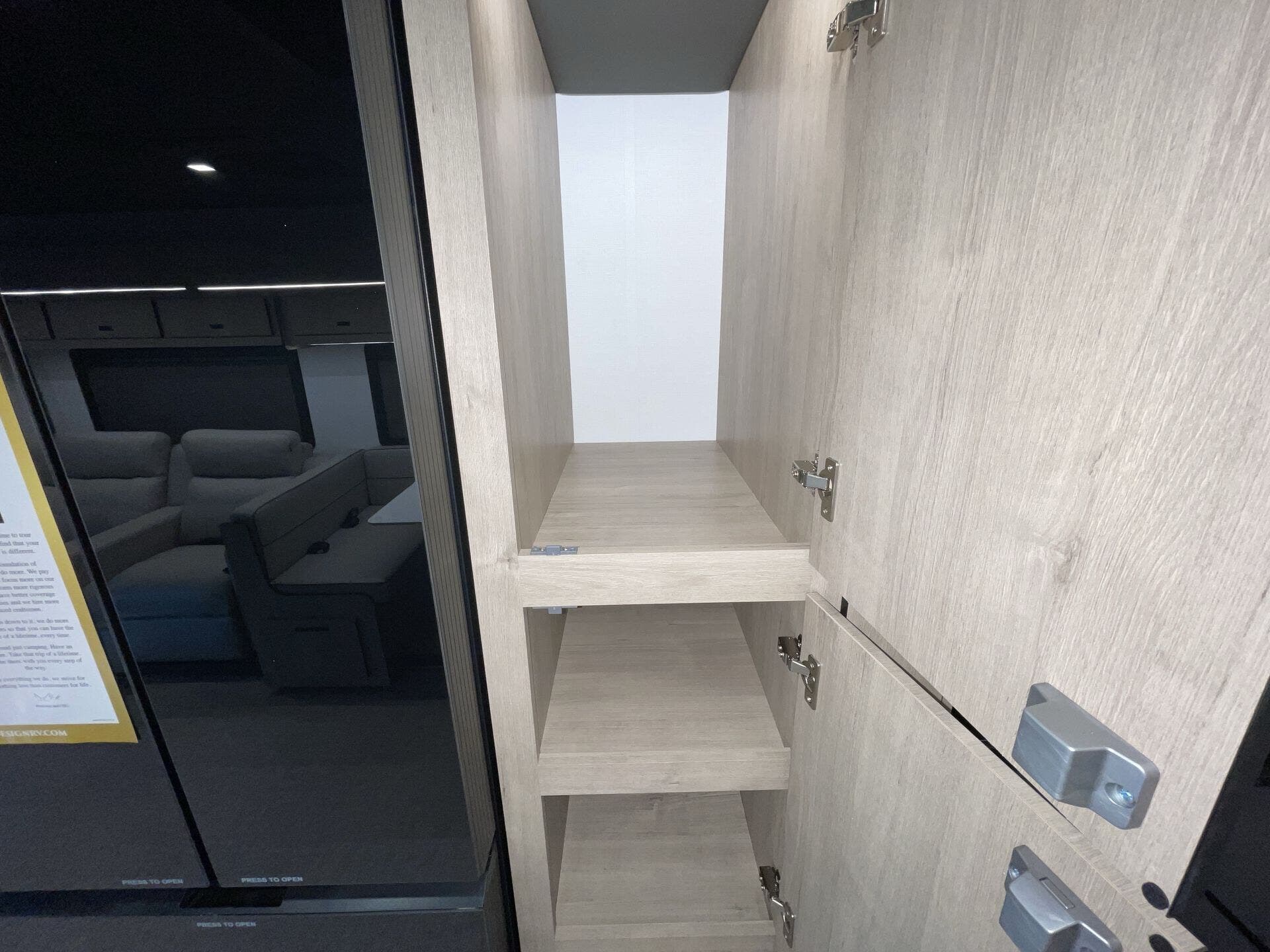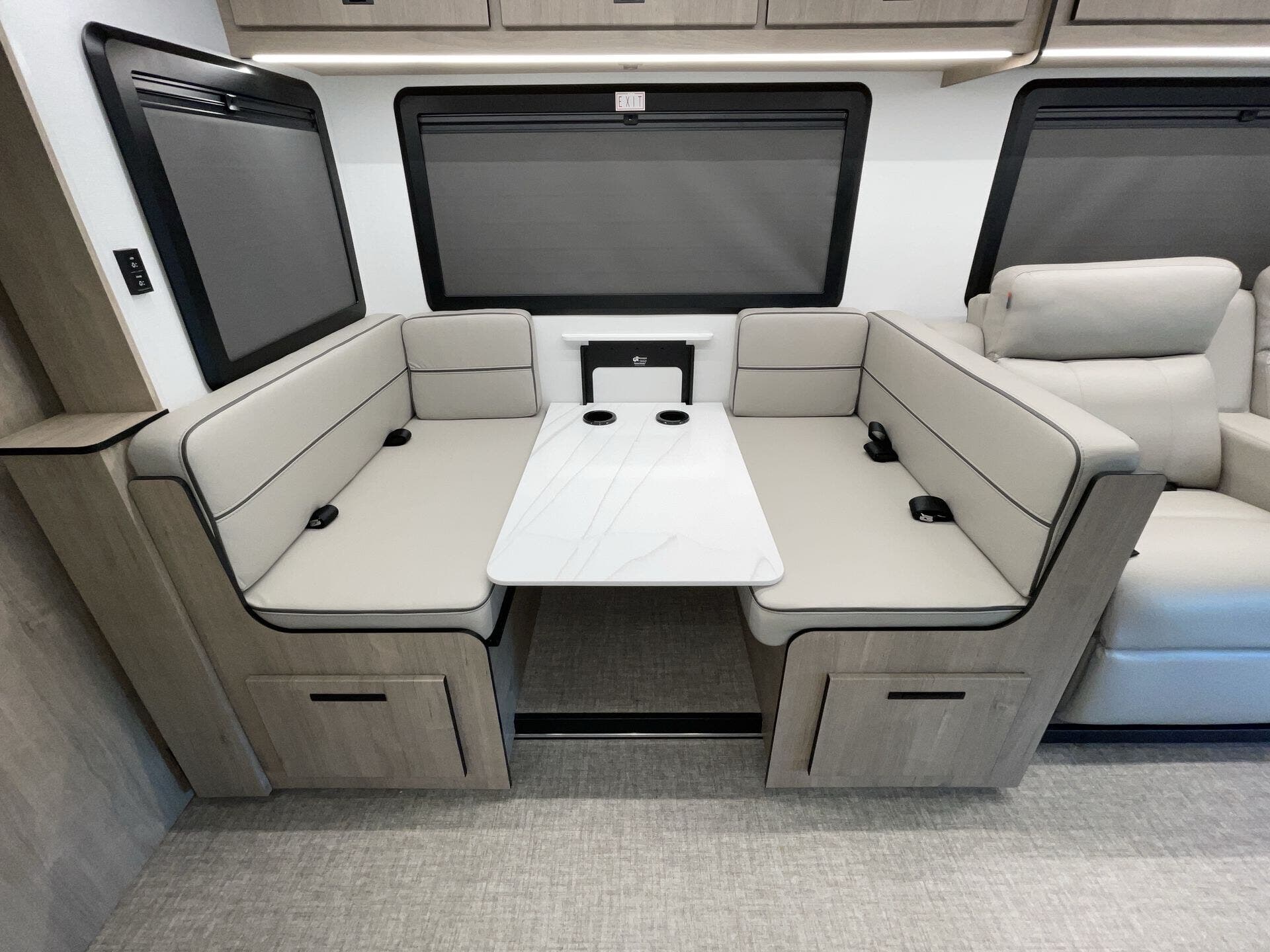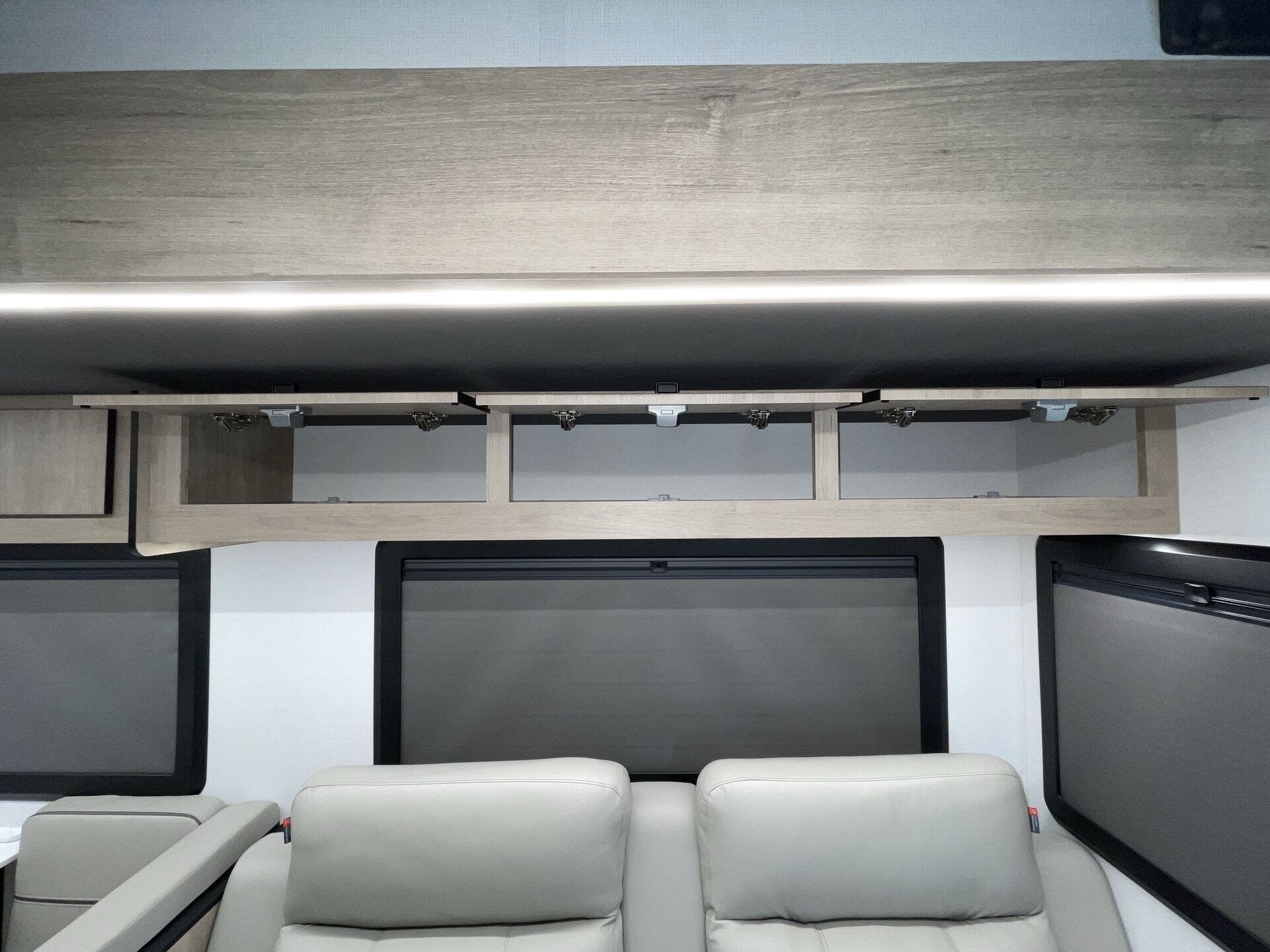 Booth Dinette, Day/Night Shades, Dinette Bed, King Size Bed, Kitchen Sink, Medicine Cabinet, Overhead Cabinetry, Pantry, Power Seats, Roof Vents, Shower, Theater Seating, Toilet, Wardrobe(s), Washer/Dryer Prep