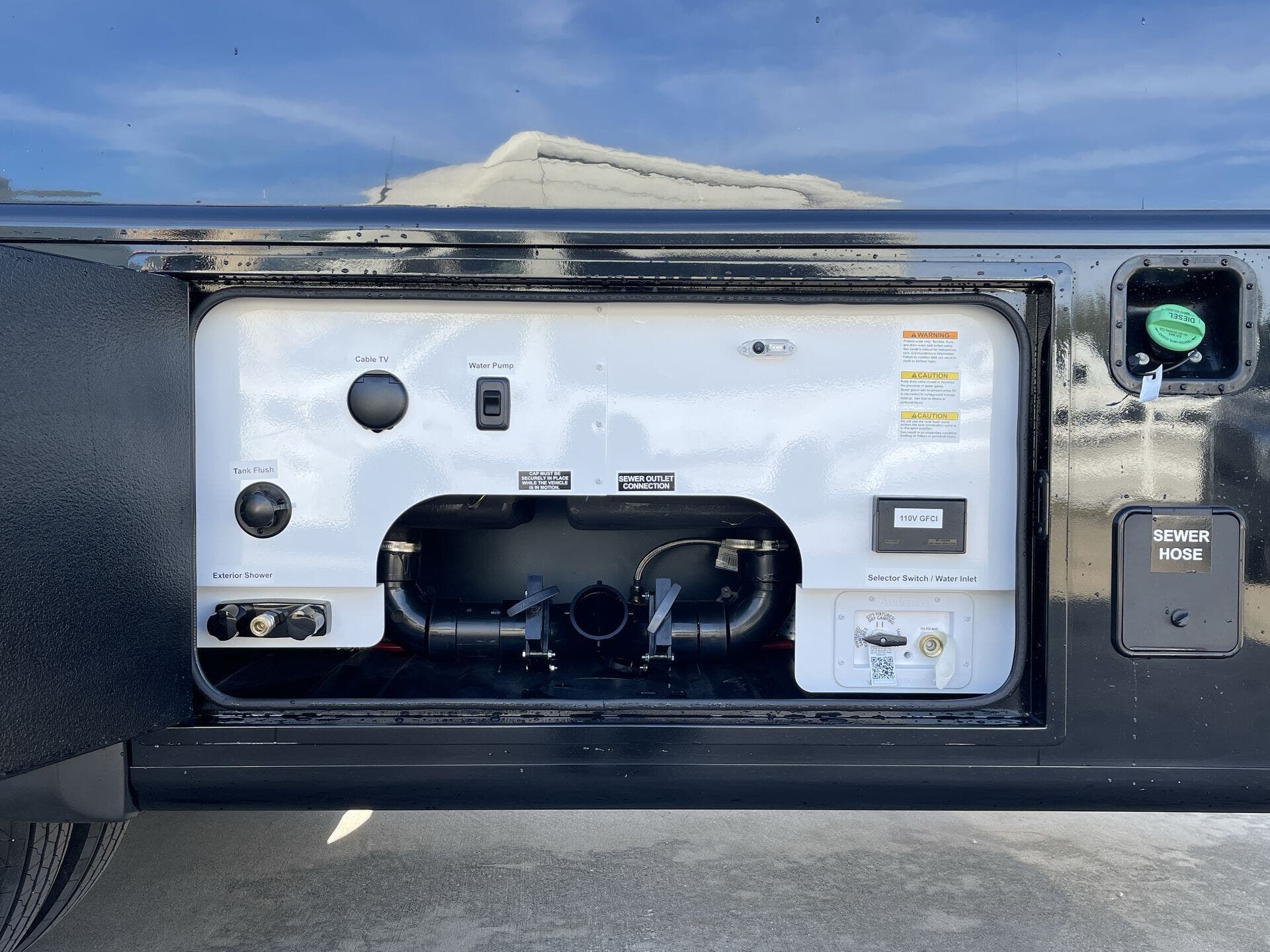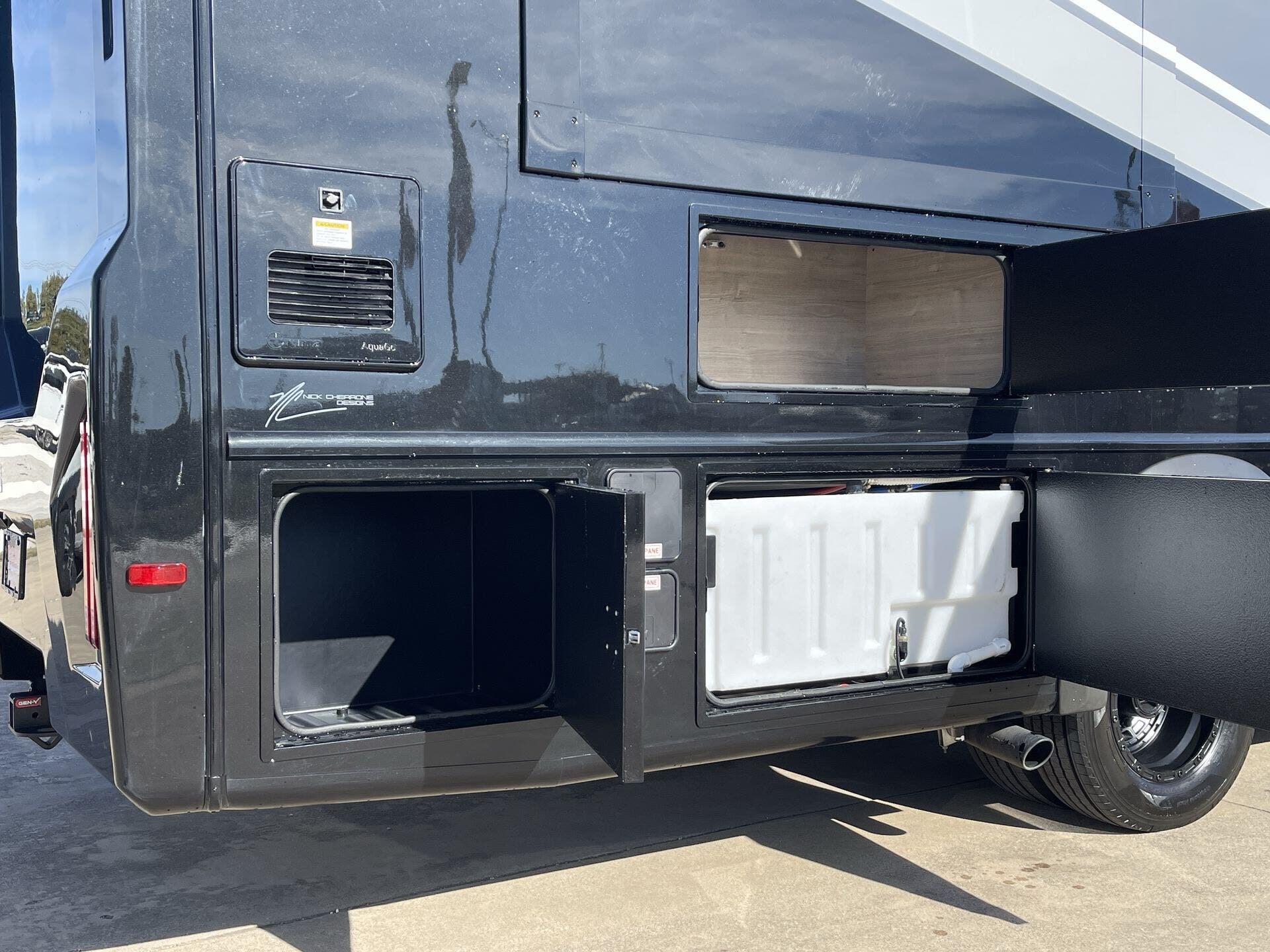 Large fresh (79?gal), grey (66?gal), and black (45?gal) tanks