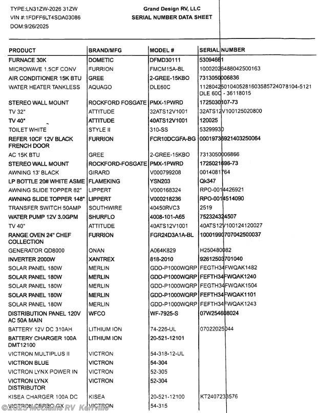 Request More Info on this 2026 Grand Design Lineage 31ZW Offered for sale by McClains RV