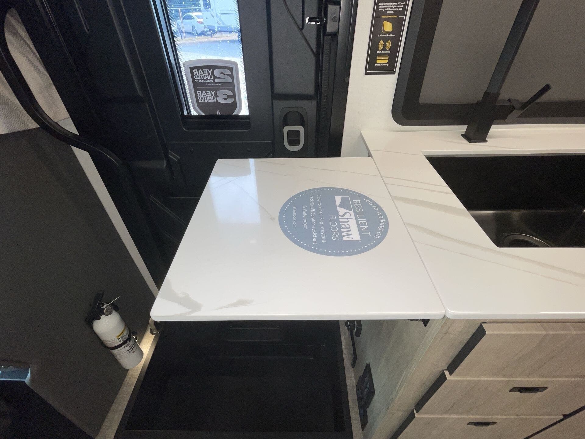 - LP detector, CO detector, smoke detector, and fire extinguisher for safety