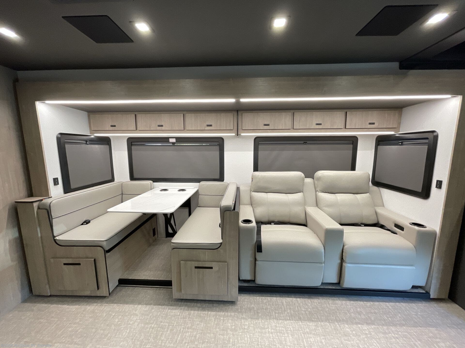 Built on a rugged chassis and designed for confident highway performance, this Super C layout delivers ample living space without sacrificing maneuverability. The Lineage line is known for refined interiors, reliable systems, and handsomely crafted finishes that stand up to frequent travel. Whether you're planning extended trips or weekend getaways, this model offers the comfort and capability that discerning RV enthusiasts expect.