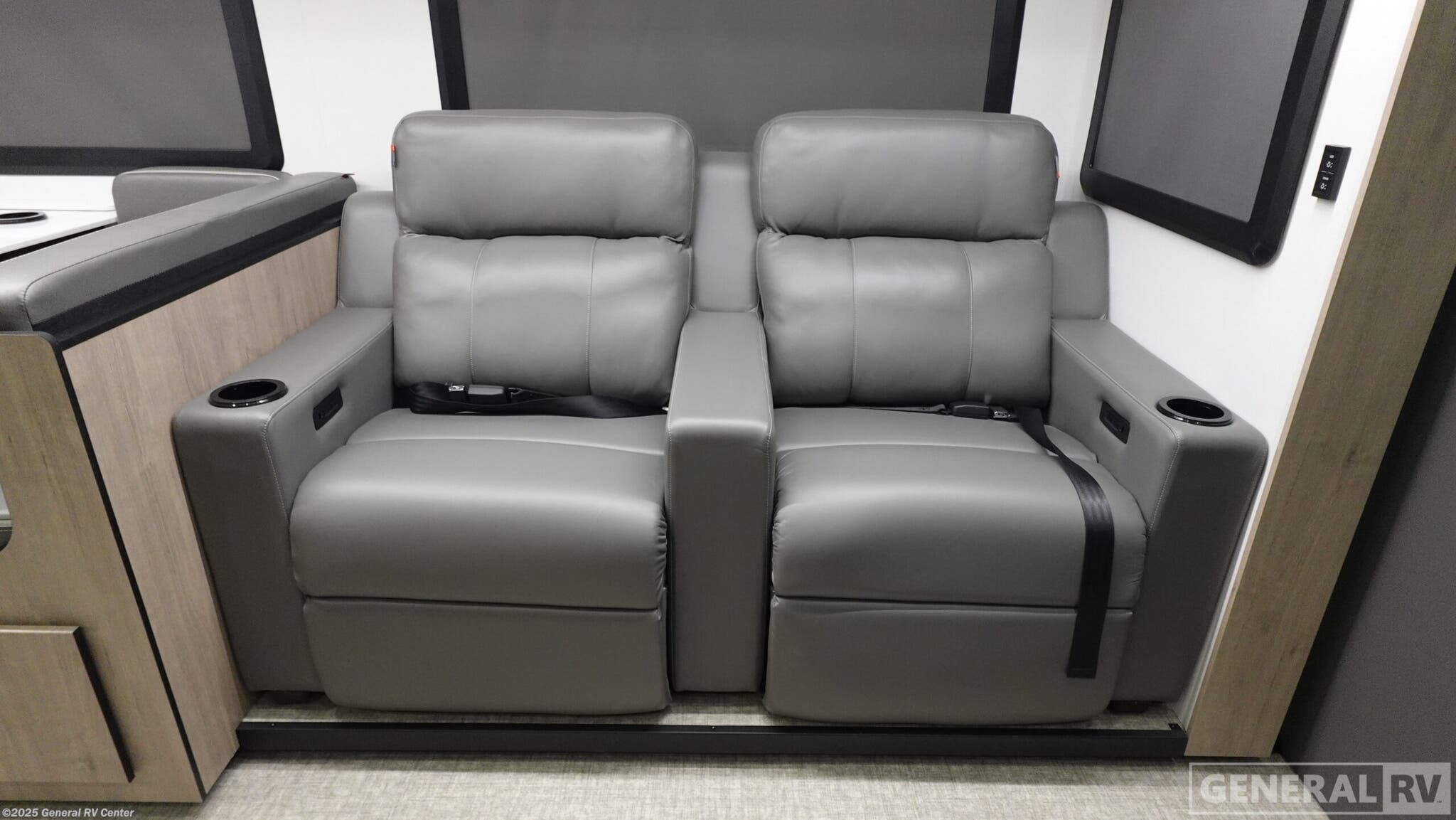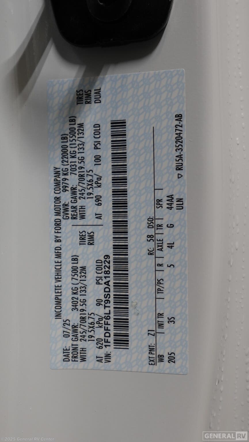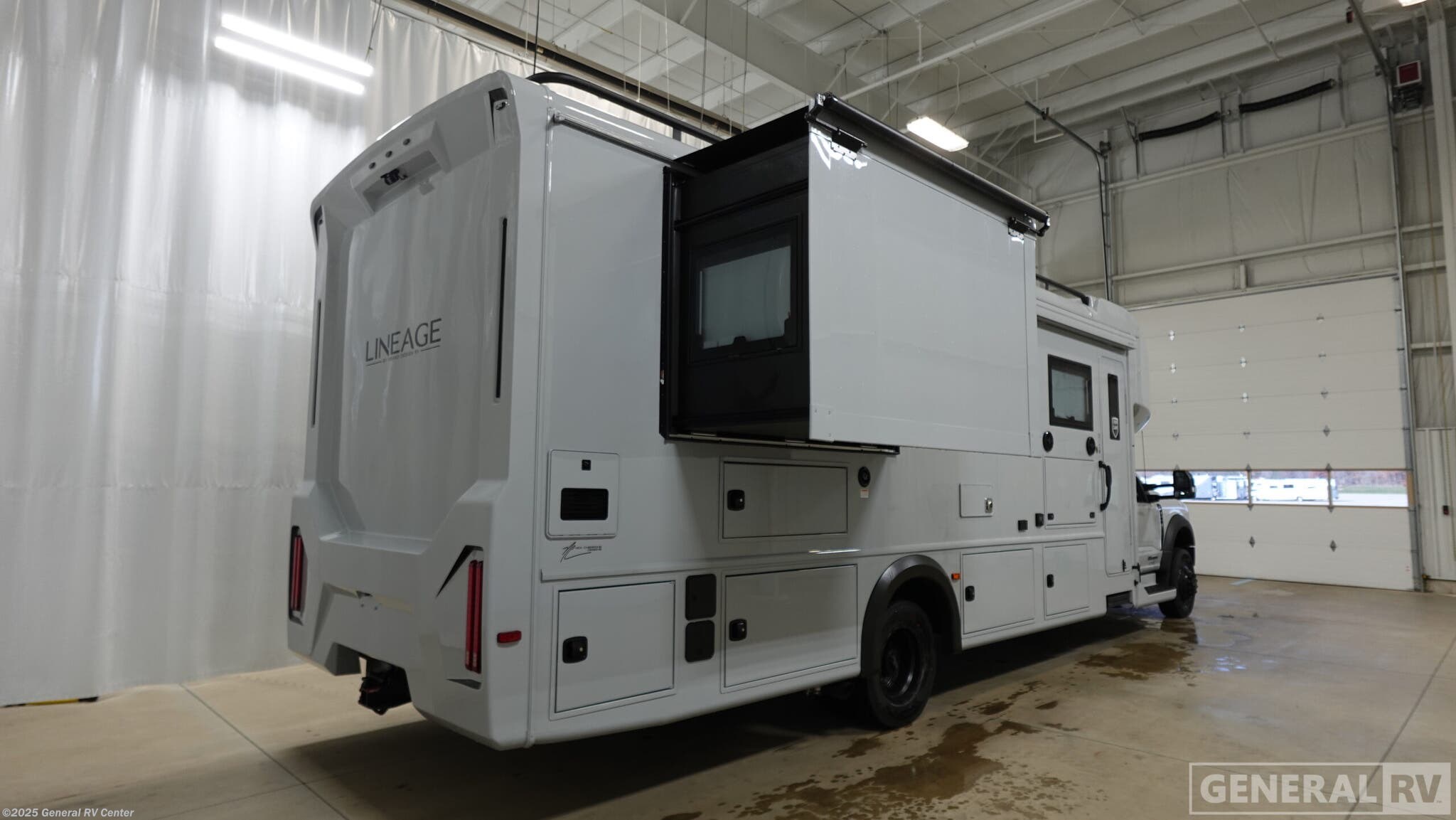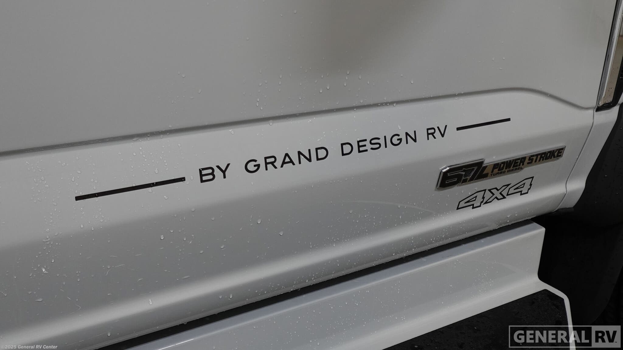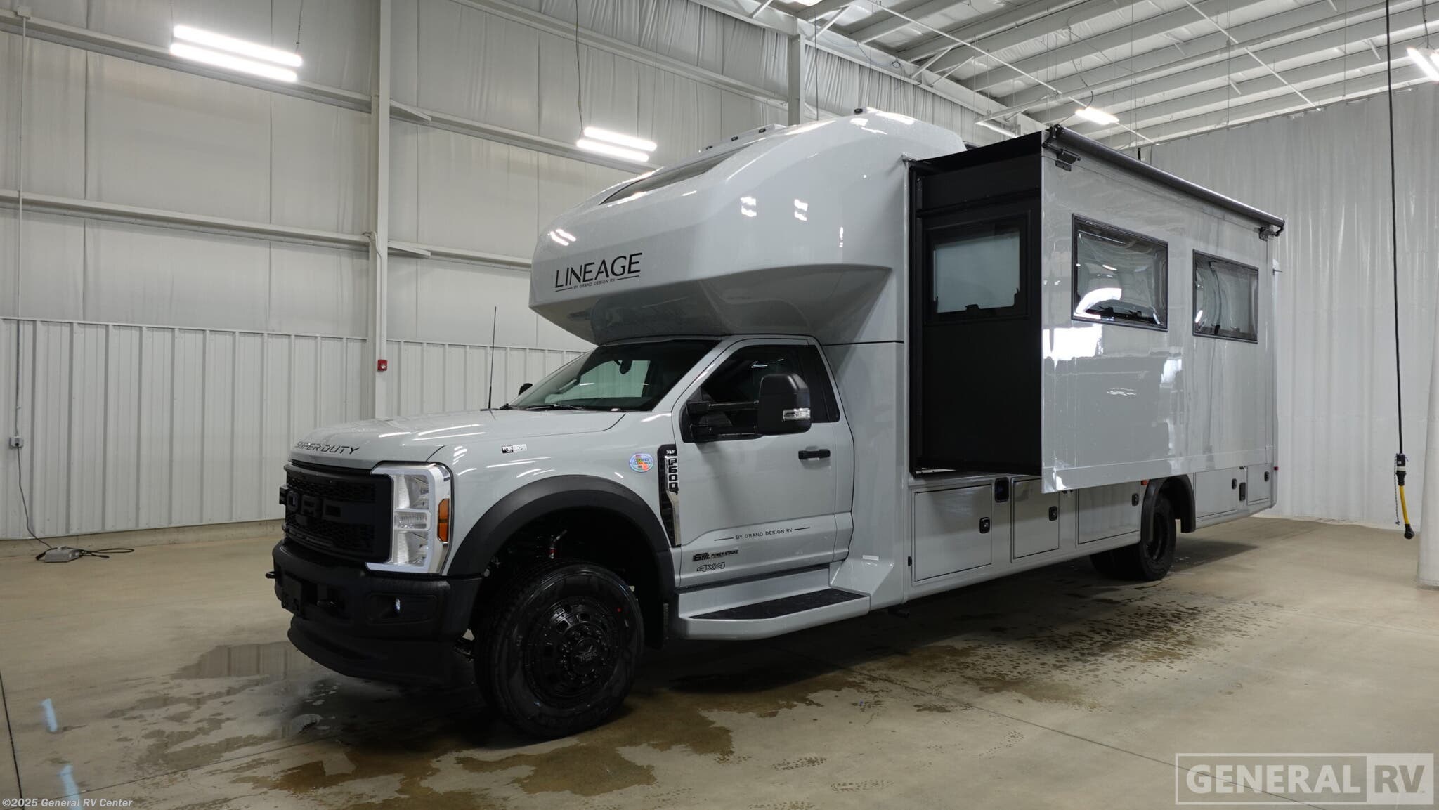 Grand Design Lineage Series F Super C diesel motorhome 31ZW highlights: Double Slides Power Theater Seating 40" Exterior TV Kitchen Pantry Large Bedroom Wardrobe 4x4 You can be sure to enjoy the journey and the stay in this coach! Once you stop for the day, you can make lunch with the kitchen appliances, then dine at the booth dinette within the large slide out. There is also power theater seating here across from a TV for easy viewing. A 10 cu. ft. 12V refrigerator and pantry will let you keep food stocked, and the closet with washer and dryer prep gives you the option to add these appliances. The 70" x 80" king bed slide is sure to provide a great night's rest, and there is a wardrobe to keep your things tidy. And of course, a full rear corner bath onboard makes staying fresh easier than ever! The capable Lineage Series F Super C diesel motorhome by Grand Design is your ticket to adventure! There is a Fox Factory Suspension Package for optimal handling, and you can go off the beaten path with the 6.7L power stroke diesel 4x4 chassis. This coach sits on the Ford F-600 super duty platform, and features a MorRyde tubular steel frame for added strength and durability. You'll find many at-home comforts inside, including comfortable seating and sleeping spaces, full bath and kitchen amenities, and plenty of storage for your personal belongings and camp gear!