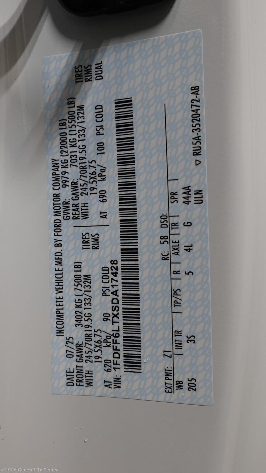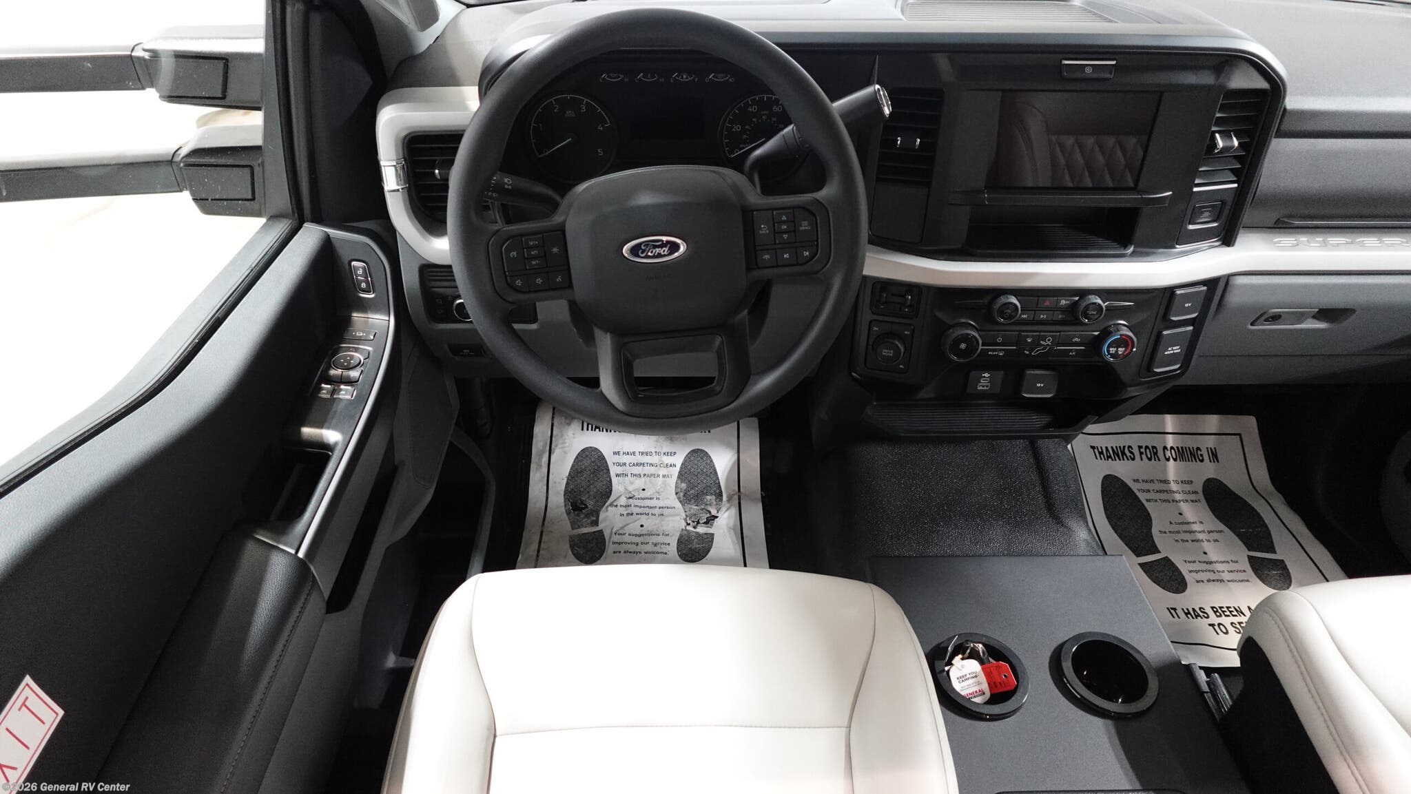 Grand Design Lineage Series F Super C diesel motorhome 31ZW highlights: Double Slides Power Theater Seating 40" Exterior TV Kitchen Pantry Large Bedroom Wardrobe 4x4 You can be sure to enjoy the journey and the stay in this coach! Once you stop for the day, you can make lunch with the kitchen appliances, then dine at the booth dinette within the large slide out. There is also power theater seating here across from a TV for easy viewing. A 10 cu. ft. 12V refrigerator and pantry will let you keep food stocked, and the closet with washer and dryer prep gives you the option to add these appliances. The 70" x 80" king bed slide is sure to provide a great night's rest, and there is a wardrobe to keep your things tidy. And of course, a full rear corner bath onboard makes staying fresh easier than ever! The capable Lineage Series F Super C diesel motorhome by Grand Design is your ticket to adventure! There is a Fox Factory Suspension Package for optimal handling, and you can go off the beaten path with the 6.7L power stroke diesel 4x4 chassis. This coach sits on the Ford F-600 super duty platform, and features a MorRyde tubular steel frame for added strength and durability. You'll find many at-home comforts inside, including comfortable seating and sleeping spaces, full bath and kitchen amenities, and plenty of storage for your personal belongings and camp gear!