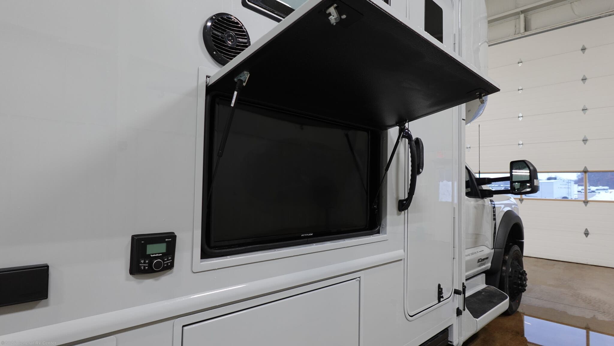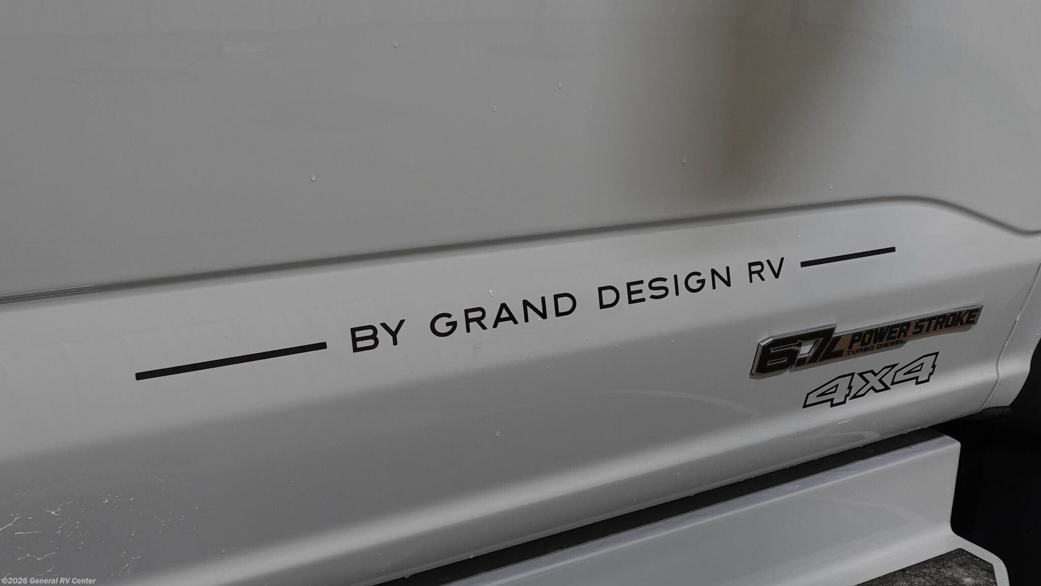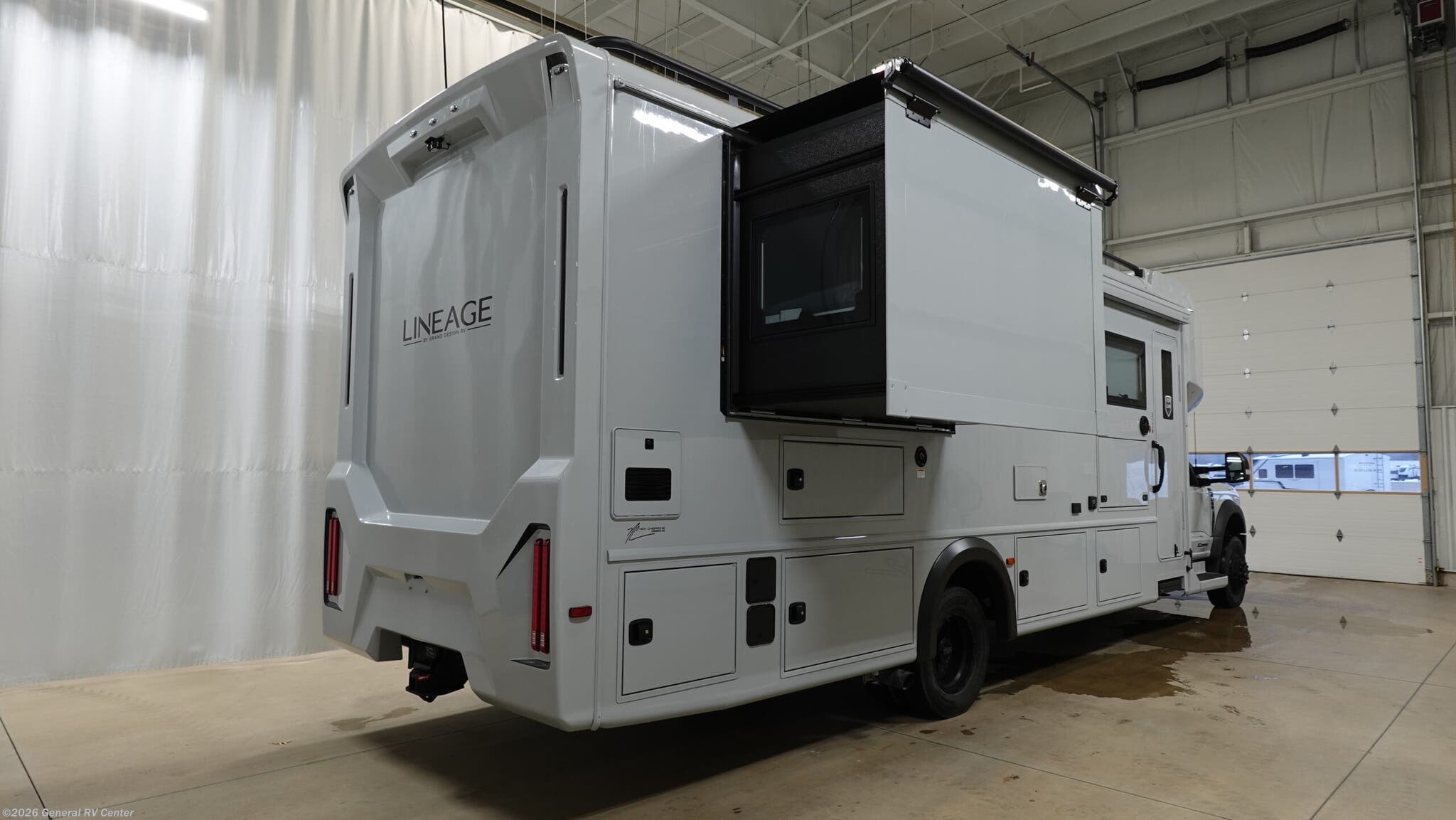 **Grand Design Lineage Series F Super C diesel motorhome 31ZW highlights:** * Double Slides * Power Theater Seating * 40" Exterior TV * Kitchen Pantry * Large Bedroom Wardrobe * 4x4 You can be sure to enjoy the journey and the stay in this coach! Once you stop for the day, you can make lunch with the kitchen appliances, then dine at the booth dinette within the large slide out. There is also power theater seating here across from a TV for easy viewing. A 10 cu. ft. 12V refrigerator and pantry will let you keep food stocked, and the closet with washer and dryer prep gives you the option to add these appliances. The 70" x 80" king bed slide is sure to provide a great night's rest, and there is a wardrobe to keep your things tidy. And of course, a full rear corner bath onboard makes staying fresh easier than ever! The capable Lineage Series F Super C diesel motorhome by Grand Design is your ticket to adventure! There is a Fox Factory Suspension Package for optimal handling, and you can go off the beaten path with the 6.7L power stroke diesel 4x4 chassis. This coach sits on the Ford F-600 super duty platform, and features a MorRyde tubular steel frame for added strength and durability. You'll find many at-home comforts inside, including comfortable seating and sleeping spaces, full bath and kitchen amenities, and plenty of storage for your personal belongings and camp gear!
