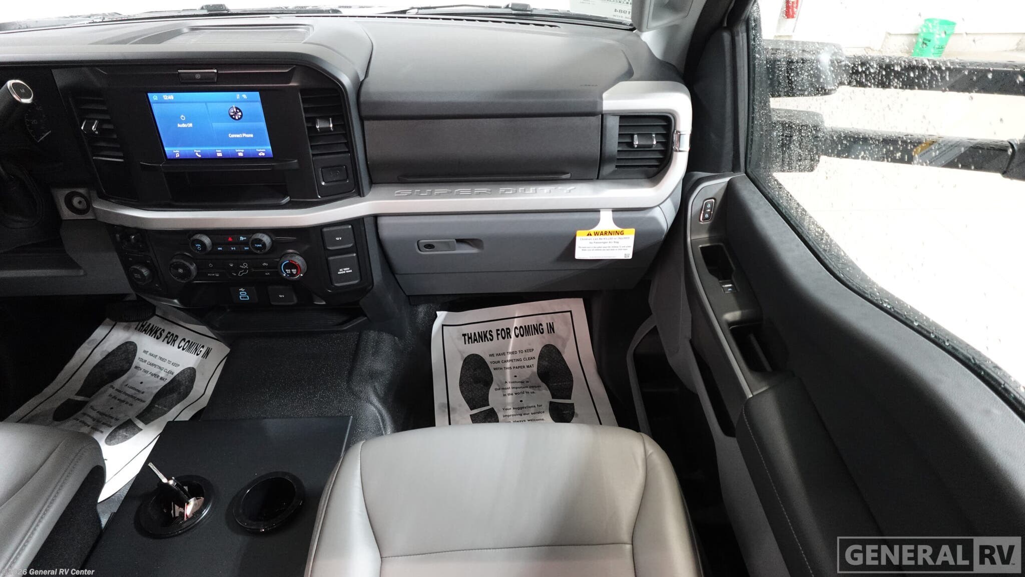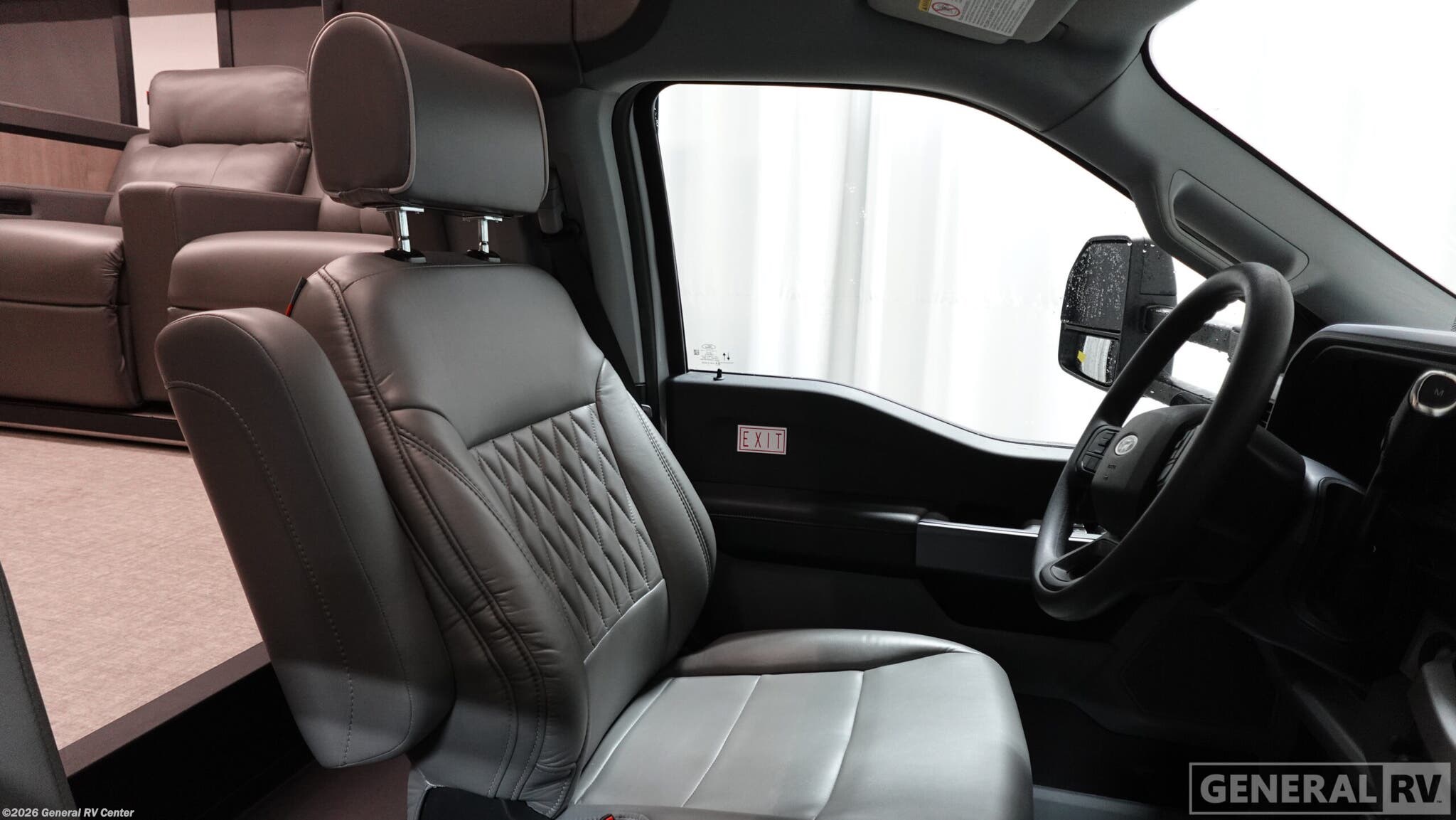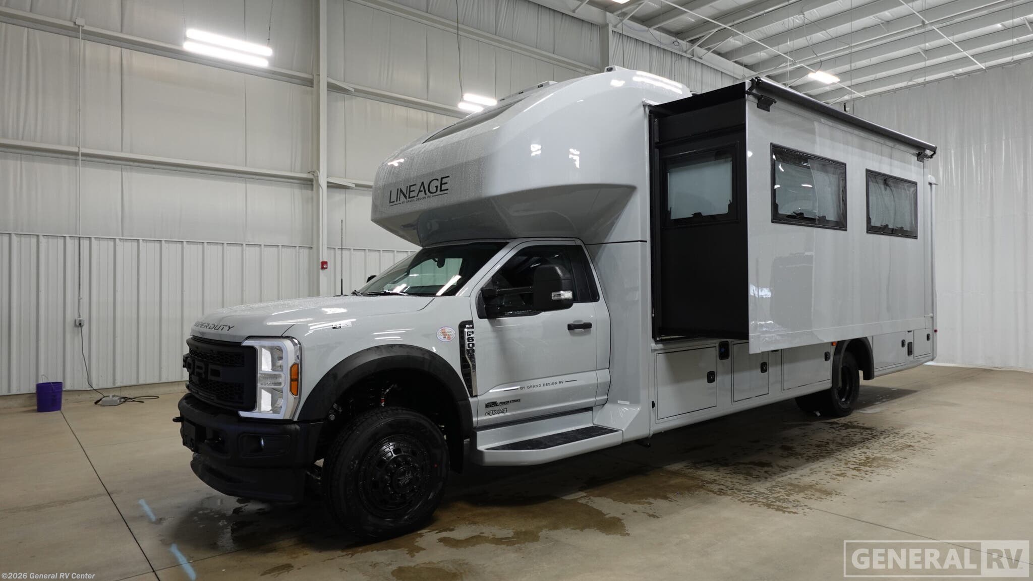 Grand Design Lineage Series F Super C diesel motorhome 31ZW highlights: Double Slides Power Theater Seating 40" Exterior TV Kitchen Pantry Large Bedroom Wardrobe 4x4 You can be sure to enjoy the journey and the stay in this coach! Once you stop for the day, you can make lunch with the kitchen appliances, then dine at the booth dinette within the large slide out. There is also power theater seating here across from a TV for easy viewing. A 10 cu. ft. 12V refrigerator and pantry will let you keep food stocked, and the closet with washer and dryer prep gives you the option to add these appliances. The 70" x 80" king bed slide is sure to provide a great night's rest, and there is a wardrobe to keep your things tidy. And of course, a full rear corner bath onboard makes staying fresh easier than ever! The capable Lineage Series F Super C diesel motorhome by Grand Design is your ticket to adventure! There is a Fox Factory Suspension Package for optimal handling, and you can go off the beaten path with the 6.7L power stroke diesel 4x4 chassis. This coach sits on the Ford F-600 super duty platform, and features a MorRyde tubular steel frame for added strength and durability. You'll find many at-home comforts inside, including comfortable seating and sleeping spaces, full bath and kitchen amenities, and plenty of storage for your personal belongings and camp gear!