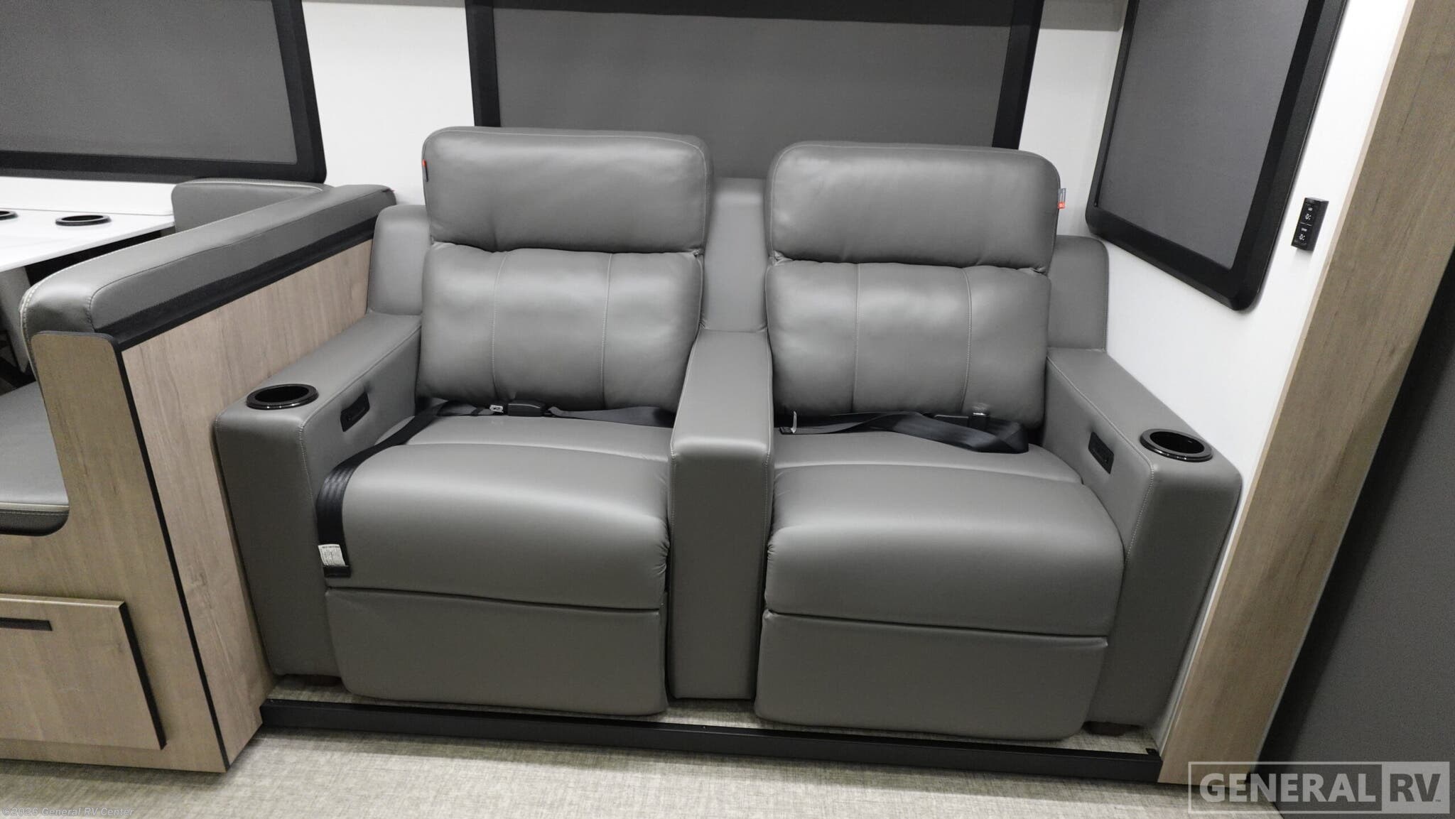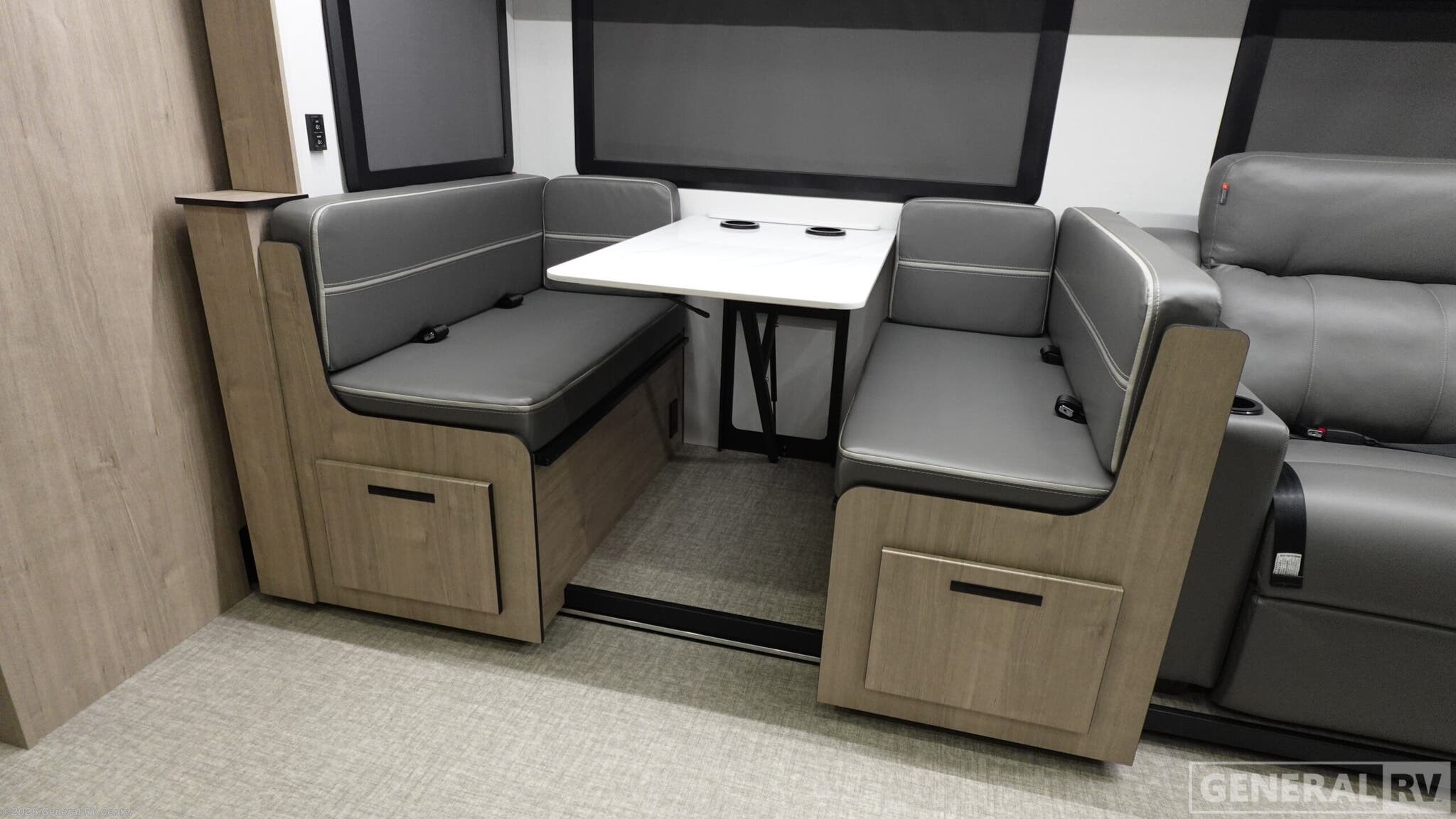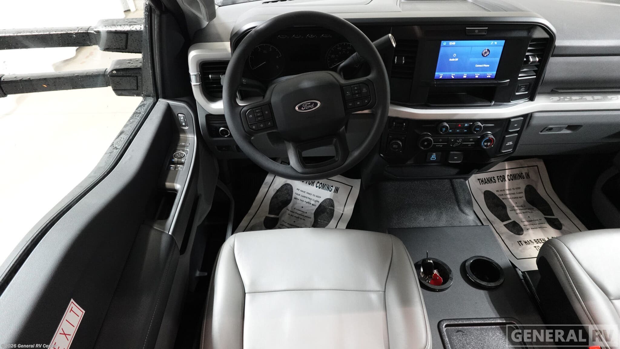 Grand Design Lineage Series F Super C diesel motorhome 31ZW highlights: Double Slides Power Theater Seating 40" Exterior TV Kitchen Pantry Large Bedroom Wardrobe 4x4 You can be sure to enjoy the journey and the stay in this coach! Once you stop for the day, you can make lunch with the kitchen appliances, then dine at the booth dinette within the large slide out. There is also power theater seating here across from a TV for easy viewing. A 10 cu. ft. 12V refrigerator and pantry will let you keep food stocked, and the closet with washer and dryer prep gives you the option to add these appliances. The 70" x 80" king bed slide is sure to provide a great night's rest, and there is a wardrobe to keep your things tidy. And of course, a full rear corner bath onboard makes staying fresh easier than ever! The capable Lineage Series F Super C diesel motorhome by Grand Design is your ticket to adventure! There is a Fox Factory Suspension Package for optimal handling, and you can go off the beaten path with the 6.7L power stroke diesel 4x4 chassis. This coach sits on the Ford F-600 super duty platform, and features a MorRyde tubular steel frame for added strength and durability. You'll find many at-home comforts inside, including comfortable seating and sleeping spaces, full bath and kitchen amenities, and plenty of storage for your personal belongings and camp gear!