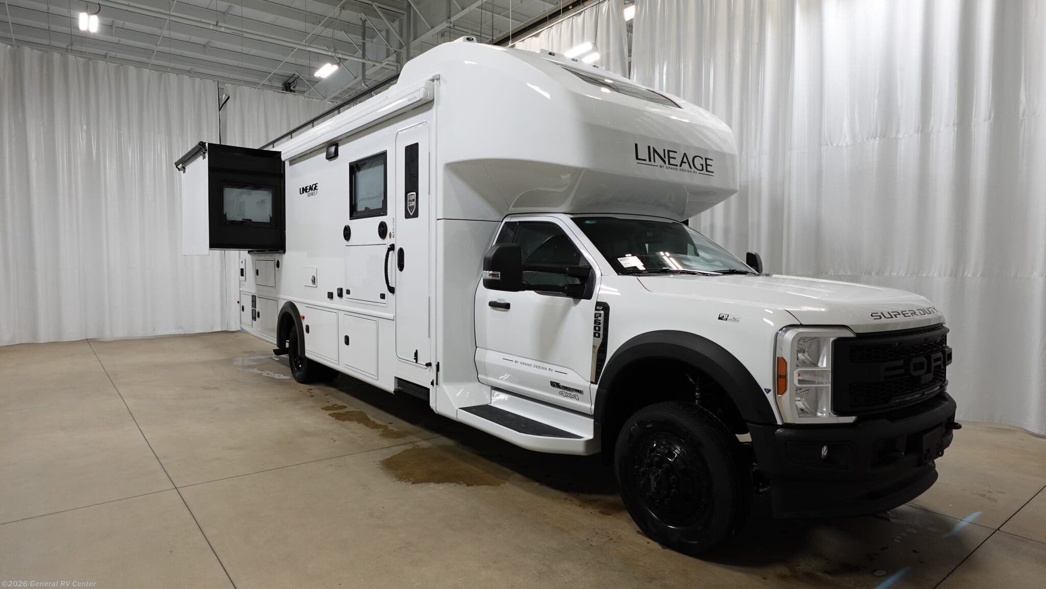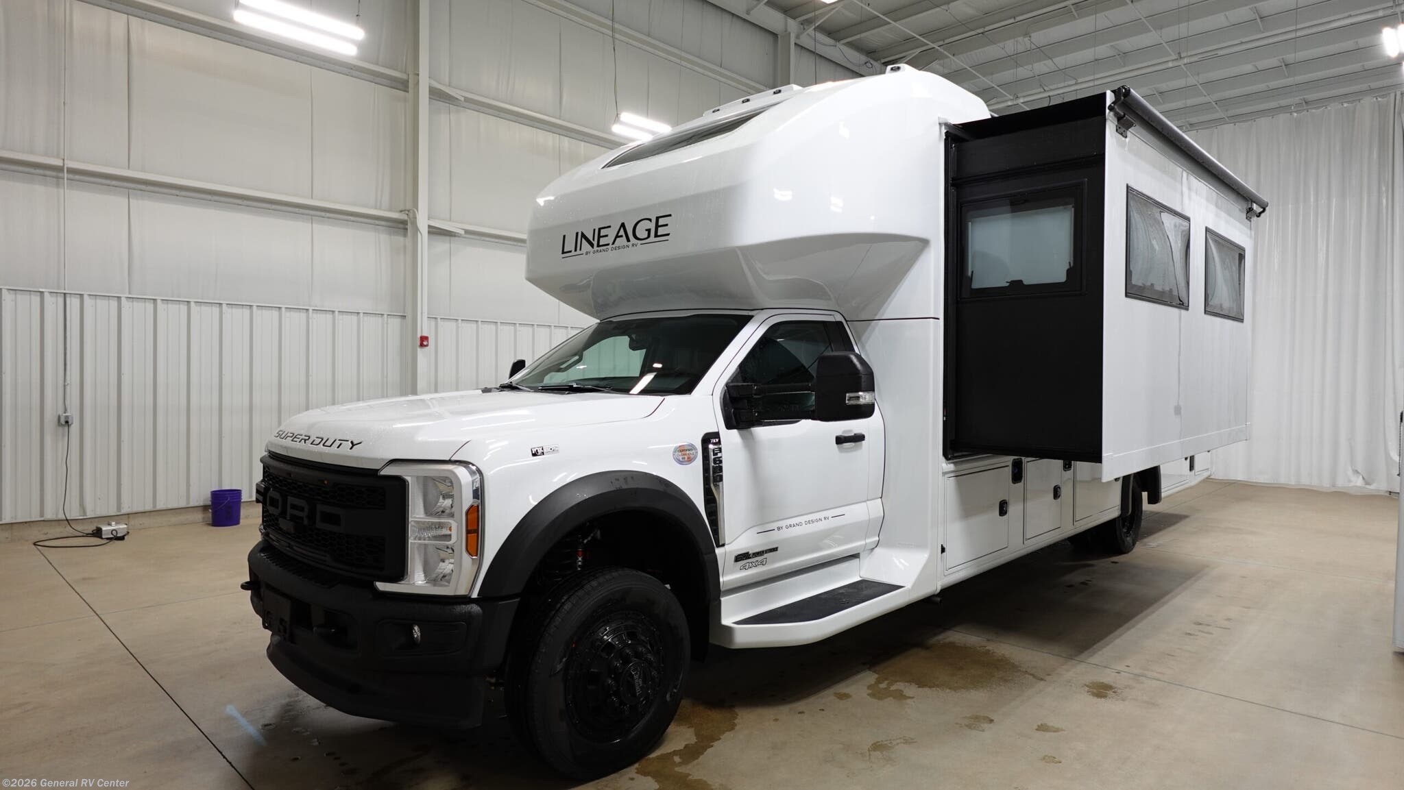 **Grand Design Lineage Series F Super C diesel motorhome 31ZW highlights:** * Double Slides * Power Theater Seating * 40" Exterior TV * Kitchen Pantry * Large Bedroom Wardrobe * 4x4 You can be sure to enjoy the journey and the stay in this coach! Once you stop for the day, you can make lunch with the kitchen appliances, then dine at the booth dinette within the large slide out. There is also power theater seating here across from a TV for easy viewing. A 10 cu. ft. 12V refrigerator and pantry will let you keep food stocked, and the closet with washer and dryer prep gives you the option to add these appliances. The 70" x 80" king bed slide is sure to provide a great night's rest, and there is a wardrobe to keep your things tidy. And of course, a full rear corner bath onboard makes staying fresh easier than ever! The capable Lineage Series F Super C diesel motorhome by Grand Design is your ticket to adventure! There is a Fox Factory Suspension Package for optimal handling, and you can go off the beaten path with the 6.7L power stroke diesel 4x4 chassis. This coach sits on the Ford F-600 super duty platform, and features a MorRyde tubular steel frame for added strength and durability. You'll find many at-home comforts inside, including comfortable seating and sleeping spaces, full bath and kitchen amenities, and plenty of storage for your personal belongings and camp gear!