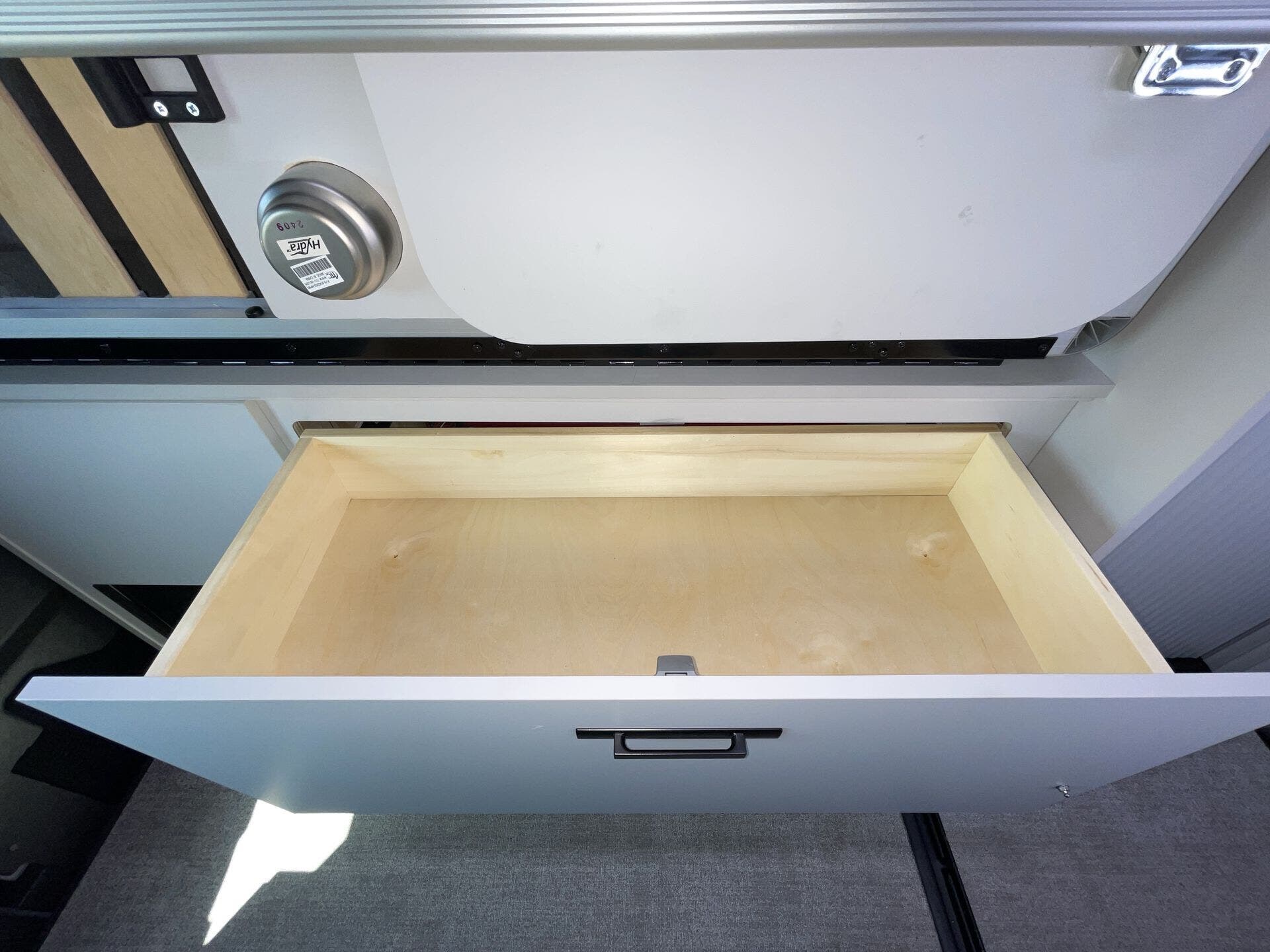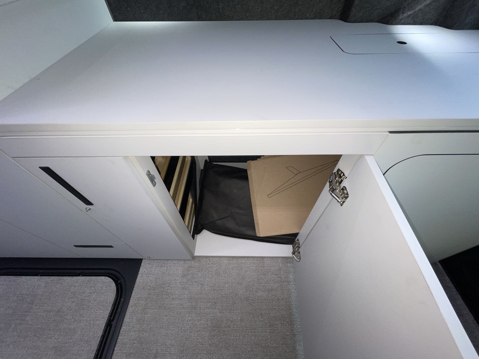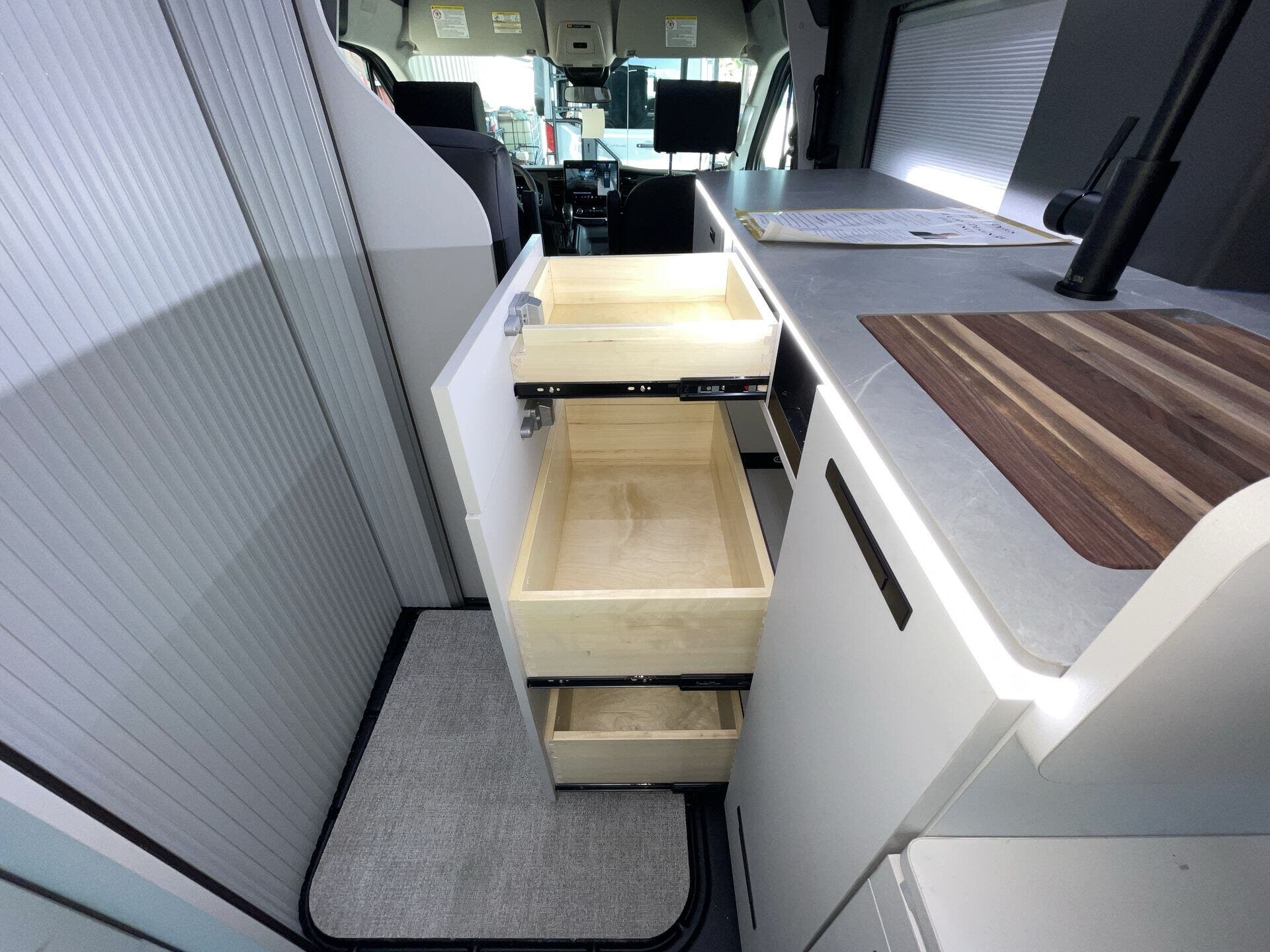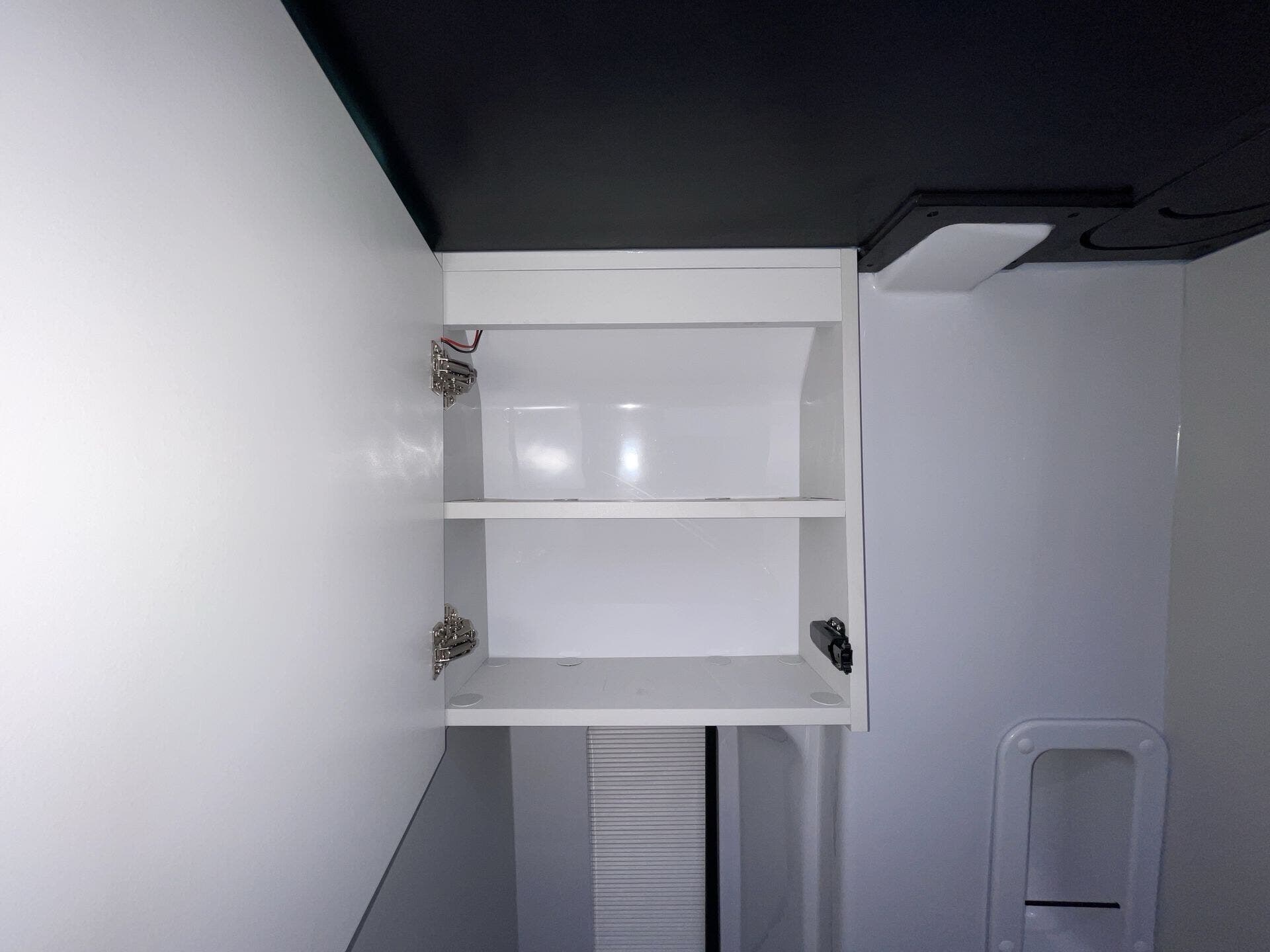 Kitchen Sink, Medicine Cabinet, Overhead Cabinetry, Removable Table, Roof Vents, Shower, Toilet