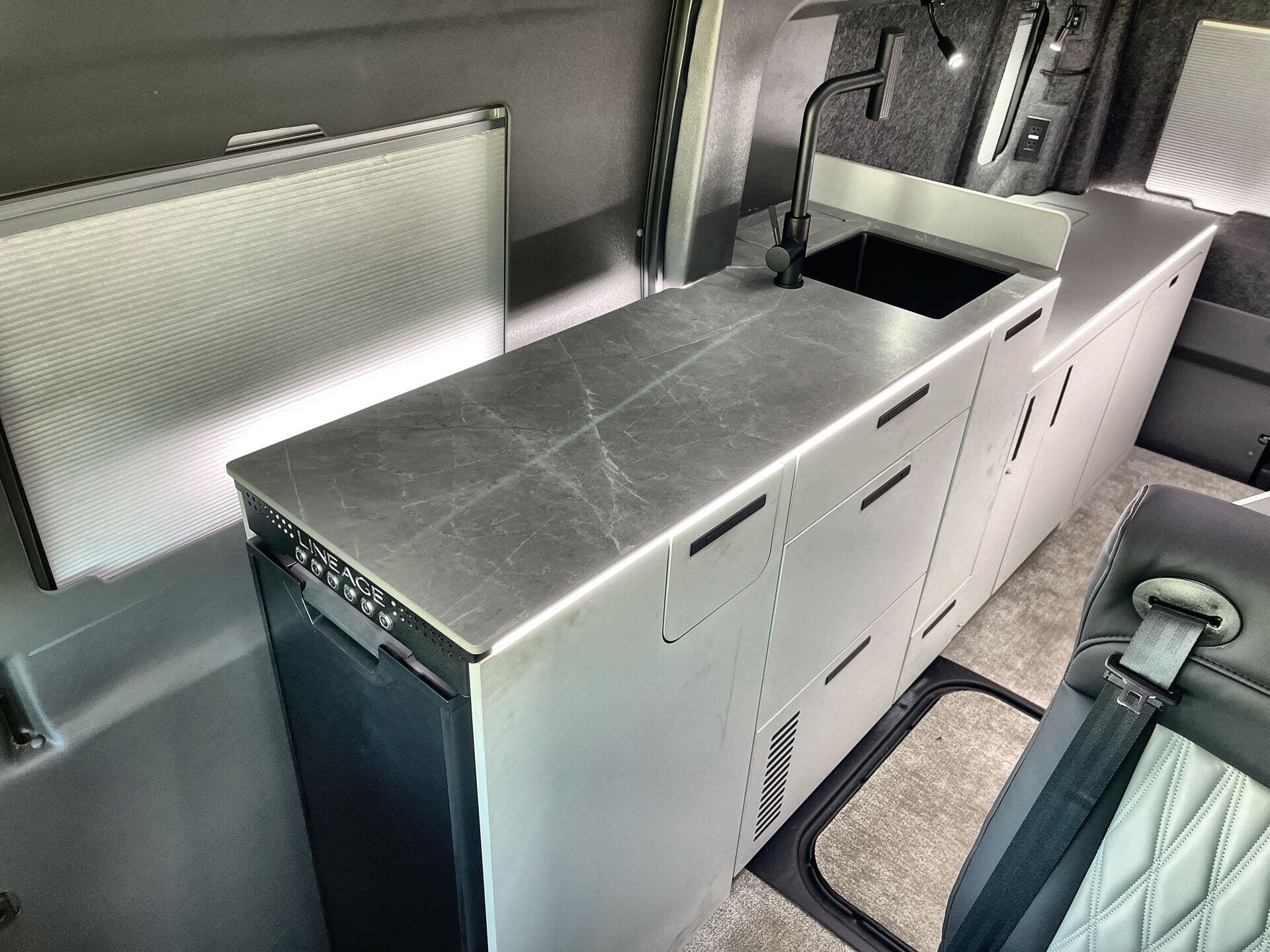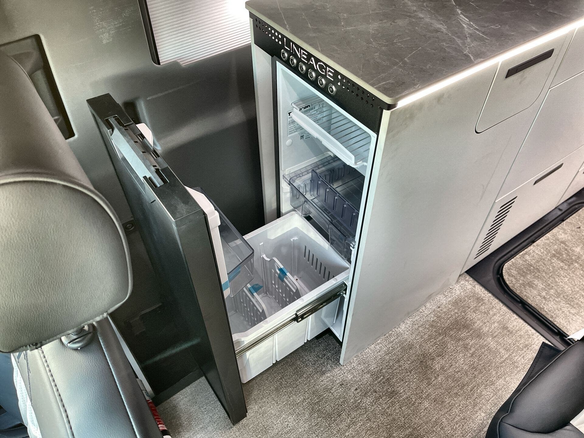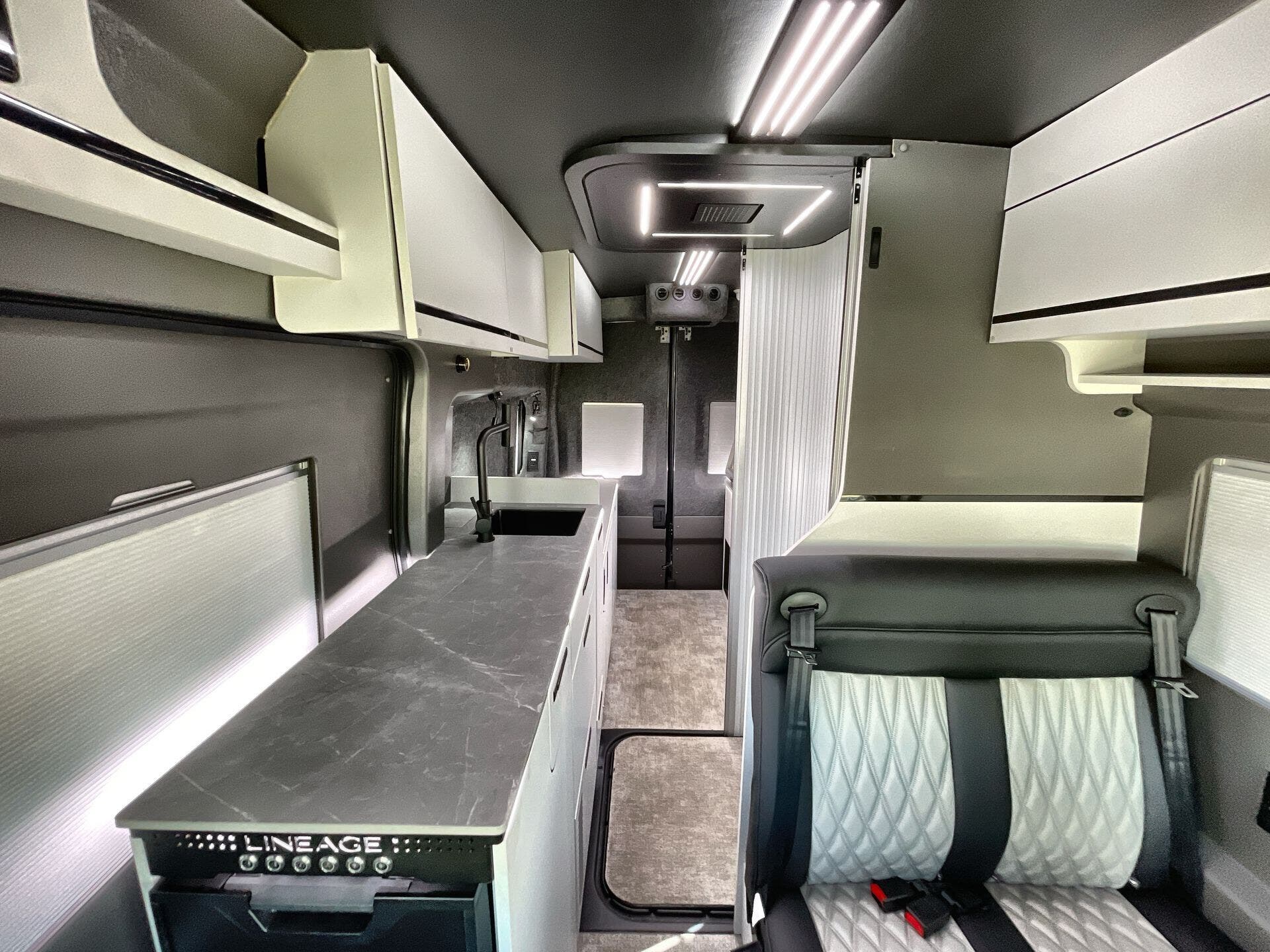 This Grand Design Lineage Class B motorhome offers a refined balance of compact footprint and essential RV conveniences. It’s an excellent choice for couples who want the freedom of travel without the bulk of a larger motorhome. The combination of a modern layout, generous fresh-water capacity, and thoughtful safety features ensures comfortable living on short trips or longer getaways, all while maintaining easy maneuverability on various roads and campsites.