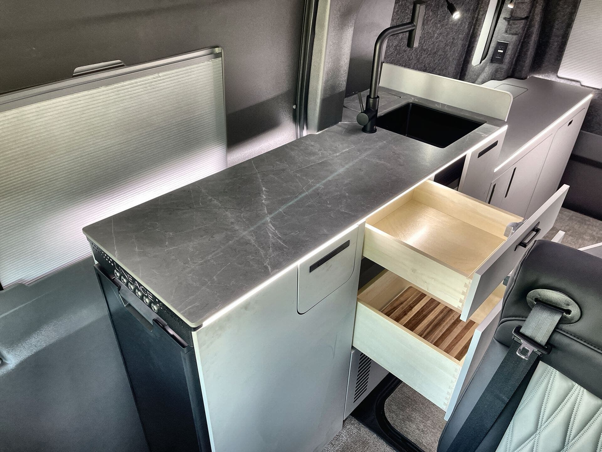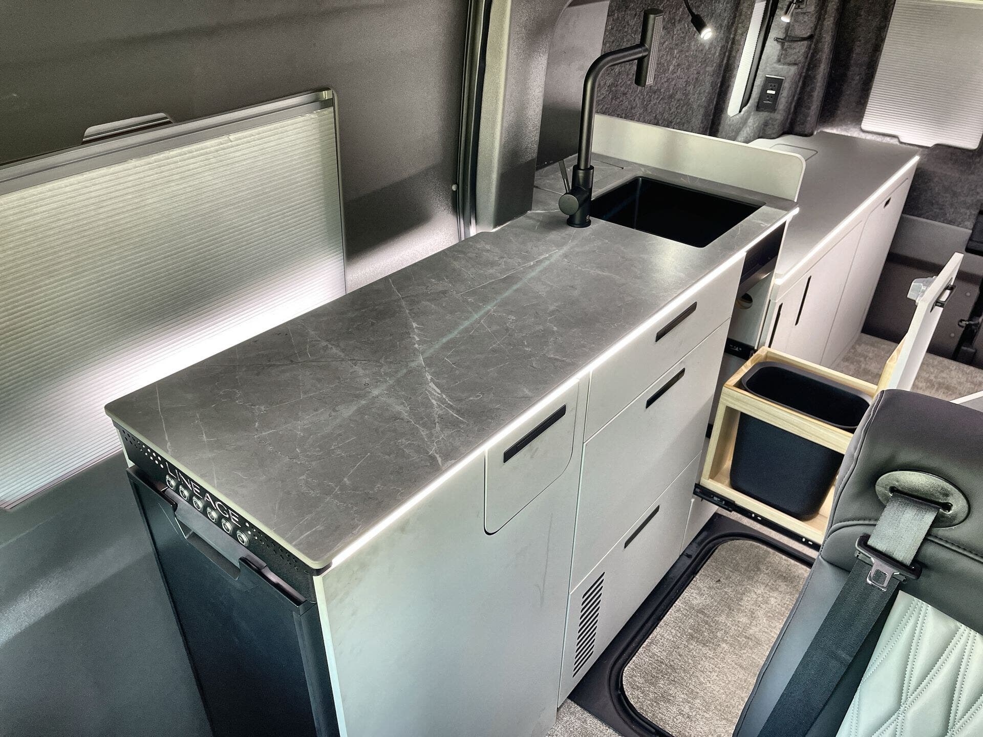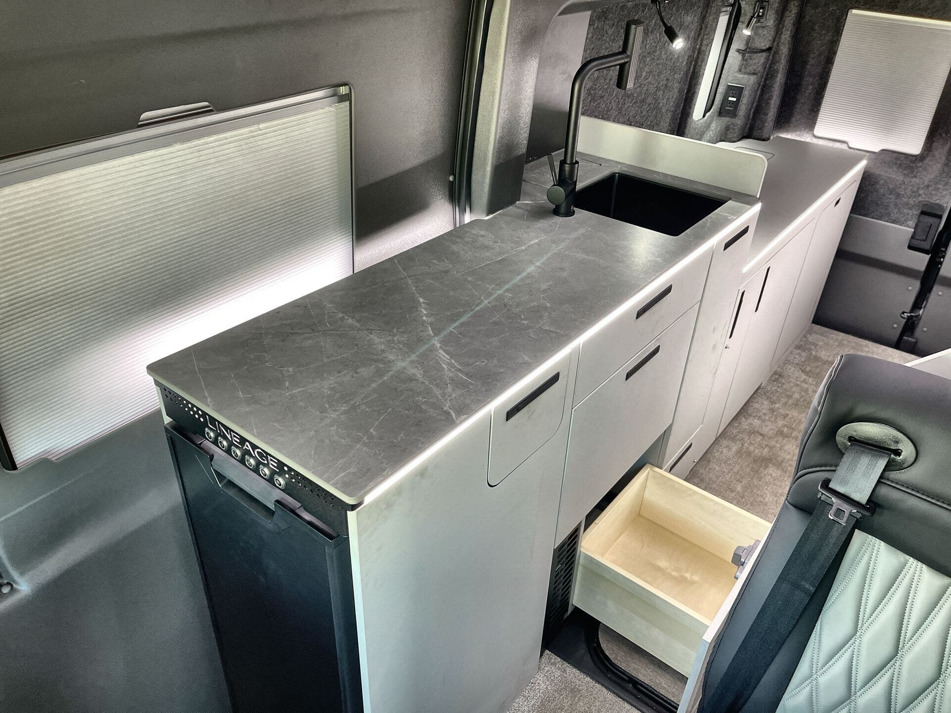 This Grand Design Lineage Class B motorhome offers a refined balance of compact footprint and essential RV conveniences. It’s an excellent choice for couples who want the freedom of travel without the bulk of a larger motorhome. The combination of a modern layout, generous fresh-water capacity, and thoughtful safety features ensures comfortable living on short trips or longer getaways, all while maintaining easy maneuverability on various roads and campsites.