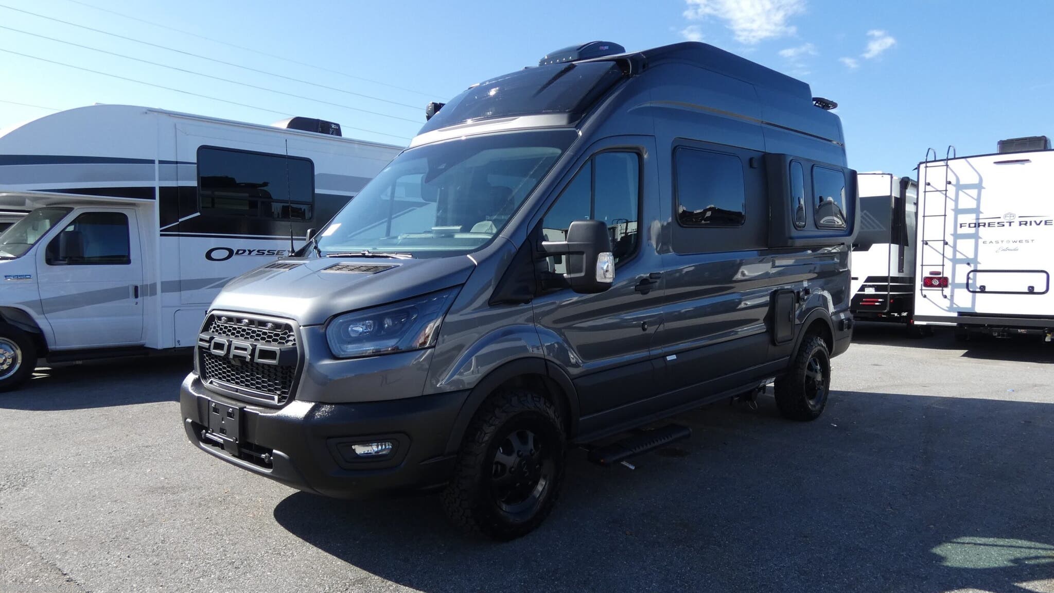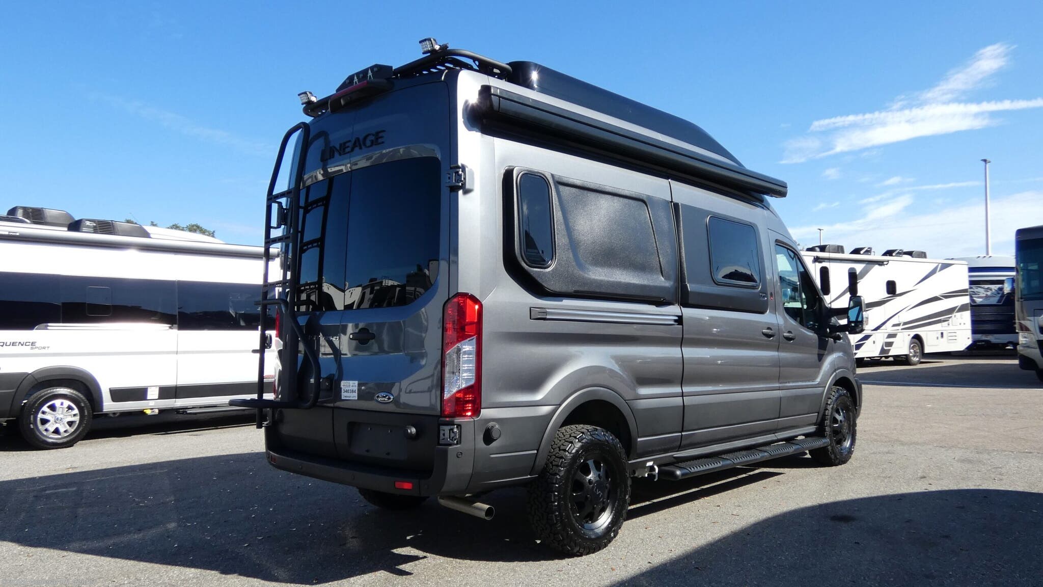 Grand Design Lineage Series VT Class B gas motorhome LVT1 highlights: Rear Bed Exterior Awning Sliding Door Overhead Cabinets All-Wheel Drive This luxury motorhome for the modern adventurer will be your favorite! The flip-up bed provides a comfortable sleeping area, perfect for restful nights on the road. The entertainment spot is provided in the motorized projector screen, which is ideal for movie nights, sporting events, or presentations, making it a great way to unwind or entertain friends and family. The bathroom provides a private and convenient space for personal needs, and the kitchen features an undermount cooktop, perfect for preparing your favorite meals, 3.2 cu. ft. refrigerator for keeping perishables fresh, and a sink for easy cleanup. The exterior awning provides shade and protection from the elements, while the sliding door offers easy access and added convenience. Immerse yourself in the ultimate travel experience with our stunning Grand Design Lineage Series VT Class B motorhomes, built on the robust Ford W2XC T350 chassis. These motorhomes are equipped with a 3.5L V6 engine, providing the perfect balance of power and efficiency. You can stay connected and powered up on the go with our 400-watt solar system and 30-amp power shore connection, ideal for enjoying the freedom to boondock or staying connected to the grid with ease. Inside, you will indulge in the elegance of the interior design while traveling in an at-home experience. From the comfort of your bed to the convenience of a well-equipped kitchen, every detail has been thoughtfully designed to make you feel right at home!