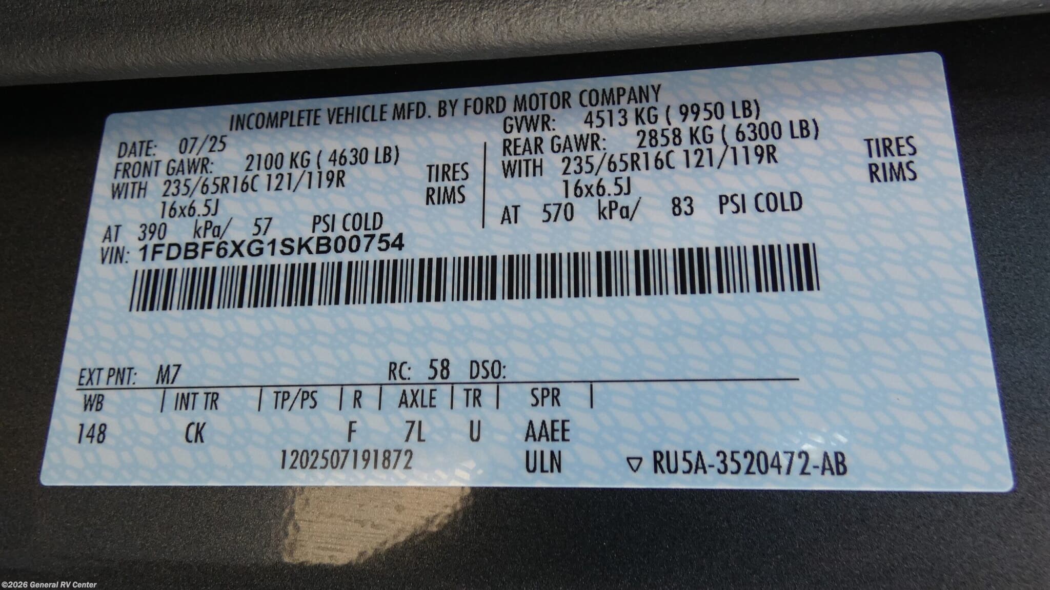 - VIN1FDBF6XG1SKB00754