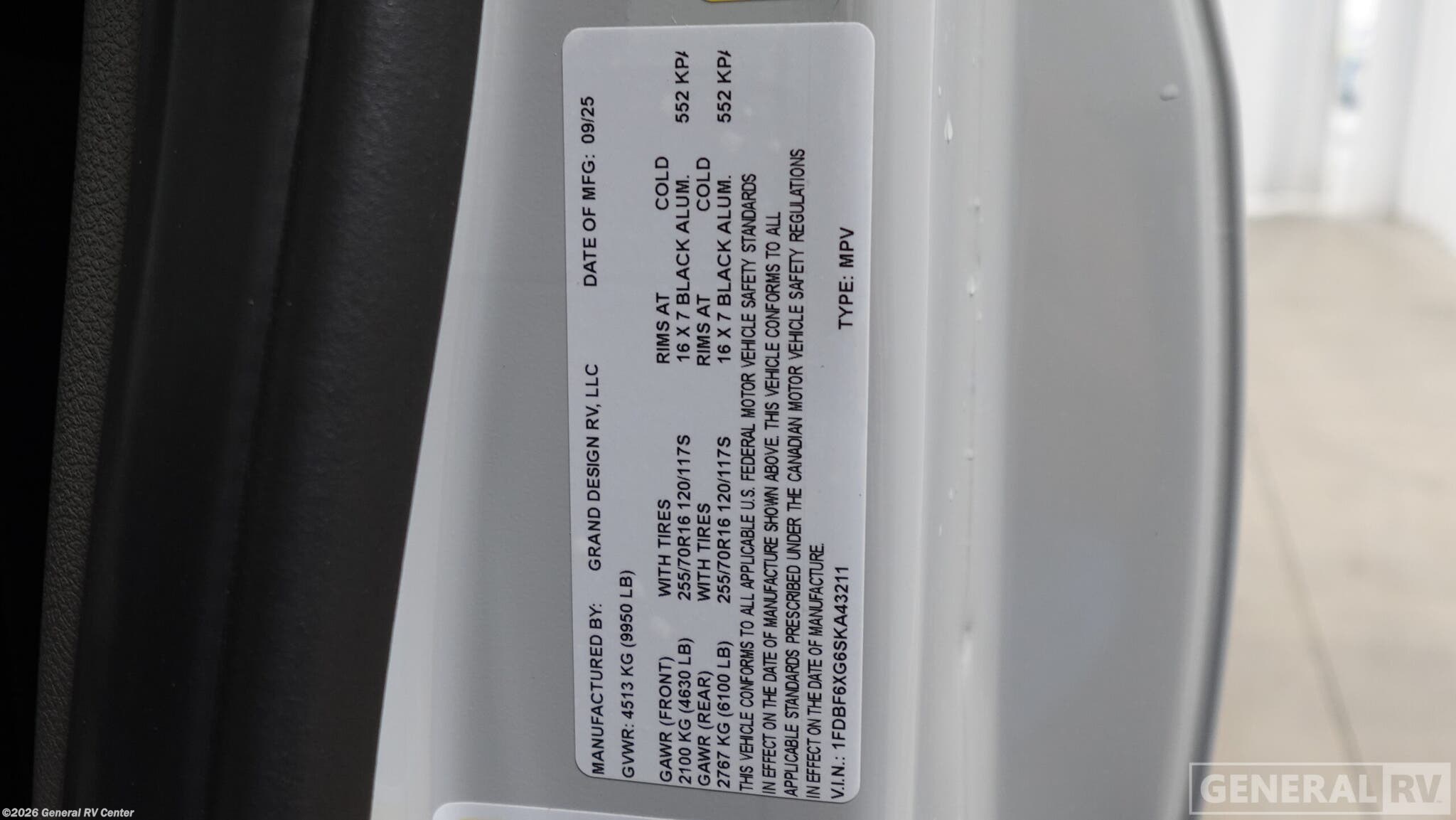 Grand Design Lineage Series VT Class B gas motorhome LVT1 highlights: Rear Bed Exterior Awning Sliding Door Overhead Cabinets All-Wheel Drive This luxury motorhome for the modern adventurer will be your favorite! The flip-up bed provides a comfortable sleeping area, perfect for restful nights on the road. The entertainment spot is provided in the motorized projector screen, which is ideal for movie nights, sporting events, or presentations, making it a great way to unwind or entertain friends and family. The bathroom provides a private and convenient space for personal needs, and the kitchen features an undermount cooktop, perfect for preparing your favorite meals, 3.2 cu. ft. refrigerator for keeping perishables fresh, and a sink for easy cleanup. The exterior awning provides shade and protection from the elements, while the sliding door offers easy access and added convenience. Immerse yourself in the ultimate travel experience with our stunning Grand Design Lineage Series VT Class B motorhomes, built on the robust Ford W2XC T350 chassis. These motorhomes are equipped with a 3.5L V6 engine, providing the perfect balance of power and efficiency. You can stay connected and powered up on the go with our 400-watt solar system and 30-amp power shore connection, ideal for enjoying the freedom to boondock or staying connected to the grid with ease. Inside, you will indulge in the elegance of the interior design while traveling in an at-home experience. From the comfort of your bed to the convenience of a well-equipped kitchen, every detail has been thoughtfully designed to make you feel right at home!