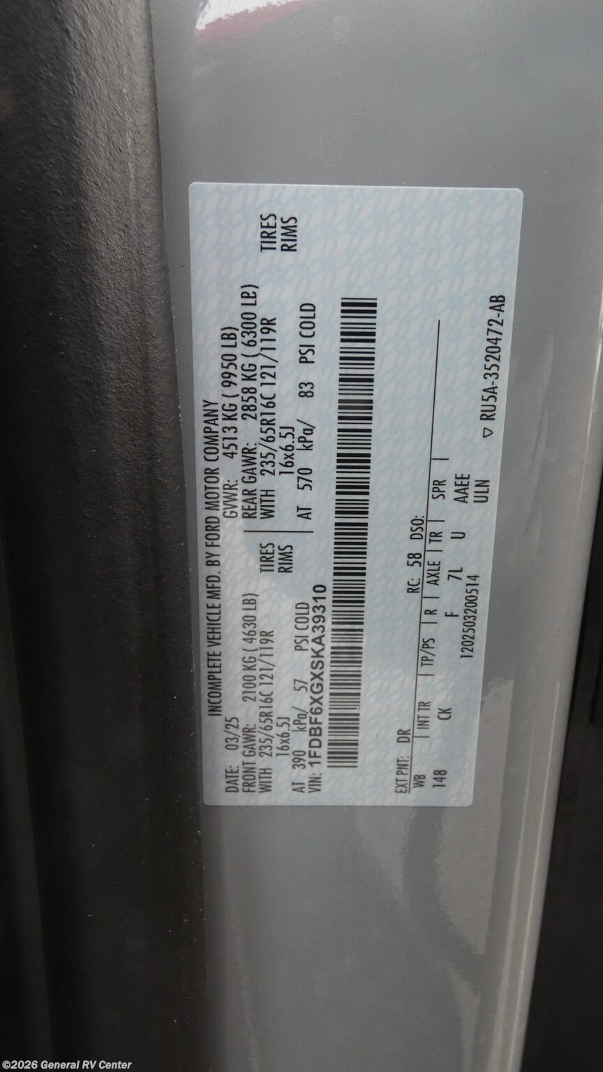 - VIN1FDBF6XGXSKA39310