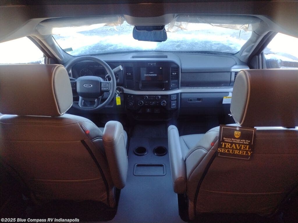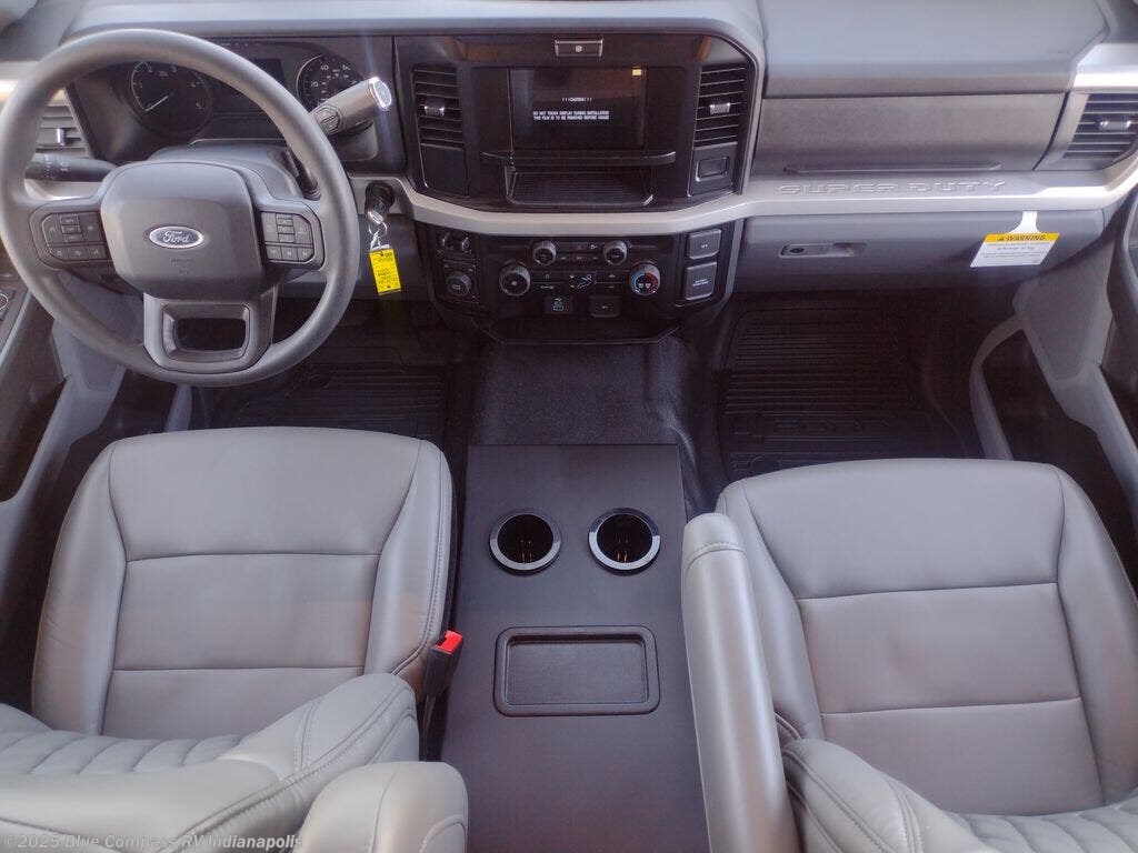 The capable Lineage Series F Super C diesel motorhome by Grand Design is your ticket to adventure! There is a Fox Factory Suspension Package for optimal handling, and you can go off the beaten path with the 6.7L power stroke diesel 4x4 chassis. This coach sits on the Ford F-600 super duty platform, and features a MorRyde tubular steel frame for added strength and durability. You'll find many at-home comforts inside, including comfortable seating and sleeping spaces, full bath and kitchen amenities, and plenty of storage for your personal belongings and camp gear!