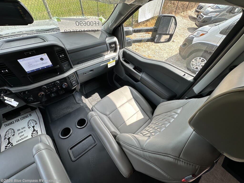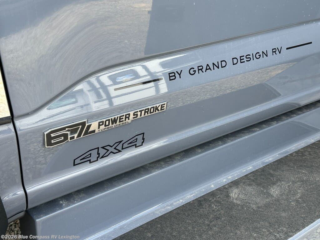 The capable Lineage Series F Super C diesel motorhome by Grand Design is your ticket to adventure! There is a Fox Factory Suspension Package for optimal handling, and you can go off the beaten path with the 6.7L power stroke diesel 4x4 chassis. This coach sits on the Ford F-600 super duty platform, and features a MorRyde tubular steel frame for added strength and durability. You'll find many at-home comforts inside, including comfortable seating and sleeping spaces, full bath and kitchen amenities, and plenty of storage for your personal belongings and camp gear!