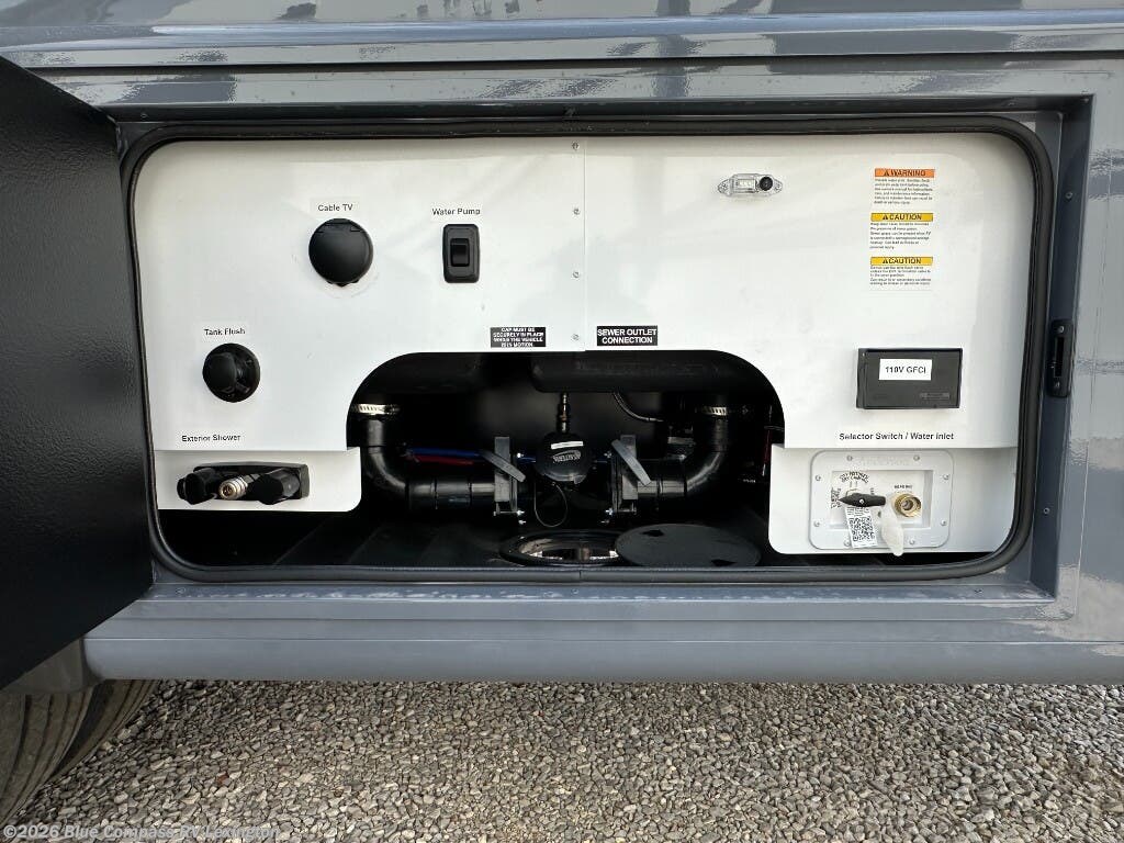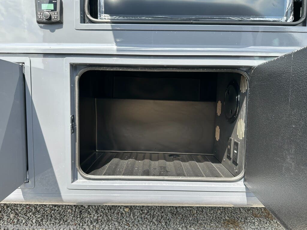 You can be sure to enjoy the journey and the stay in this coach! Once you stop for the day, you can make lunch with the kitchen appliances, then dine at the booth dinette within the large slide out. There is also power theater seating here across from a TV for easy viewing. A 10 cu. ft. 12V refrigerator and pantry will let you keep food stocked, and the closet with washer and dryer prep gives you the option to add these appliances. The 70" x 80" king bed slide is sure to provide a great night's rest, and there is a wardrobe to keep your things tidy. And of course, a full rear corner bath onboard makes staying fresh easier than ever!