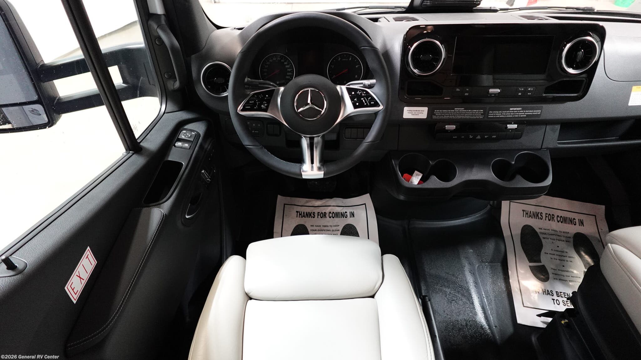 Grand Design Lineage Series M Class C diesel motorhome 25TK highlights: 10 cu. Refrigerator 16' Awning Full Bath Power Theater Seating Pantry Perfect for couples or families who love to travel in style, this motorhome has everything you wish for in a coach. The rear twin beds convert to a king-sized bed, providing a spacious and comfortable sleeping area for two. The full bathroom is equipped with everything you need for a comfortable stay, providing a convenient spot to freshen up after a long day of exploring. The kitchen is equipped with a 10 cu refrigerator for ample storage, a microwave, and a two-burner cooktop for trying out any trending recipe. In addition, the pantry provides more storage for food and cookware.The 32” smart TVs in the bedroom and living room provide endless entertainment options, while the power seating ensures comfortable viewing angles. The bunk over the cab provides additional sleeping space for kids or adults, and the exterior TV offers an ideal spot to enjoy your favorite shows or sports teams while outdoors. Grand Design's first motorized coach, the Lineage Series M is coming to you with luxurious features at a great value. This Class C diesel motorhome sits on a Mercedes-Benz sprinter chassis for quality and performance you can trust. True to Grand Design's foundation, the Lineage includes interior comforts, durable construction, innovative features, and attention to detail. The Series M Package includes natural teak wood grain, a Lineage Suspension Package, and more. There is also a Blackout Package with black aluminum wheels, a Chromeout Package with chrome aluminum wheels, plus additional packages to enhance your travel experience!