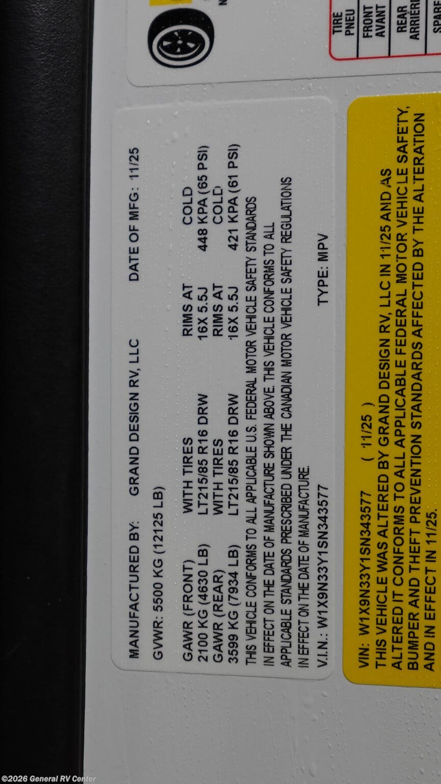 Request More Info on this 2026 Grand Design Lineage Series M 25TK Offered for sale by General RV Center