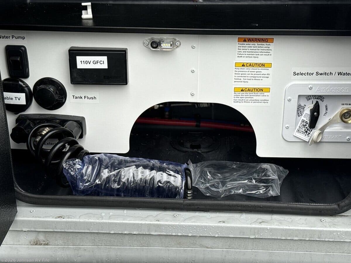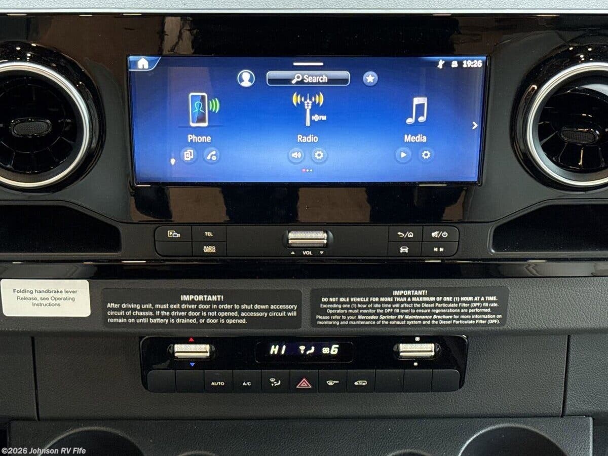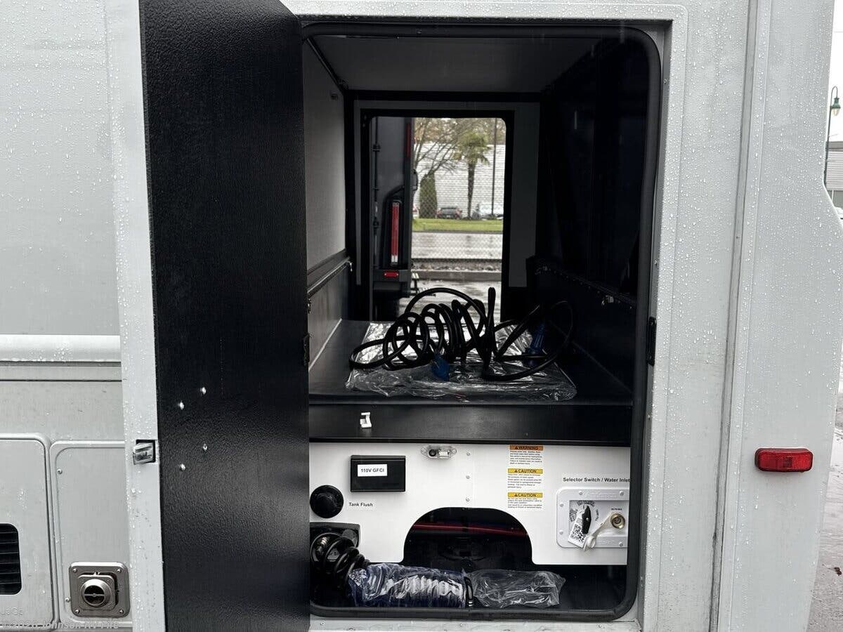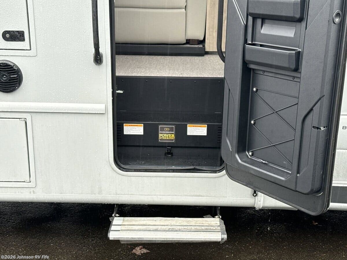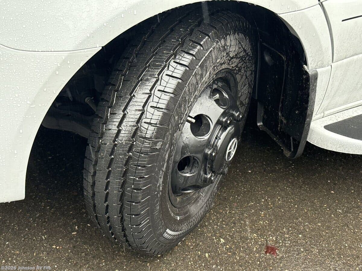 Features Include: Jump Start Terminal, 24.5-Gal Fuel Tank, 5.8-Gal DEF, Active Brake Assist, Acoustic Package, Attention Assist, Crosswind Assist, High Beam Assist, Hill Start Assist, Jump Start Terminal, 6-Wheels, Traction Treads, Bunk Ladder, Acoustic Package, Power, Swivel, Heated, Lumbar Support Seats, USB-C, 12v Outlets, Adjustable, Heated, AM/FM, Apple CarPlay, Android Auto, Dinette 68x42, Stainless Steel Sink, Range Hood, Privacy Curtain, King Bed 70x80, LED Reading Lights, USB Charging Ports, Underbed Storage, Wardrobe Bathroom, Matte Black Faucet, Matte Black Hardware, SeaDek Pad, Porcelain Toilet, 88# LP Tank, 30-Amp Service Cord, Rigid HVAC Ductwork, 20k Furnace, 12v Tank Heat Pads, Black Tank Flush, Rain Gutters, Fiberglass Front Cap, Lighted Belt Rail, Blackout LED Marker, Brake and Taillights