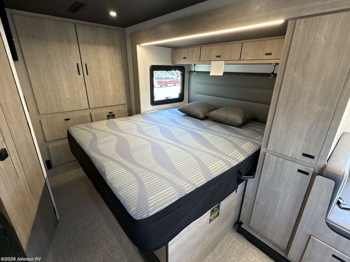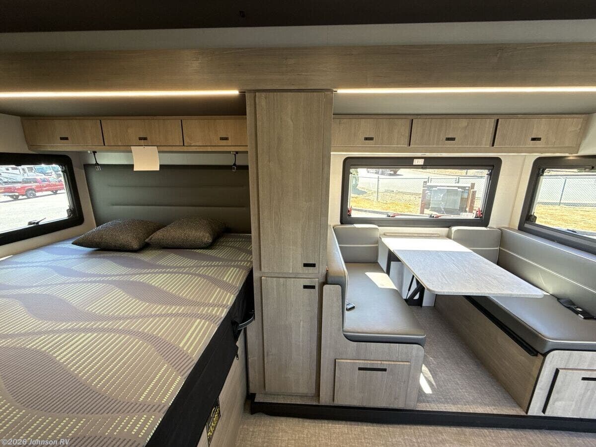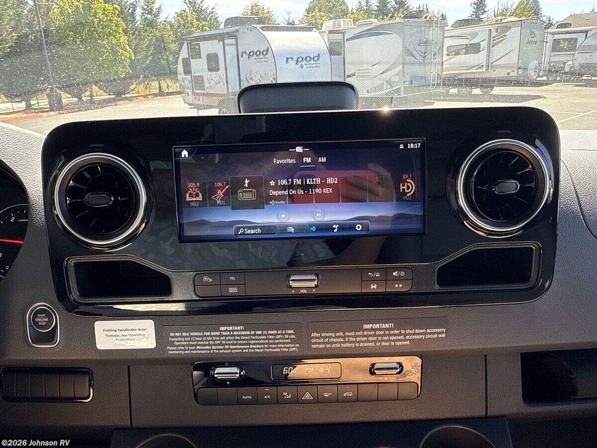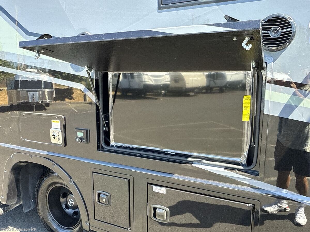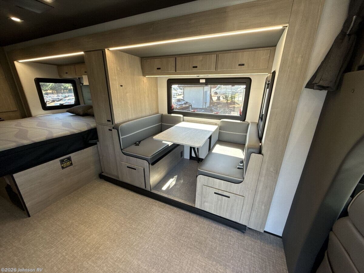 Features Include: Jump Start Terminal, 24.5-Gal Fuel Tank, 5.8-Gal DEF, Active Brake Assist, Acoustic Package, Attention Assist, Crosswind Assist, High Beam Assist, Hill Start Assist, Jump Start Terminal, 6-Wheels, Traction Treads, Bunk Ladder, Acoustic Package, Power, Swivel, Heated, Lumbar Support Seats, USB-C, 12v Outlets, Adjustable, Heated, AM/FM, Apple CarPlay, Android Auto, Dinette 68x42, Stainless Steel Sink, Range Hood, Privacy Curtain, King Bed 70x80, LED Reading Lights, USB Charging Ports, Underbed Storage, Wardrobe Bathroom, Matte Black Faucet, Matte Black Hardware, SeaDek Pad, Porcelain Toilet, 88# LP Tank, 30-Amp Service Cord, Rigid HVAC Ductwork, 20k Furnace, 12v Tank Heat Pads, Black Tank Flush, Rain Gutters, Fiberglass Front Cap, Lighted Belt Rail, Blackout LED Marker, Brake and Taillights