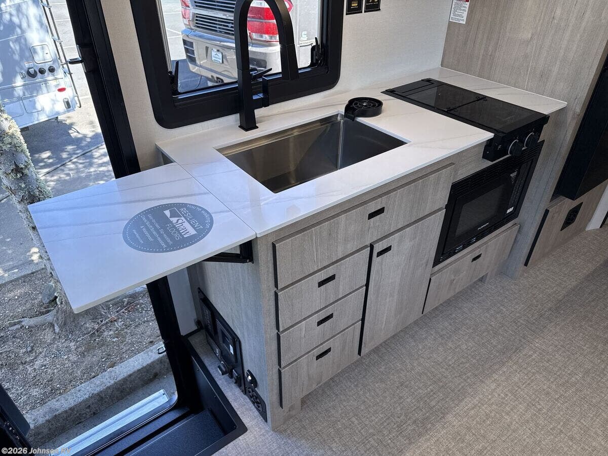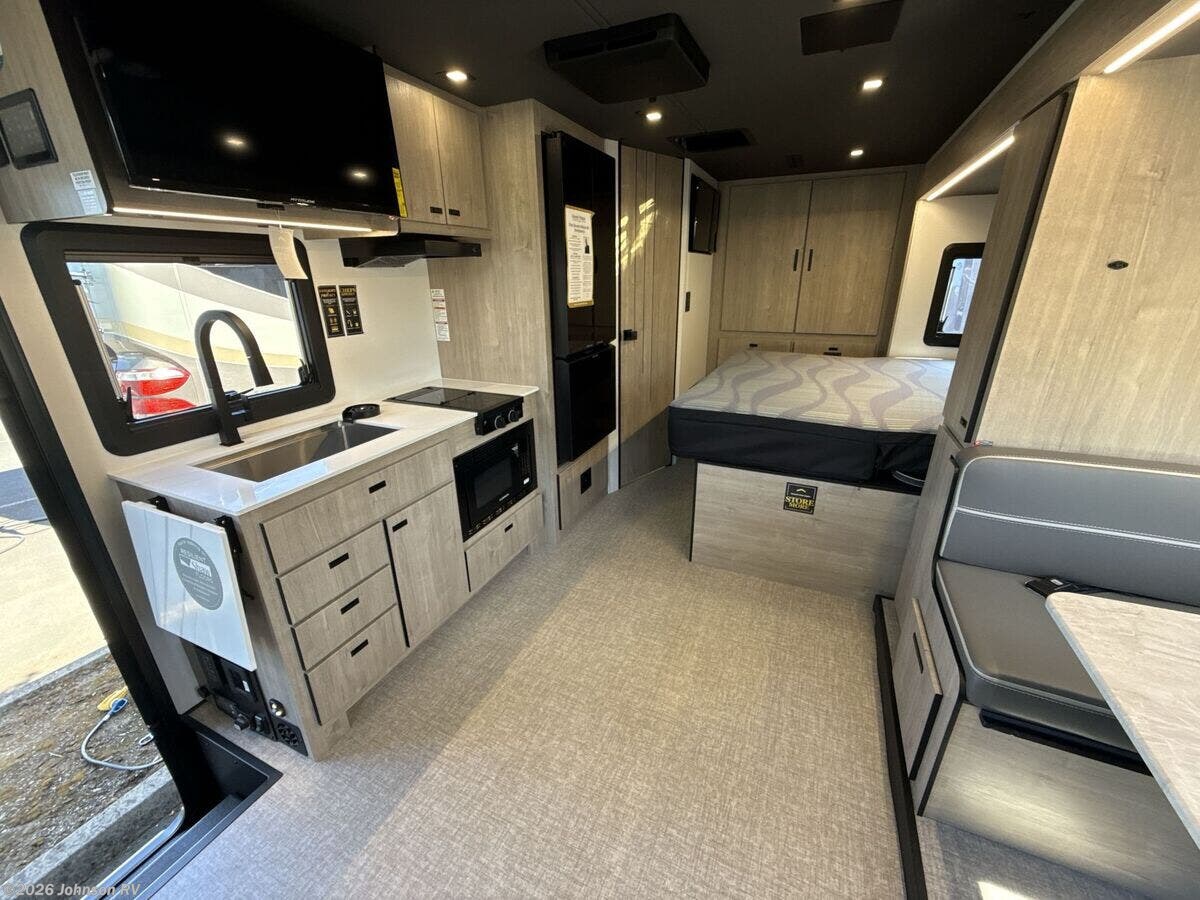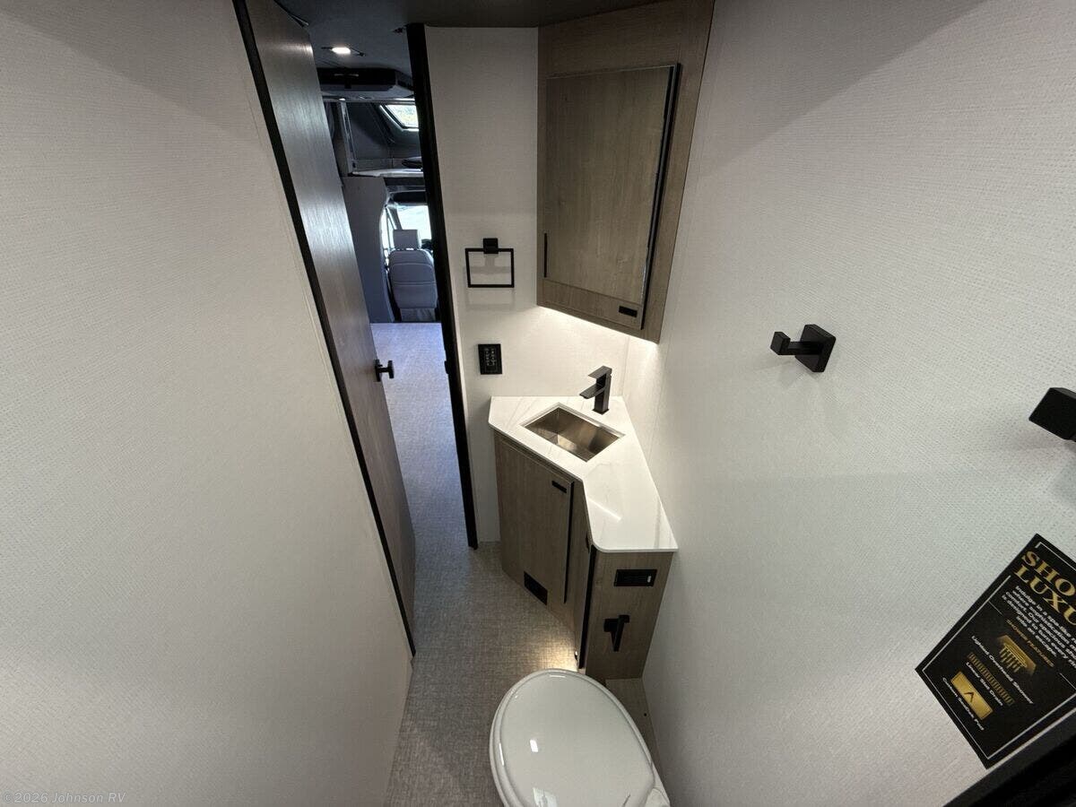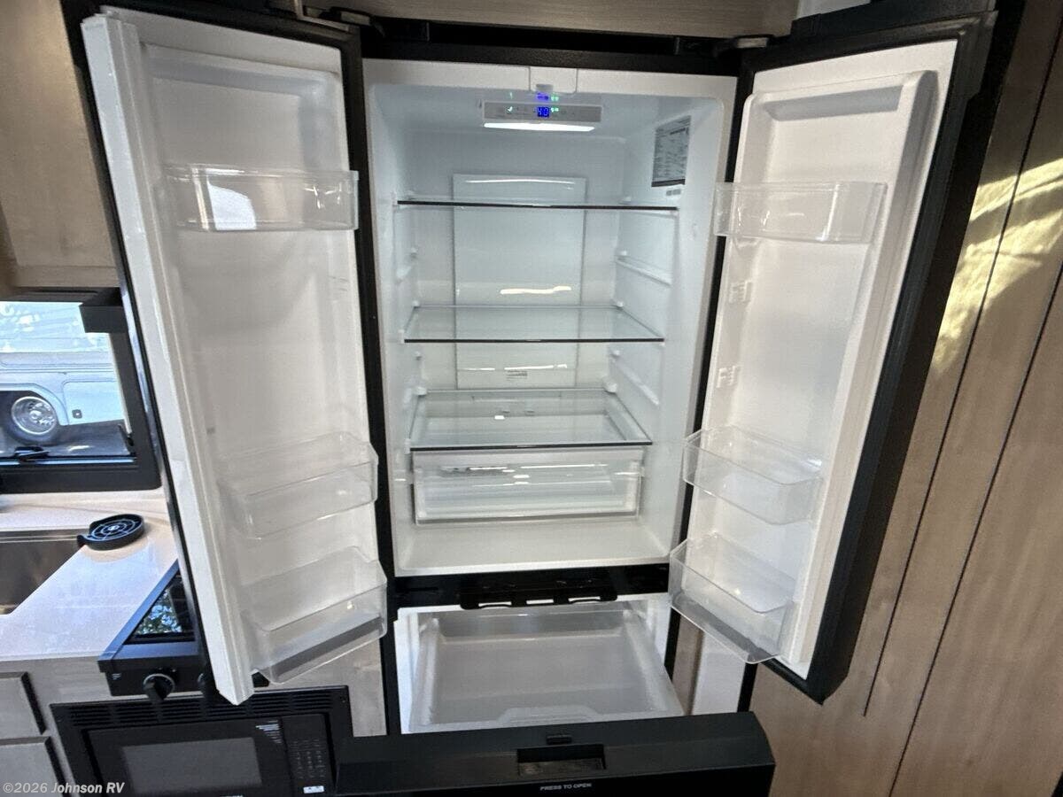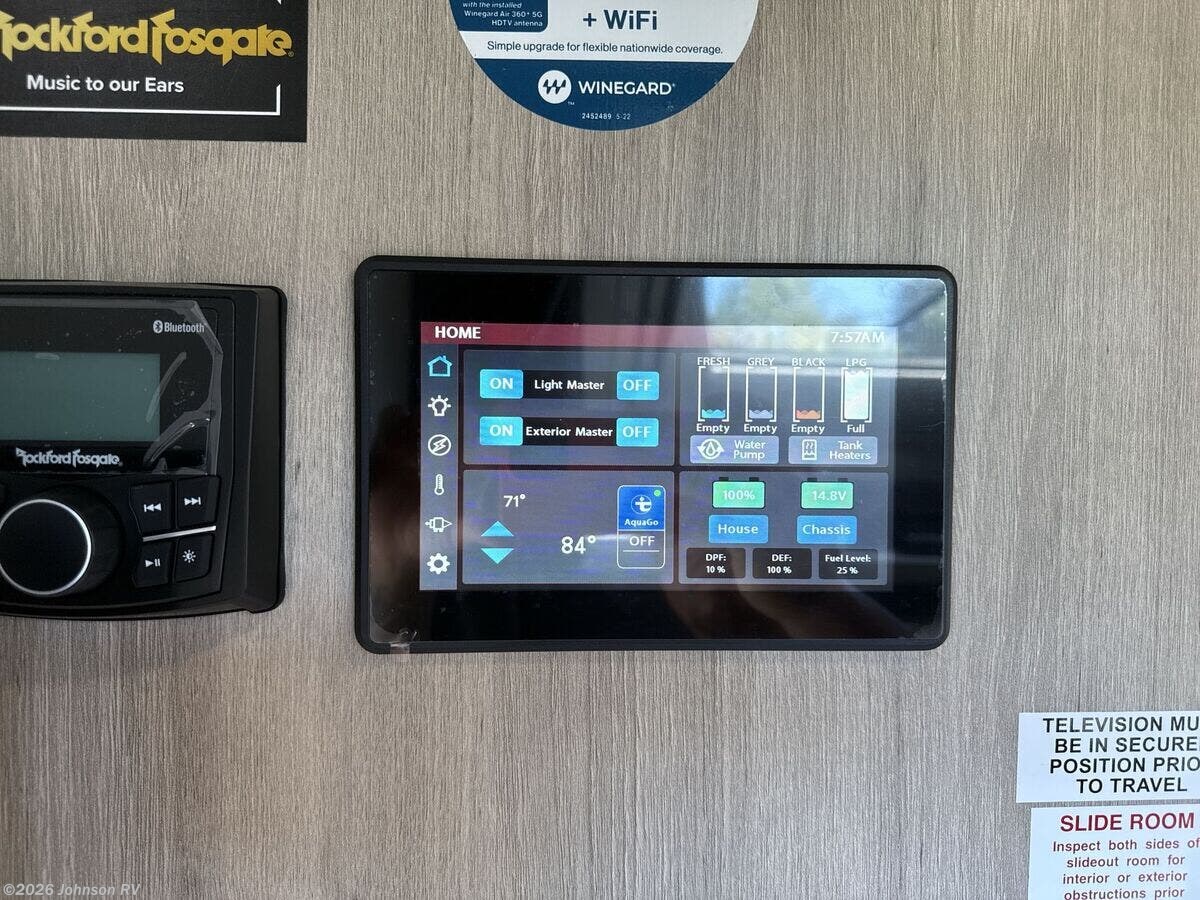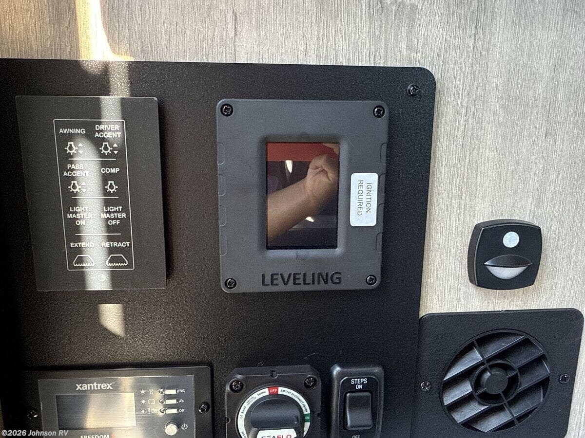 Features Include: Jump Start Terminal, 24.5-Gal Fuel Tank, 5.8-Gal DEF, Active Brake Assist, Acoustic Package, Attention Assist, Crosswind Assist, High Beam Assist, Hill Start Assist, Jump Start Terminal, 6-Wheels, Traction Treads, Bunk Ladder, Acoustic Package, Power, Swivel, Heated, Lumbar Support Seats, USB-C, 12v Outlets, Adjustable, Heated, AM/FM, Apple CarPlay, Android Auto, Dinette 68x42, Stainless Steel Sink, Range Hood, Privacy Curtain, King Bed 70x80, LED Reading Lights, USB Charging Ports, Underbed Storage, Wardrobe Bathroom, Matte Black Faucet, Matte Black Hardware, SeaDek Pad, Porcelain Toilet, 88# LP Tank, 30-Amp Service Cord, Rigid HVAC Ductwork, 20k Furnace, 12v Tank Heat Pads, Black Tank Flush, Rain Gutters, Fiberglass Front Cap, Lighted Belt Rail, Blackout LED Marker, Brake and Taillights