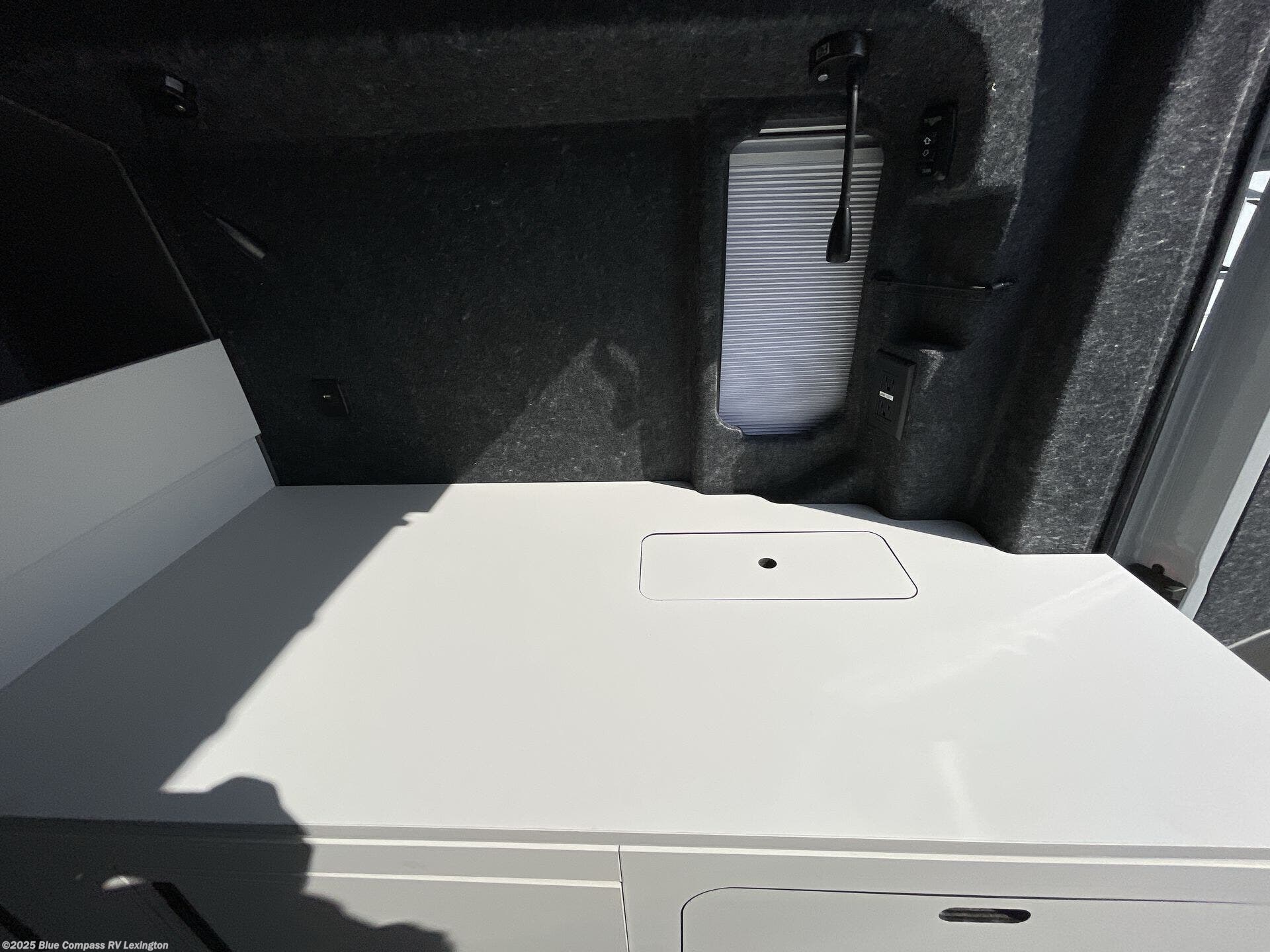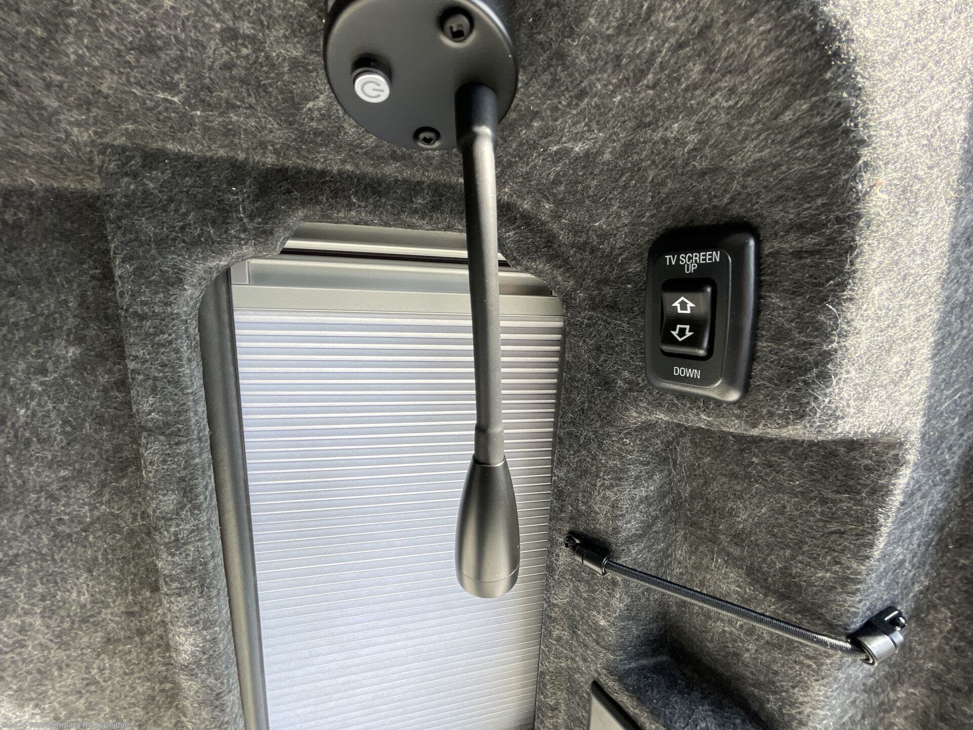 This luxury motorhome for the modern adventurer will be your favorite! The flip-up bed provides a comfortable sleeping area, perfect for restful nights on the road. The entertainment spot is provided in the motorized projector screen, which is ideal for movie nights, sporting events, or presentations, making it a great way to unwind or entertain friends and family. The bathroom provides a private and convenient space for personal needs, and the kitchen features an undermount cooktop, perfect for preparing your favorite meals, 3.2 cu. ft. refrigerator for keeping perishables fresh, and a sink for easy cleanup. The exterior awning provides shade and protection from the elements, while the sliding door offers easy access and added convenience.
