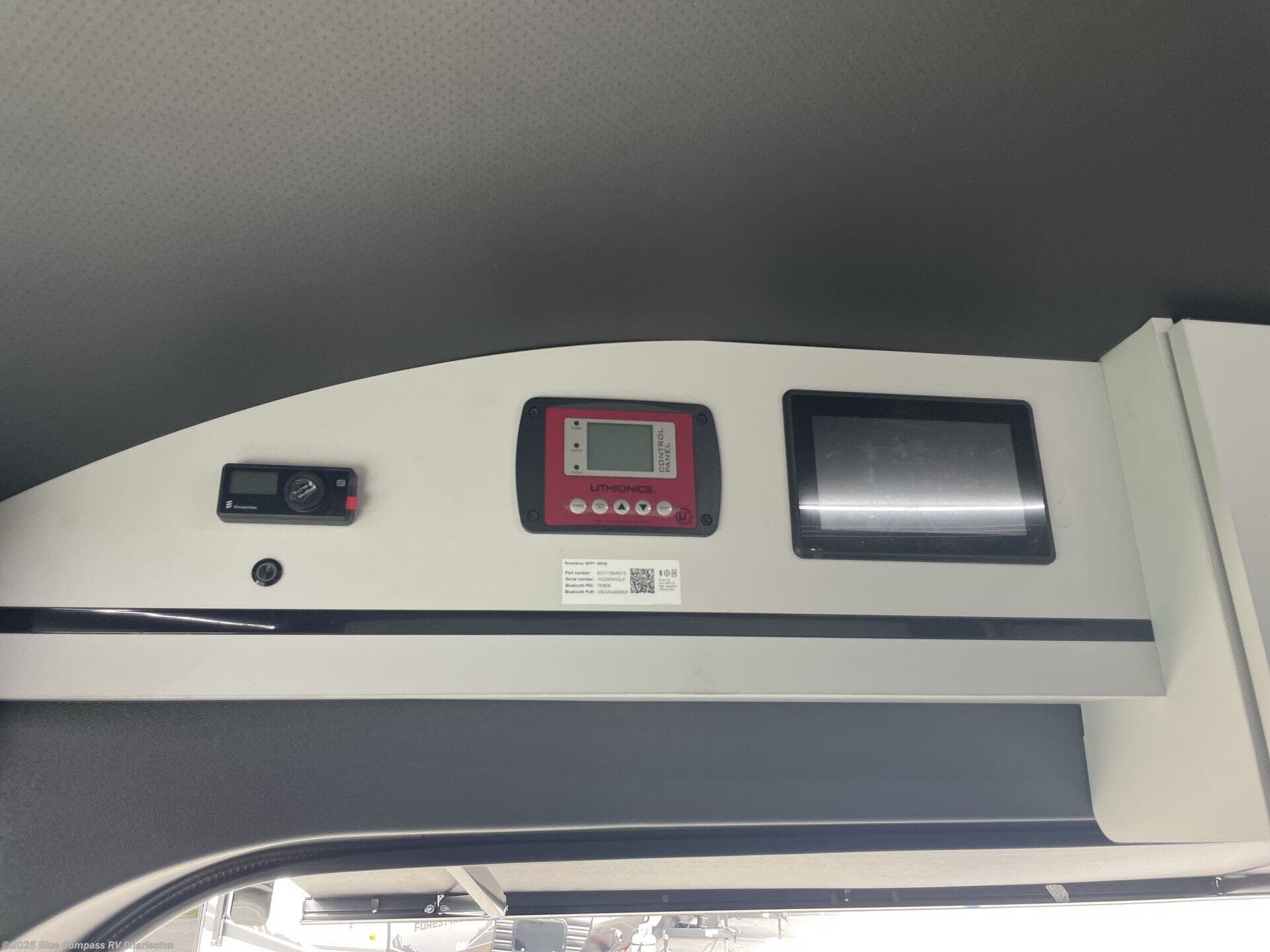 This luxury motorhome for the modern adventurer will be your favorite! The flip-up bed provides a comfortable sleeping area, perfect for restful nights on the road. The entertainment spot is provided in the motorized projector screen, which is ideal for movie nights, sporting events, or presentations, making it a great way to unwind or entertain friends and family. The bathroom provides a private and convenient space for personal needs, and the kitchen features an undermount cooktop, perfect for preparing your favorite meals, 3.2 cu. ft. refrigerator for keeping perishables fresh, and a sink for easy cleanup. The exterior awning provides shade and protection from the elements, while the sliding door offers easy access and added convenience.