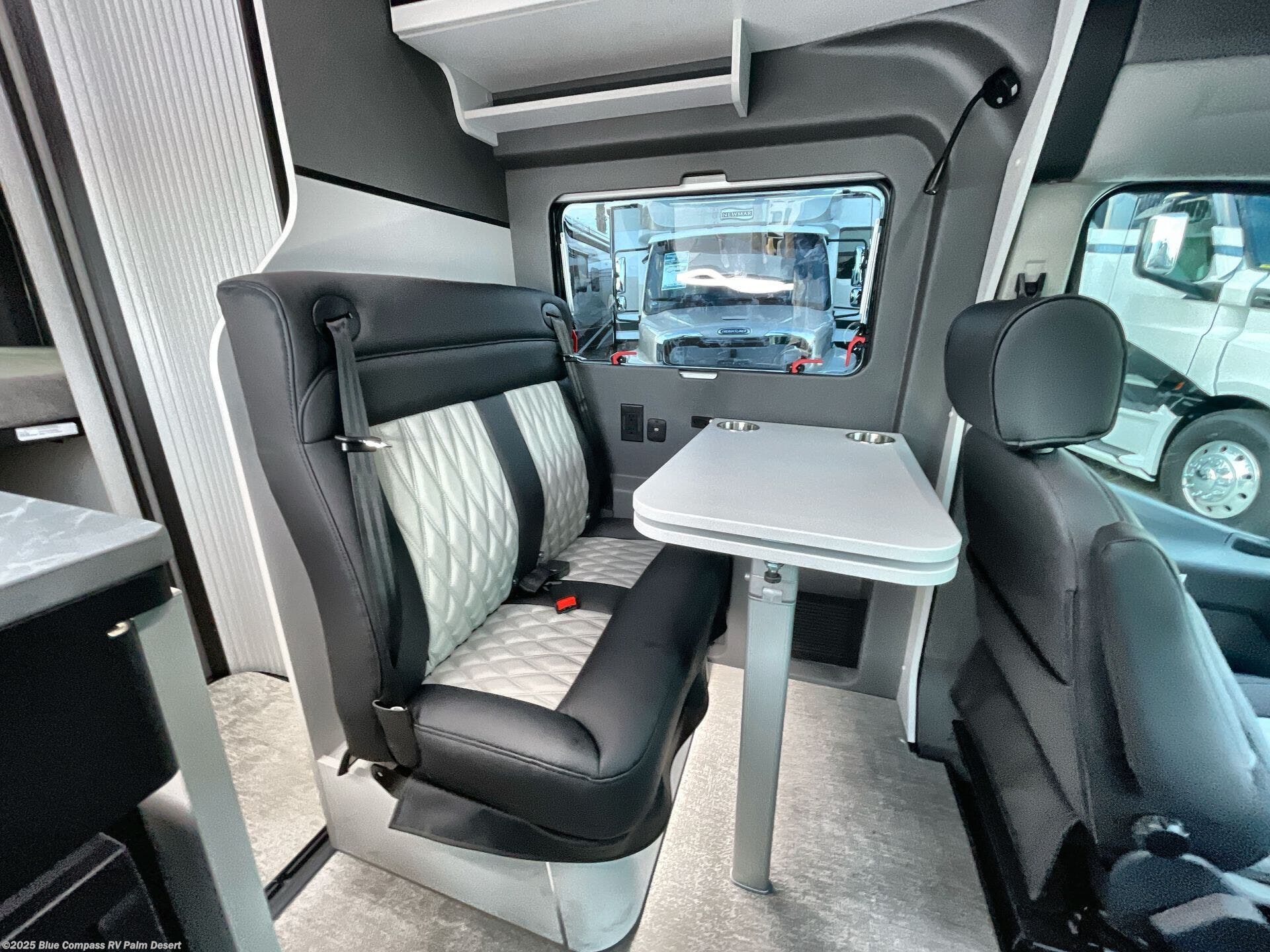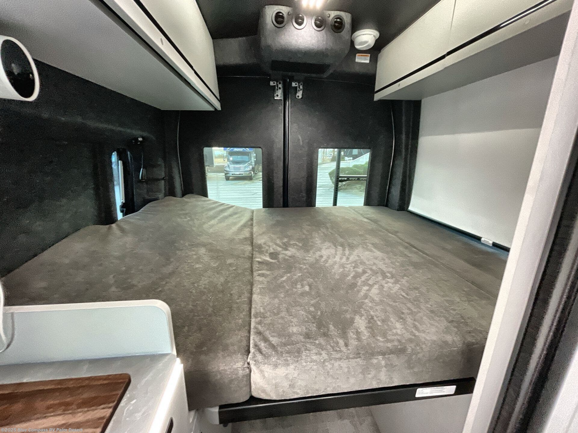 This luxury motorhome for the modern adventurer will be your favorite! The flip-up bed provides a comfortable sleeping area, perfect for restful nights on the road. The entertainment spot is provided in the motorized projector screen, which is ideal for movie nights, sporting events, or presentations, making it a great way to unwind or entertain friends and family. The bathroom provides a private and convenient space for personal needs, and the kitchen features an undermount cooktop, perfect for preparing your favorite meals, 3.2 cu. ft. refrigerator for keeping perishables fresh, and a sink for easy cleanup. The exterior awning provides shade and protection from the elements, while the sliding door offers easy access and added convenience.