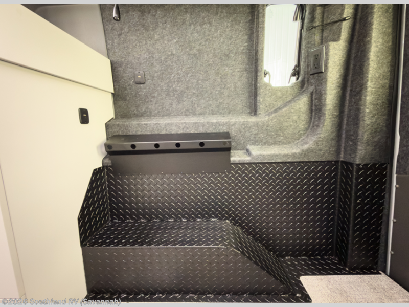 This luxury motorhome for the modern adventurer will be your favorite! The expanding Liftsuite drop-down bed provides a comfortable sleeping area, along with added storage space for your cargo. The entertainment spot is provided in the motorized projector screen, which is ideal for movie nights, sporting events, or presentations, making it a great way to unwind or entertain friends and family. The bathroom provides a private and convenient space for personal needs, and the kitchen features an undermount cooktop, perfect for preparing your favorite meals, a 12V drawer-style refrigerator for keeping perishables fresh, and a sink for easy cleanup. You will also find a side facing chaise lounge up front with a lagun table and two mounting locations for dining or working space! And an optional pop-top can be added for additional sleeping space for guests or little ones!