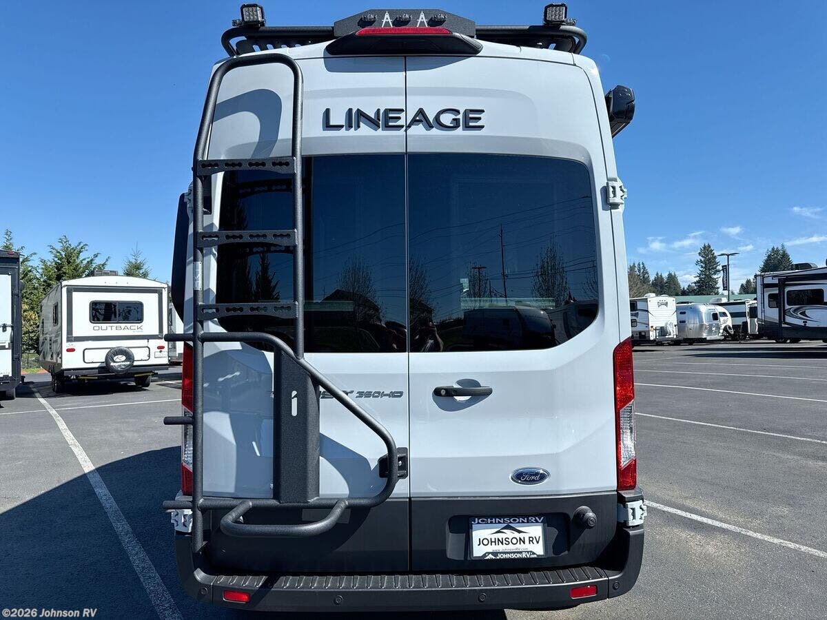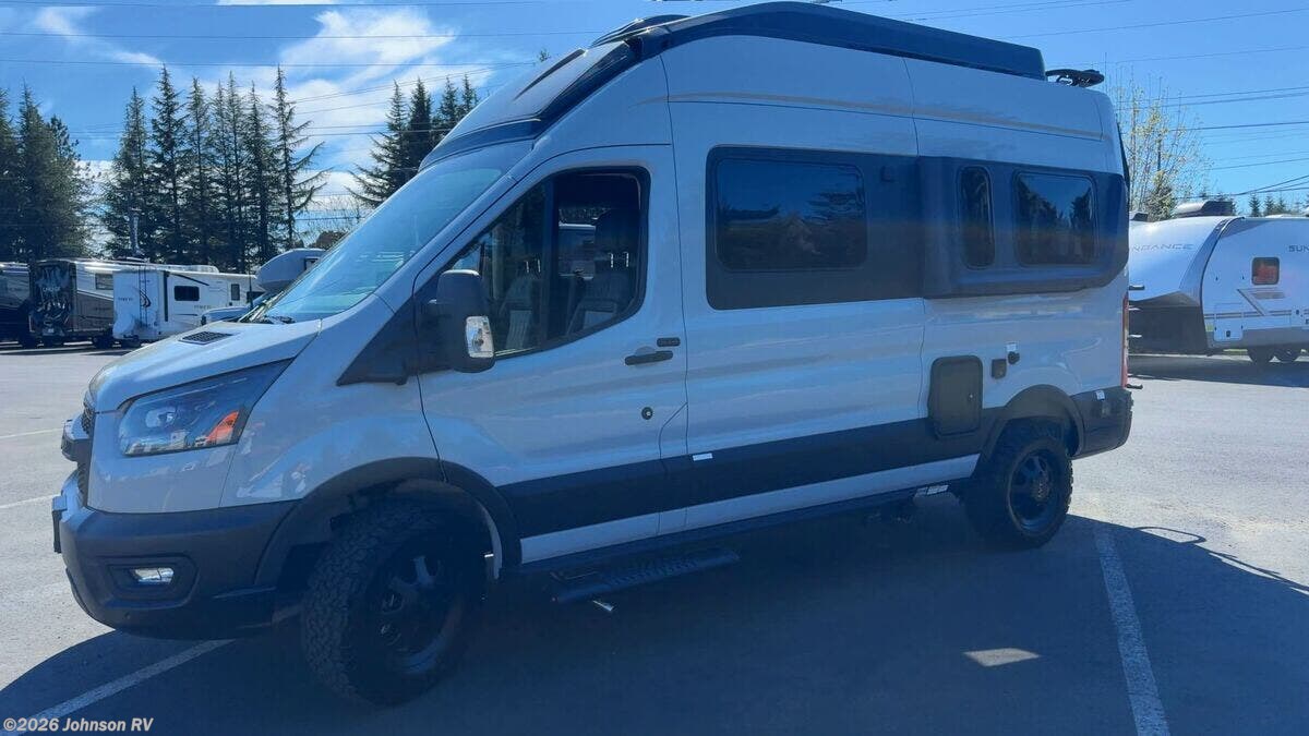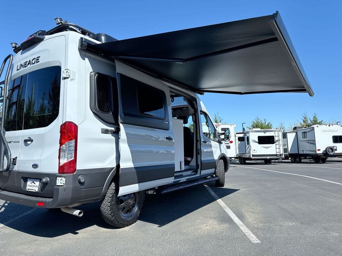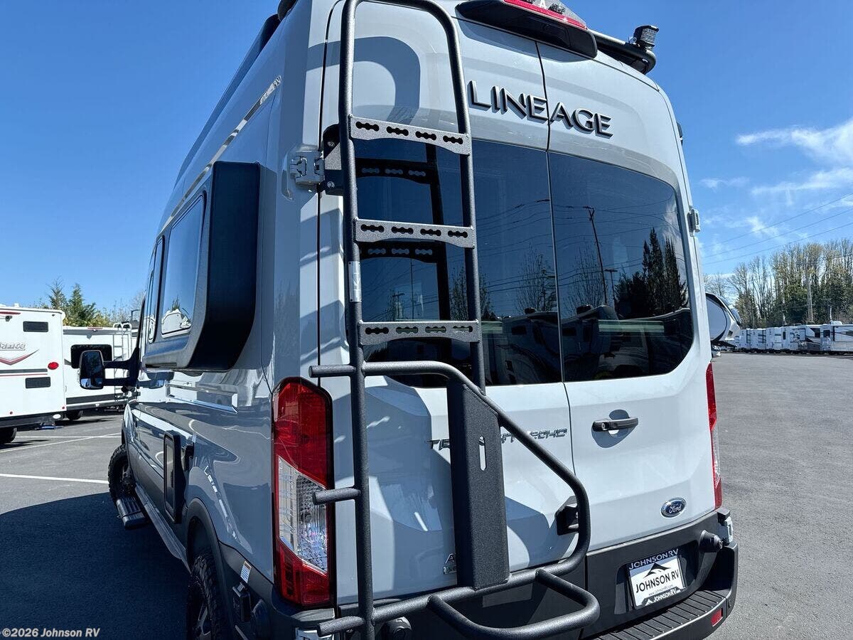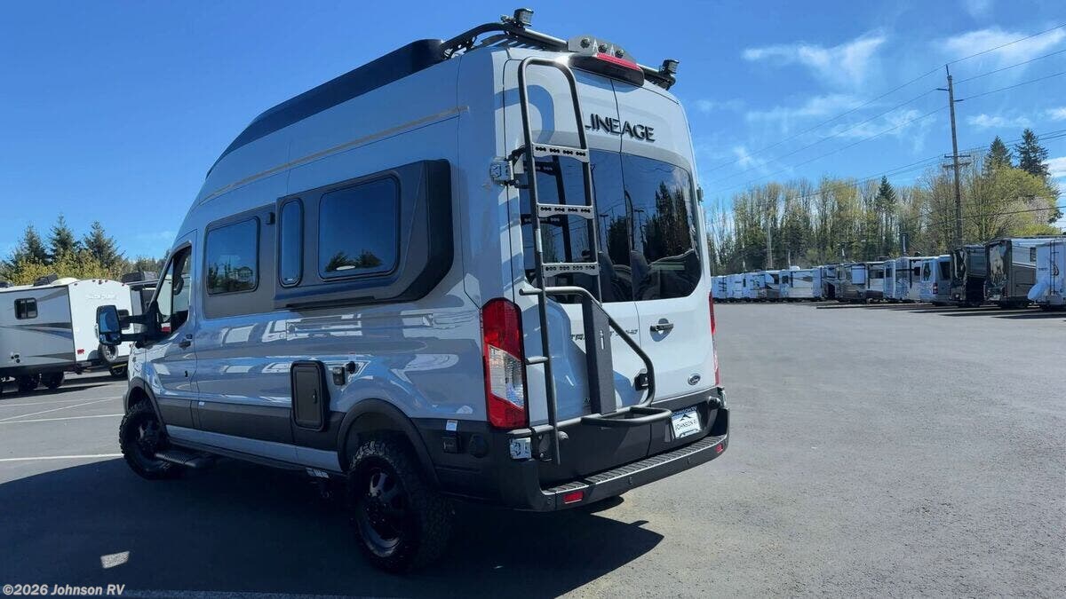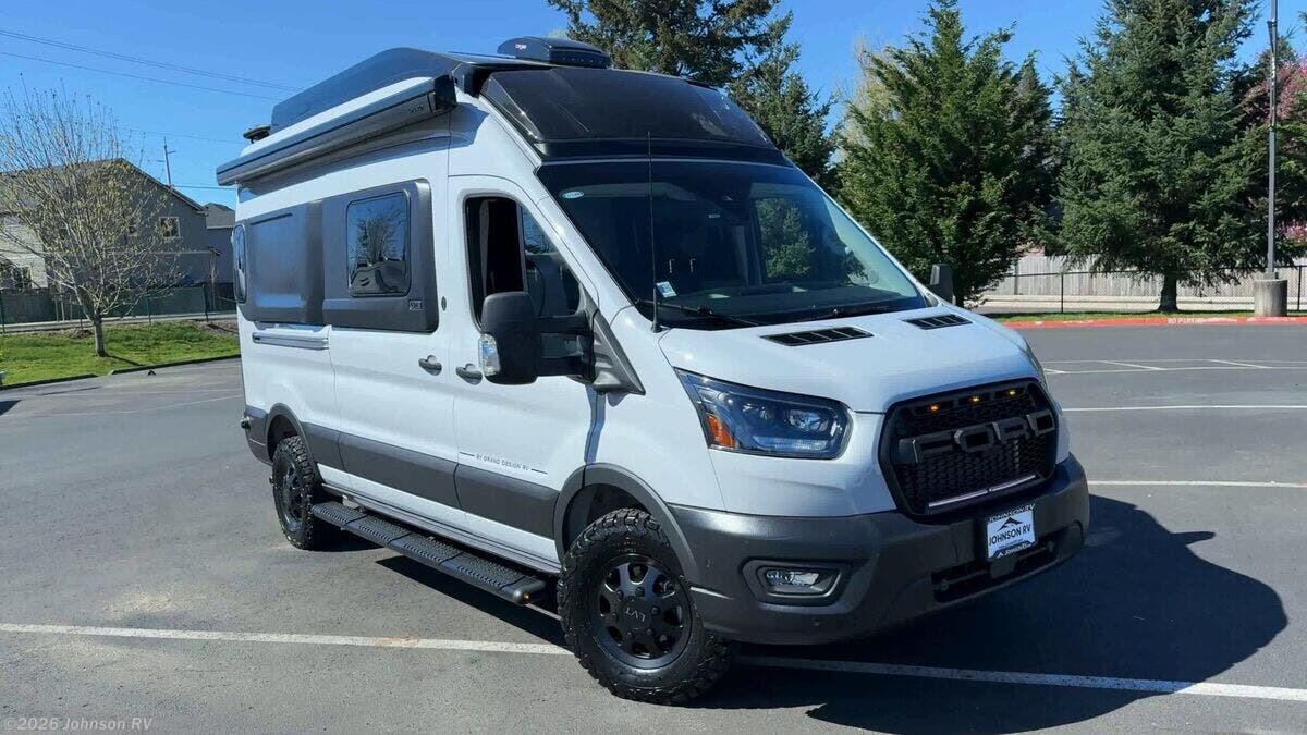 Introducing the 2026 Grand Design Lineage Series VT, a new Class B RV built to provide an exceptional travel experience. With only 107 miles on the odometer, this vehicle pairs innovative technology with high-end design to offer comfort and convenience for your adventures. Under the hood, the Grand Design Lineage Series VT is powered by a 3.5L EcoBoost V6 GTDi engine, delivering an impressive 310 horsepower and 400 lb-ft of torque. Coupled with a 10-speed automatic OD SelectShift transmission and a 3.73 limited slip axle ratio, this RV ensures a smooth and efficient drive. It features Ford's Transit Cargo AWD system with a high roof and a 148-inch wheelbase, supported by 255/70R16 tires and a spare tire carrier. Safety and convenience are prioritized with features such as adaptive cruise control, an antirollover system, electronic stability control, and a side wind stabilization system. The vehicle is equipped with a Blind Spot Information System, cross traffic alert, and side parking sensors to ensure a safer journey. Other amenities include HID high-intensity discharge headlamps and keyless entry keypad for ease of access. The cab is designed for comfort and functionality, featuring Luverne running boards, cockpit privacy shades, and heated swivel custom cover seats. The SYNC 4 system with a 12-inch display offers navigation, 360-degree camera views, and compatibility with Apple CarPlay and Android Auto for seamless connectivity. Inside, the living spaces boast elegance with a soft touch perforated ceiling and Vista double pane acrylic panoramic skylight, complete with integrated window screens and blackout shades. Vinyl laminated cabinetry with positive locking latches ensures secure storage, while dovetail drawer box construction and soft-close drawers add a touch of luxury. Dining is elevated with an expandable dinette table, porcelain countertop, stainless steel sink with a cutting board cover, and a pull-out faucet. Culinary needs are well-catered with a 12V 3.18cf Thetford Refrigerator, an Invisacook hidden induction cooktop, and an air fryer microwave prep area. For audio and electronics, the RV is equipped with a systems center featuring a Firefly Integration Touch Screen, Bluetooth switches, and a phone app. LP, CO, and smoke detectors are installed for safety, and multiple charging ports ensure your devices stay powered. Sleeping accommodations include a versatile expanding lift suite drop-down bed, complete with LED reading lights, USB charge ports, and a Samsung Freestyle projector with a power 50-inch projector screen. Ample underbed storage is available for your personal belongings. The bathroom incorporates thoughtful design with features such as a venting window, medicine cabinet mirror with integrated lighting, tambour style roll-away shower doors, and a rainfall showerhead. A Thetford electric flush cassette toilet and built-in shower storage cubbies add to the convenience. Mechanically, this RV is equipped with two 180w Merlin solar panels, a Victron solar charge controller, and a powerful 51v 8448wH Lithionics battery for sustainable energy solutions. A second battery prep, 30-amp service, and a 3000w Lithionics 51v inverter enhance its electrical capacity. Additional features include a 20k mini split 51v AC, Airtronic gasoline furnace, 12v tank heat pads, and a quick connect outdoor shower for your comfort and convenience. Overall, the 2026 Grand Design Lineage Series VT is thoughtfully engineered with advanced features and premier craftsmanship, ready to make every journey unforgettable.