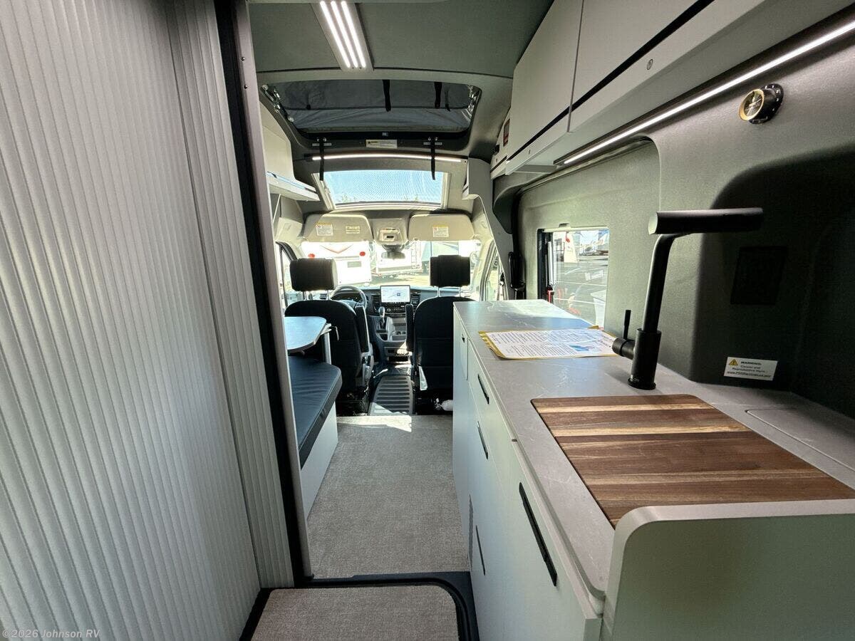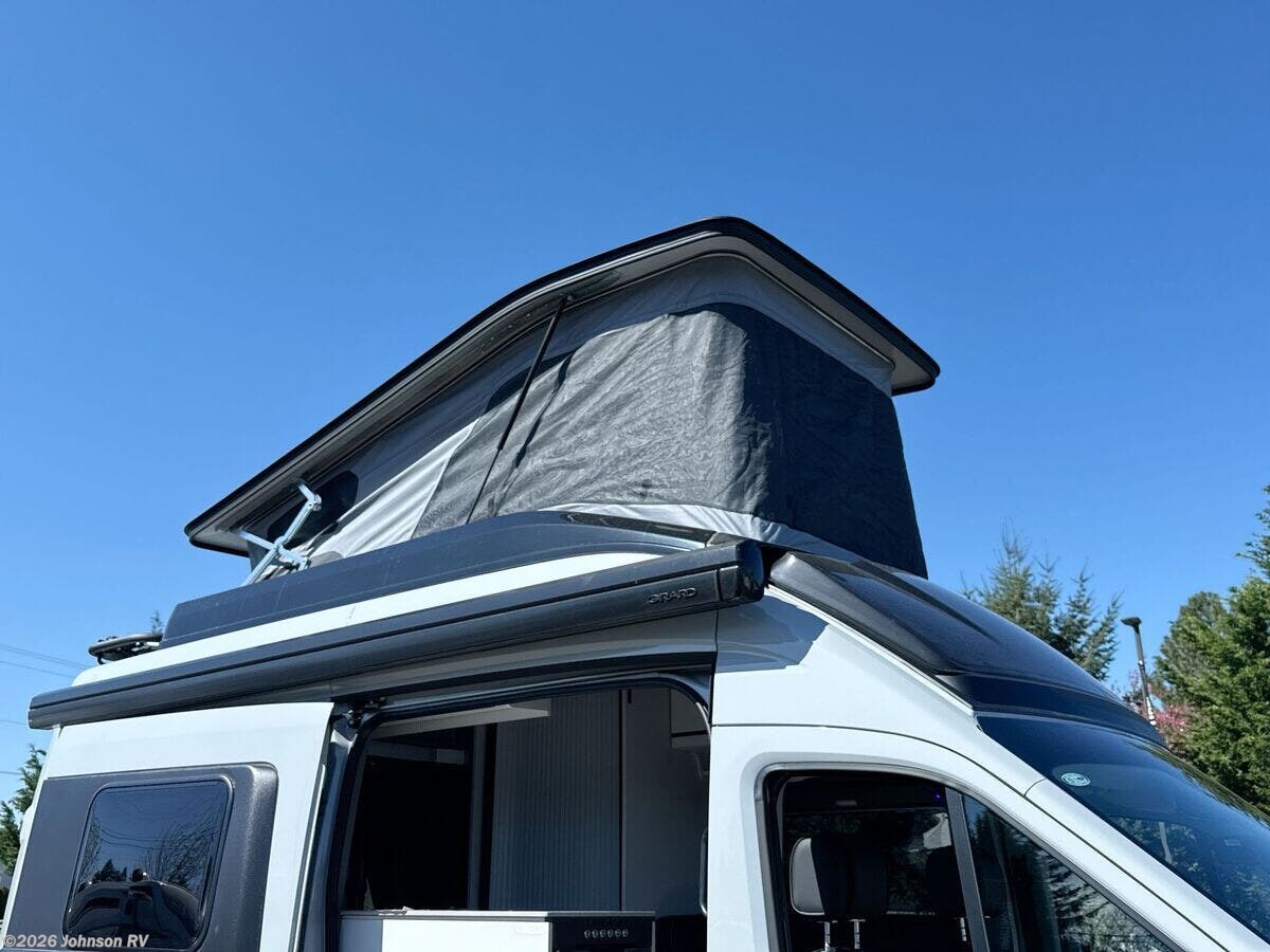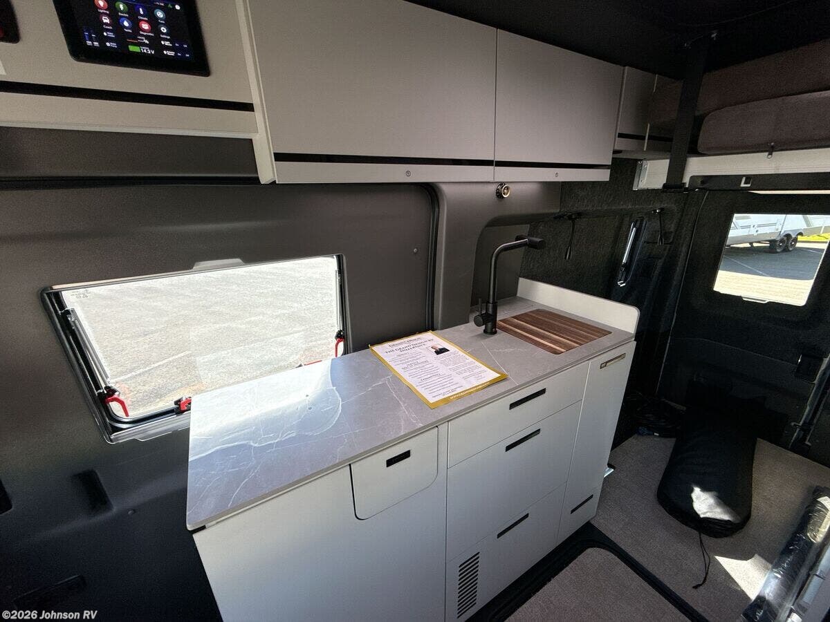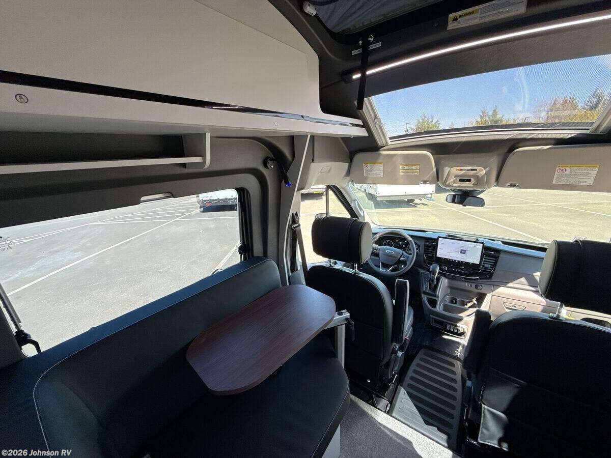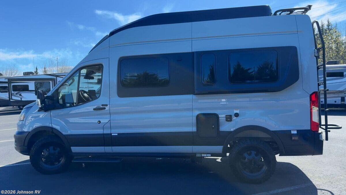 Introducing the 2026 Grand Design Lineage Series VT, a new Class B RV built to provide an exceptional travel experience. With only 107 miles on the odometer, this vehicle pairs innovative technology with high-end design to offer comfort and convenience for your adventures. Under the hood, the Grand Design Lineage Series VT is powered by a 3.5L EcoBoost V6 GTDi engine, delivering an impressive 310 horsepower and 400 lb-ft of torque. Coupled with a 10-speed automatic OD SelectShift transmission and a 3.73 limited slip axle ratio, this RV ensures a smooth and efficient drive. It features Ford's Transit Cargo AWD system with a high roof and a 148-inch wheelbase, supported by 255/70R16 tires and a spare tire carrier. Safety and convenience are prioritized with features such as adaptive cruise control, an antirollover system, electronic stability control, and a side wind stabilization system. The vehicle is equipped with a Blind Spot Information System, cross traffic alert, and side parking sensors to ensure a safer journey. Other amenities include HID high-intensity discharge headlamps and keyless entry keypad for ease of access. The cab is designed for comfort and functionality, featuring Luverne running boards, cockpit privacy shades, and heated swivel custom cover seats. The SYNC 4 system with a 12-inch display offers navigation, 360-degree camera views, and compatibility with Apple CarPlay and Android Auto for seamless connectivity. Inside, the living spaces boast elegance with a soft touch perforated ceiling and Vista double pane acrylic panoramic skylight, complete with integrated window screens and blackout shades. Vinyl laminated cabinetry with positive locking latches ensures secure storage, while dovetail drawer box construction and soft-close drawers add a touch of luxury. Dining is elevated with an expandable dinette table, porcelain countertop, stainless steel sink with a cutting board cover, and a pull-out faucet. Culinary needs are well-catered with a 12V 3.18cf Thetford Refrigerator, an Invisacook hidden induction cooktop, and an air fryer microwave prep area. For audio and electronics, the RV is equipped with a systems center featuring a Firefly Integration Touch Screen, Bluetooth switches, and a phone app. LP, CO, and smoke detectors are installed for safety, and multiple charging ports ensure your devices stay powered. Sleeping accommodations include a versatile expanding lift suite drop-down bed, complete with LED reading lights, USB charge ports, and a Samsung Freestyle projector with a power 50-inch projector screen. Ample underbed storage is available for your personal belongings. The bathroom incorporates thoughtful design with features such as a venting window, medicine cabinet mirror with integrated lighting, tambour style roll-away shower doors, and a rainfall showerhead. A Thetford electric flush cassette toilet and built-in shower storage cubbies add to the convenience. Mechanically, this RV is equipped with two 180w Merlin solar panels, a Victron solar charge controller, and a powerful 51v 8448wH Lithionics battery for sustainable energy solutions. A second battery prep, 30-amp service, and a 3000w Lithionics 51v inverter enhance its electrical capacity. Additional features include a 20k mini split 51v AC, Airtronic gasoline furnace, 12v tank heat pads, and a quick connect outdoor shower for your comfort and convenience. Overall, the 2026 Grand Design Lineage Series VT is thoughtfully engineered with advanced features and premier craftsmanship, ready to make every journey unforgettable.
