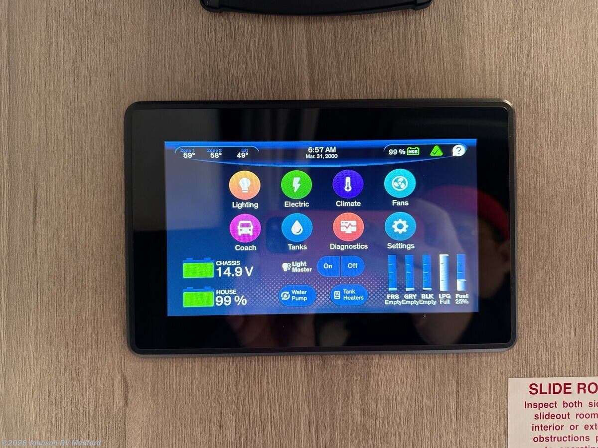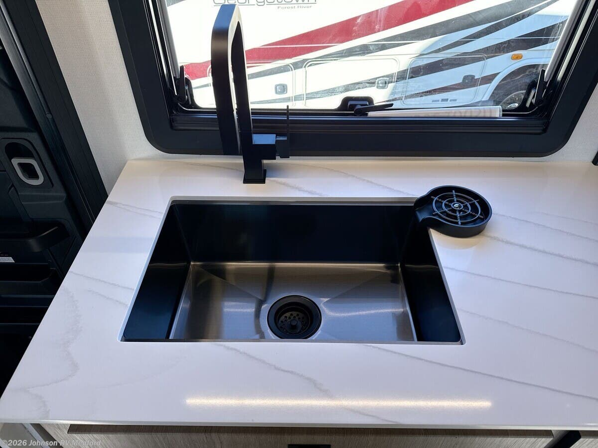Features Include: 7.2-Gal DEF Tank, Sofa (vbm), Pantry, Cooktop, Outdoor TV Sleeping, King Bed 70x80, Overbed Storage, Reading Lights, Wardrobe and Drawers, TV, Vanity Sink, Shower, Toilet Mechanicals, 50-Amp Service Cord, 1000w Solar, 310Ah Batteries, LPG 20.3-Gal 86#, 30k Furnace, Two 15k AC Units, Tankless Hot Water