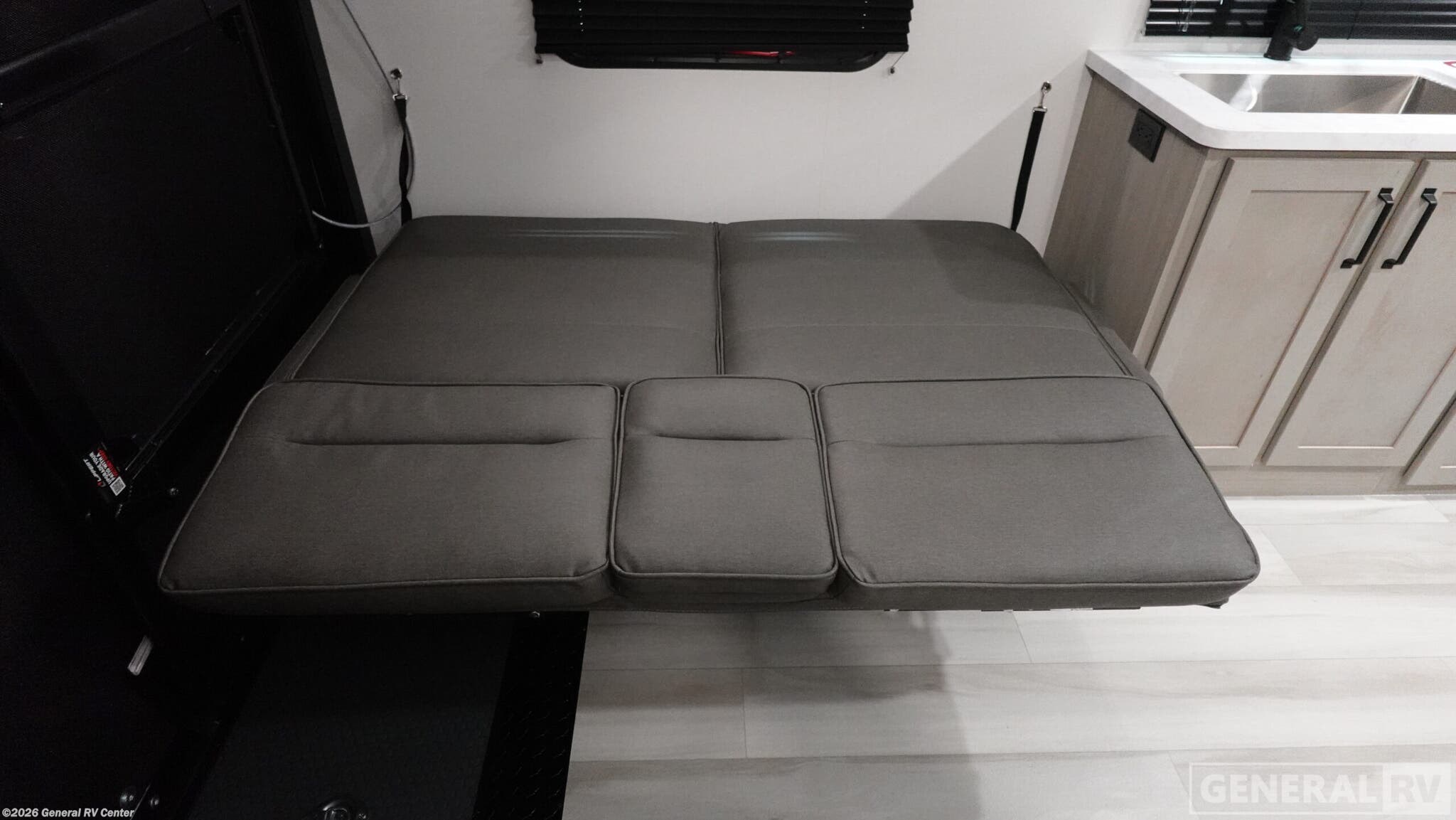 Step into the future of adventure with the 2025 Grand Design Momentum MAV 22MAV, where luxury meets practicality in a compact yet spacious design. This travel trailer is perfect for those who crave the thrill of the open road without sacrificing comfort. With a length of 26.5 feet and a width of 8.33 feet, this RV offers a generous living space that includes a center kitchen and rear living area, making it ideal for entertaining or relaxing after a day of exploration. The 13' 6" garage is a versatile space, perfect for storing all your adventure gear. Inside, you'll find accommodations for up to six people with two queen beds and a convertible bed, ensuring everyone has a comfortable place to rest. The kitchen is equipped with a mid-size electric refrigerator and a three-burner cooktop, ready to handle all your culinary needs. Enjoy the convenience of the 17-foot powered retractable awning, providing shade and comfort as you unwind outside. With a fresh water capacity of 90 gallons and ample gray and black water storage, the Momentum MAV 22MAV is designed for extended journeys. Visit your nearest General RV dealership to discover more about this exceptional travel companion.