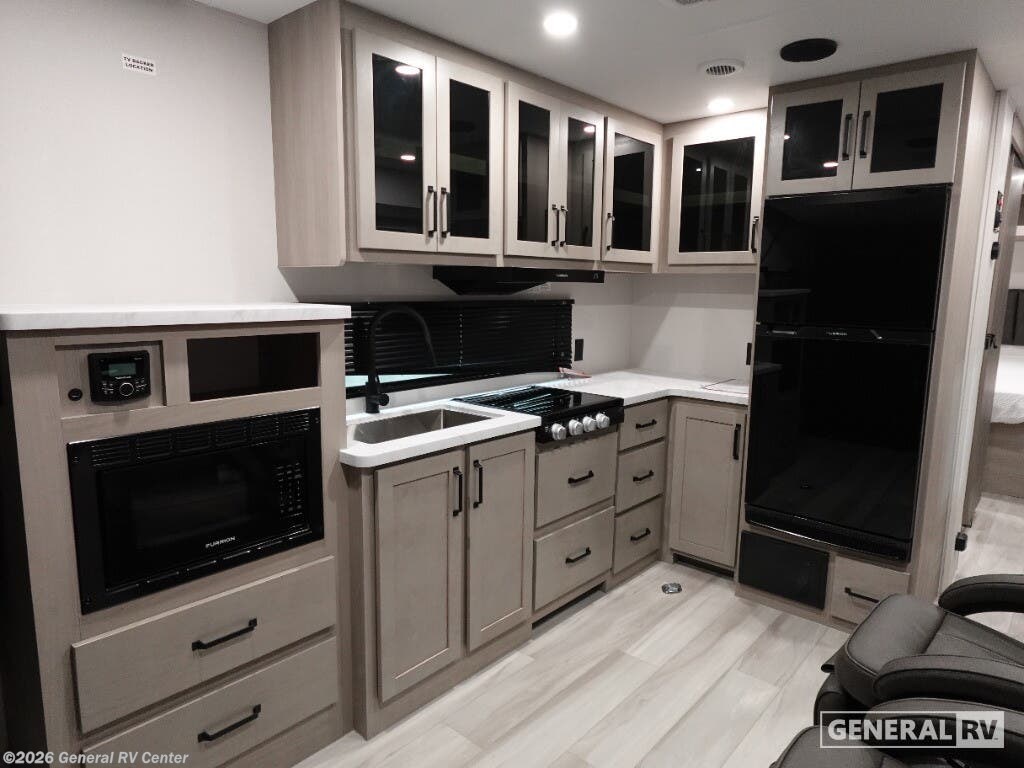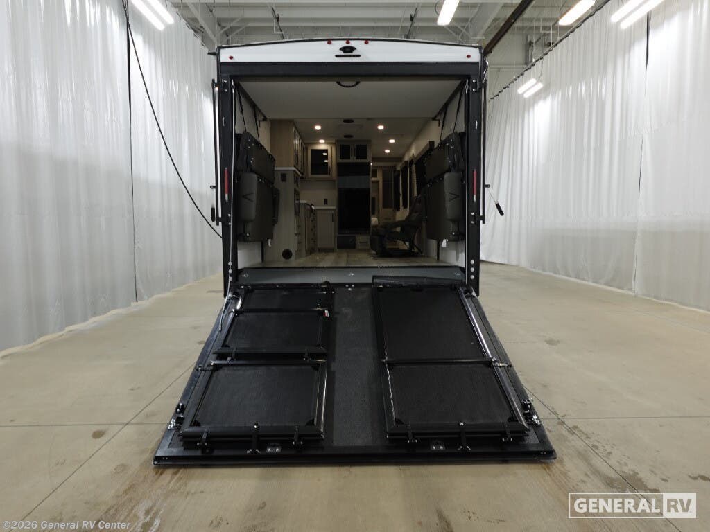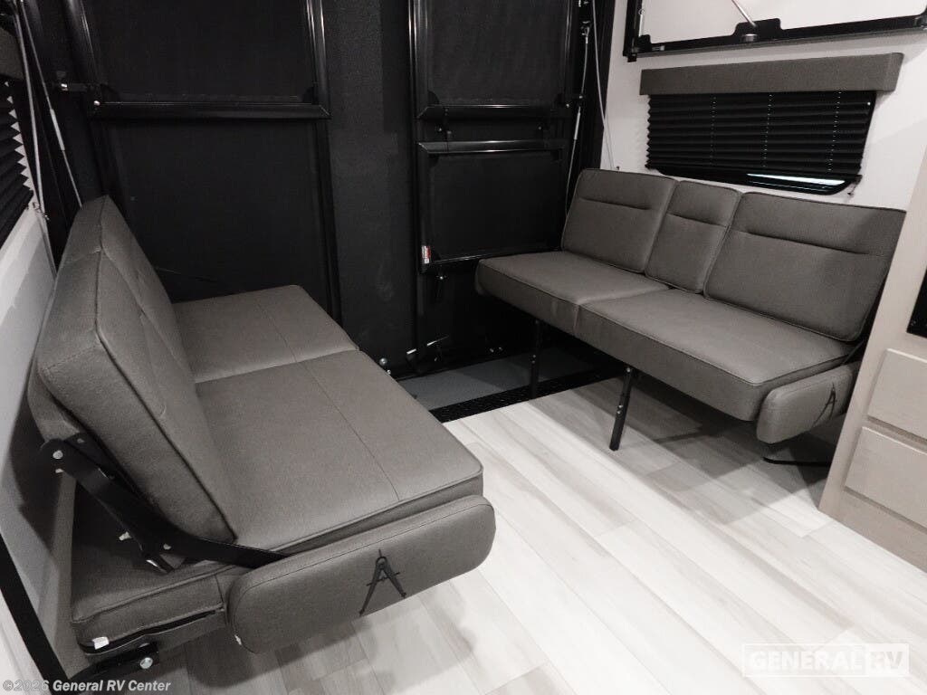 Step into the future of adventure with the 2026 Grand Design Momentum MAV 27MAV. This RV is designed to elevate your travel experiences with its thoughtful layout and impressive features. At 32 feet in length, it offers a spacious haven for up to six people, making it perfect for family getaways or trips with friends. The dual queen beds and convertible sleeping area ensure everyone rests comfortably after a day of exploration. With a 13' 6" garage, you have ample space to bring along your favorite toys, whether it's bikes or outdoor gear, making every journey an exciting adventure. The interior of the Momentum MAV 27MAV is a blend of style and functionality. The center kitchen is equipped with a mid-size refrigerator and a three-burner cooktop, ready to handle all your culinary needs. The rear living area, complete with a rollover sofa and table, provides a cozy spot to relax or entertain. The front bedroom offers a private retreat with a queen bed, while the center bath ensures convenience with its curtain shower. The 19-foot powered retractable awning extends your living space outdoors, perfect for enjoying the fresh air while being sheltered from the elements. With a robust fresh water capacity of 90 gallons and ample storage, this RV is designed to support extended adventures. Visit your nearest General RV dealership to explore the possibilities with the Momentum MAV 27MAV.