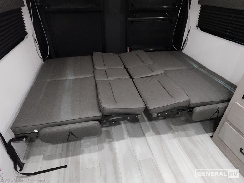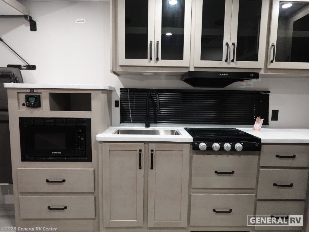 Step into the future of adventure with the 2026 Grand Design Momentum MAV 27MAV. This RV is designed to elevate your travel experiences with its thoughtful layout and impressive features. At 32 feet in length, it offers a spacious haven for up to six people, making it perfect for family getaways or trips with friends. The dual queen beds and convertible sleeping area ensure everyone rests comfortably after a day of exploration. With a 13' 6" garage, you have ample space to bring along your favorite toys, whether it's bikes or outdoor gear, making every journey an exciting adventure. The interior of the Momentum MAV 27MAV is a blend of style and functionality. The center kitchen is equipped with a mid-size refrigerator and a three-burner cooktop, ready to handle all your culinary needs. The rear living area, complete with a rollover sofa and table, provides a cozy spot to relax or entertain. The front bedroom offers a private retreat with a queen bed, while the center bath ensures convenience with its curtain shower. The 19-foot powered retractable awning extends your living space outdoors, perfect for enjoying the fresh air while being sheltered from the elements. With a robust fresh water capacity of 90 gallons and ample storage, this RV is designed to support extended adventures. Visit your nearest General RV dealership to explore the possibilities with the Momentum MAV 27MAV.