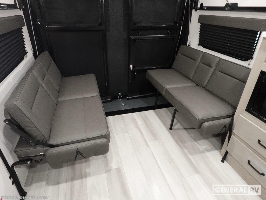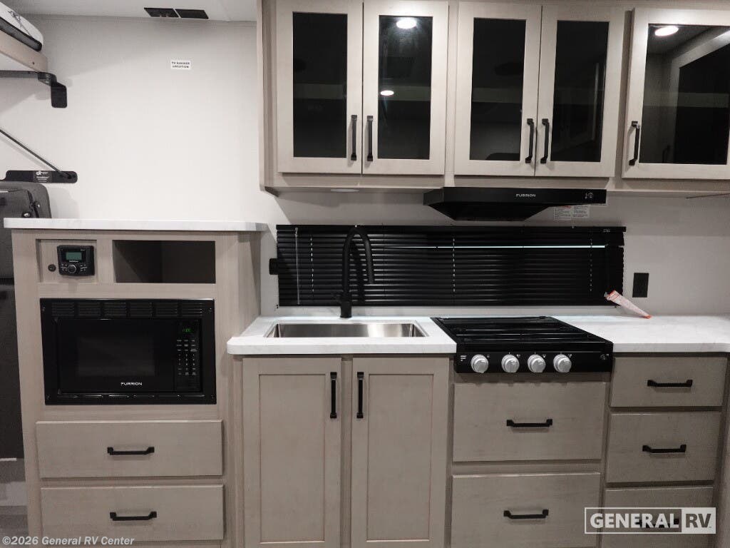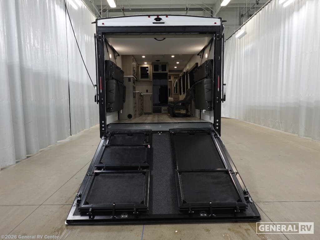Step into the future of adventure with the 2026 Grand Design Momentum MAV 27MAV. This RV is designed to elevate your travel experiences with its thoughtful layout and impressive features. At 32 feet in length, it offers a spacious haven for up to six people, making it perfect for family getaways or trips with friends. The dual queen beds and convertible sleeping area ensure everyone rests comfortably after a day of exploration. With a 13' 6" garage, you have ample space to bring along your favorite toys, whether it's bikes or outdoor gear, making every journey an exciting adventure. The interior of the Momentum MAV 27MAV is a blend of style and functionality. The center kitchen is equipped with a mid-size refrigerator and a three-burner cooktop, ready to handle all your culinary needs. The rear living area, complete with a rollover sofa and table, provides a cozy spot to relax or entertain. The front bedroom offers a private retreat with a queen bed, while the center bath ensures convenience with its curtain shower. The 19-foot powered retractable awning extends your living space outdoors, perfect for enjoying the fresh air while being sheltered from the elements. With a robust fresh water capacity of 90 gallons and ample storage, this RV is designed to support extended adventures. Visit your nearest General RV dealership to explore the possibilities with the Momentum MAV 27MAV.