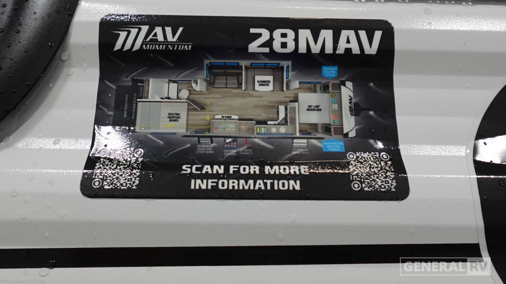 **2026 Grand Design Momentum 28MAV Highlights** - 10' 4? toy hauler garage - Sleeps 6–8 with garage bunks - 15,000 BTU A/C & 30,000 BTU furnace - 19' power awning - 50-amp service & solar ready Built for adventure without sacrificing comfort, the 2026 Grand Design Momentum 28MAV is a versatile toy hauler travel trailer designed to handle everything from weekend escapes to extended off-grid trips. The spacious 10' 4? garage easily accommodates ATVs, bikes, or gear and converts into a functional living or sleeping space when parked. Inside, the open layout sleeps up to 8 with a front bedroom, convertible furniture, and garage bunks, making it ideal for families or group travel. The well-equipped kitchen offers a refrigerator, three-burner cooktop, microwave, and ample storage for easy meal prep on the road. Stay comfortable in any season with a powerful 15,000 BTU roof A/C, efficient furnace, and on-demand hot water system. Outside, the 19' power awning creates the perfect shaded space for relaxing at camp. Rugged, reliable, and thoughtfully designed, the Momentum 28MAV delivers the freedom to bring your toys and enjoy every destination in comfort.