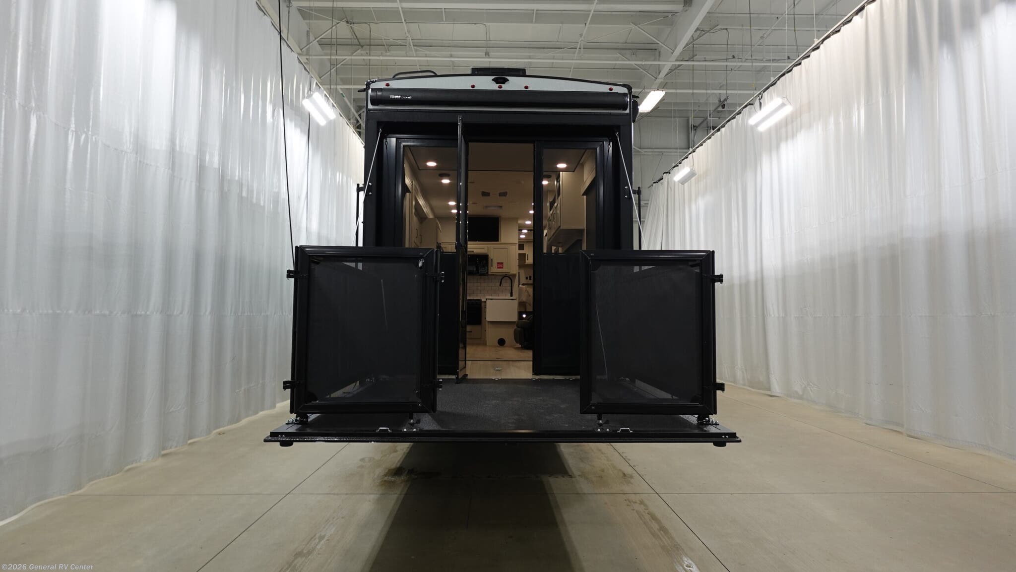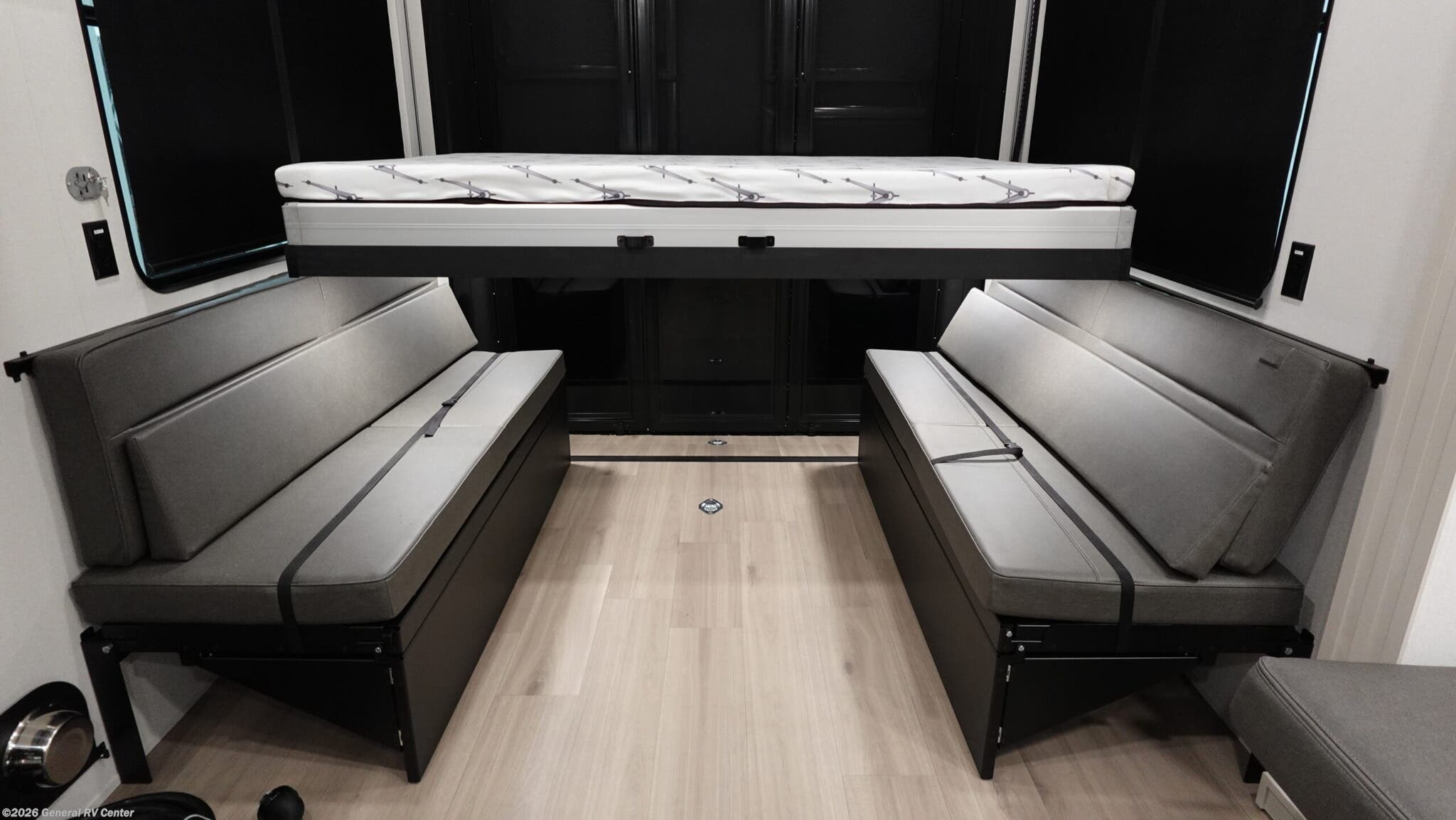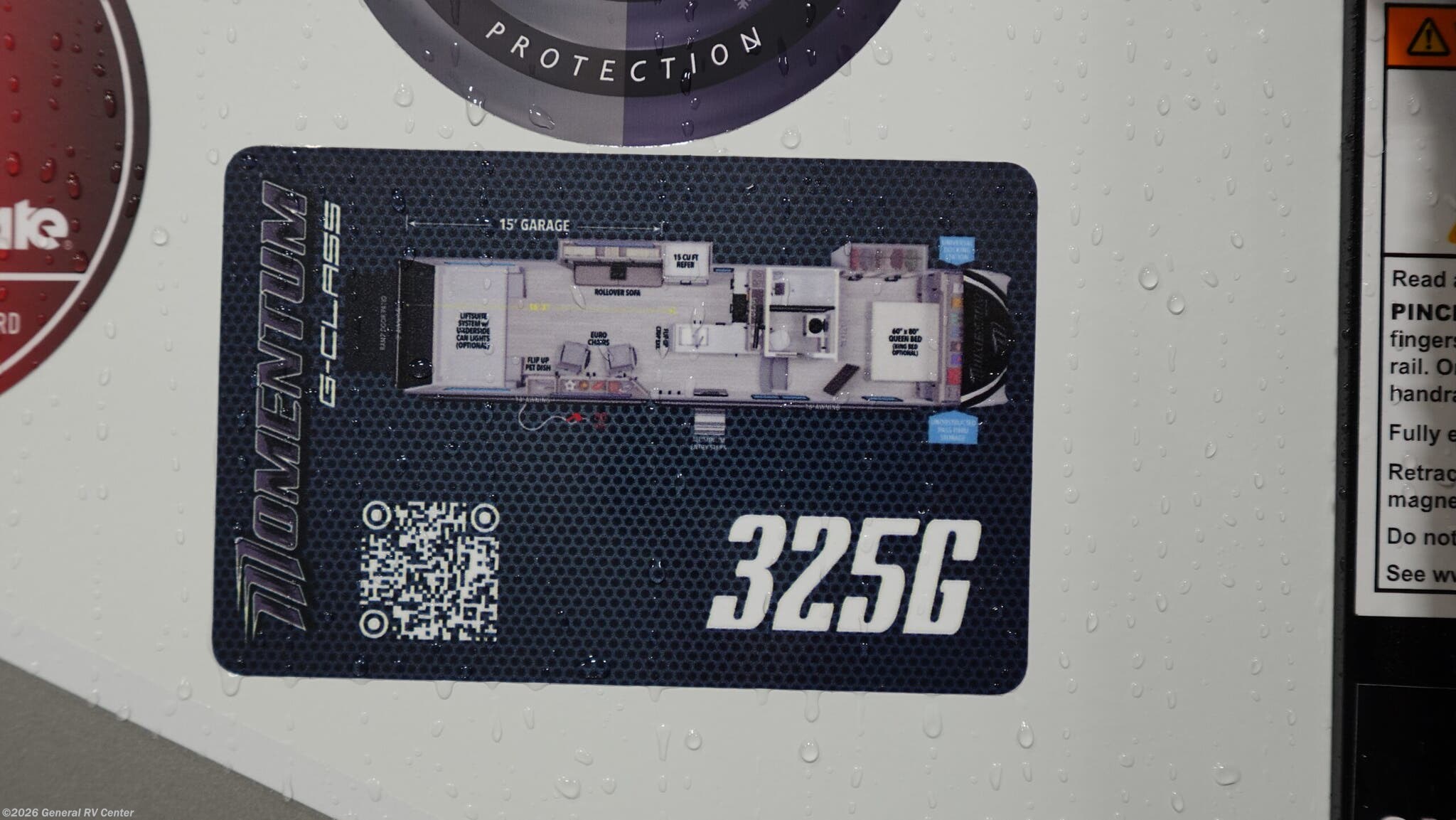 Experience the ultimate in luxury and versatility with the 2026 Grand Design Momentum G-Class 320G. This stunning toy hauler is designed for adventurers who crave comfort without sacrificing functionality. At 36.25 feet in length, it offers a spacious and inviting environment, perfect for families or groups of up to seven. The interior boasts a center kitchen with a full-size electric refrigerator and a four-burner cooktop, making meal prep a breeze. Enjoy the convenience of convection cooking and a generous 110-gallon fresh water capacity, ensuring you’re well-equipped for extended journeys. The 320G floorplan is thoughtfully designed to maximize space and comfort. Relax in the center living area with plush theater seating, or retire to the front bedroom where a cozy queen or optional king bed awaits. The 11-foot garage is not only a versatile storage solution but also doubles as additional sleeping space with Happi-Jac rollover sofas and an optional top bed. An 18-foot powered retractable awning provides ample outdoor living space, perfect for enjoying scenic views. For more details and to explore this model in person, visit your nearest General RV Dealership Location.