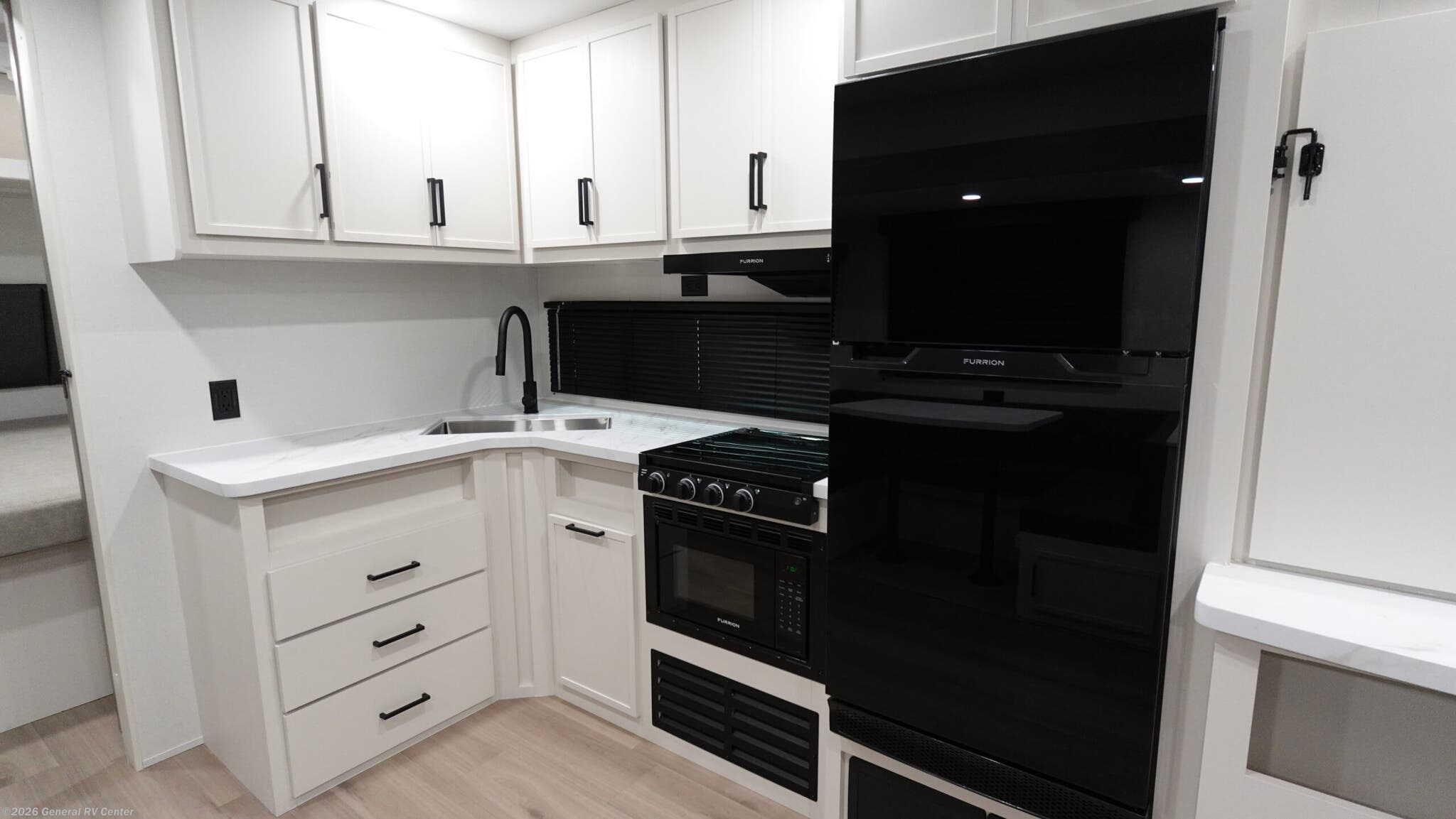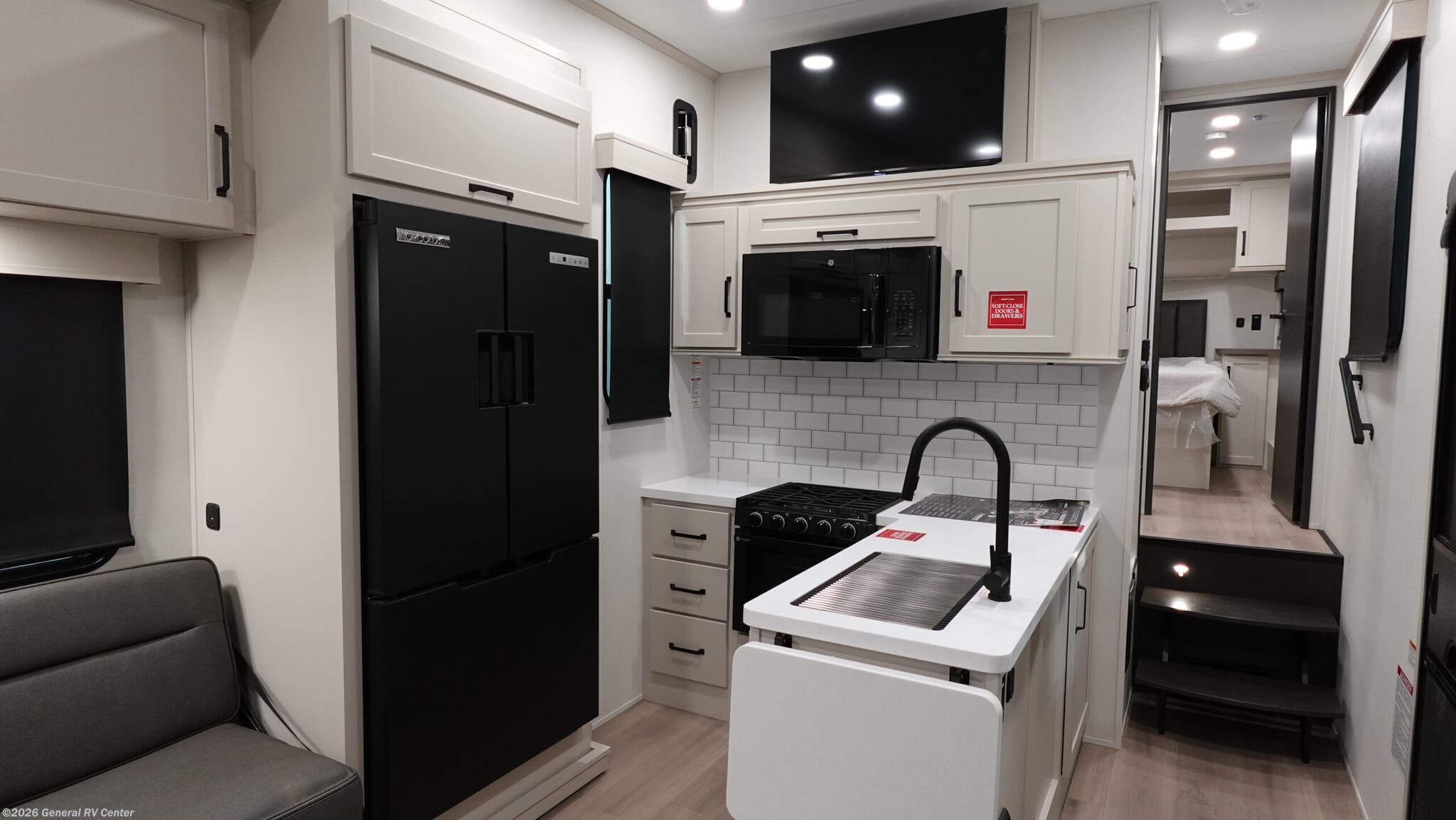 Step into the 2026 Grand Design Momentum G-Class 325G, where adventure meets luxury in a seamless blend of comfort and functionality. This RV is designed to be your ultimate travel companion, offering ample space for up to eight guests. With a queen bed, king bed, and a convertible option, everyone can rest easy after a day of exploration. The center kitchen and living area provide a cozy yet spacious environment, featuring a full-size electric refrigerator and a four-burner cooktop, perfect for whipping up your favorite meals on the road. The inclusion of convection cooking and washer/dryer facilities ensures that convenience is always at your fingertips. The thoughtful layout showcases a 15-foot garage, ideal for storing your outdoor gear, while the dual powered awnings create a perfect outdoor space for relaxation. The automatic heater and 75-amp electrical service ensure you stay comfortable no matter the weather. With a fresh water capacity of 160 gallons, and ample gray and black water storage, your off-grid adventures can last longer. The Momentum G-Class 325G is more than just an RV; it's a mobile sanctuary designed to enhance every journey. For more details, visit your nearest General RV dealership and start your adventure today!